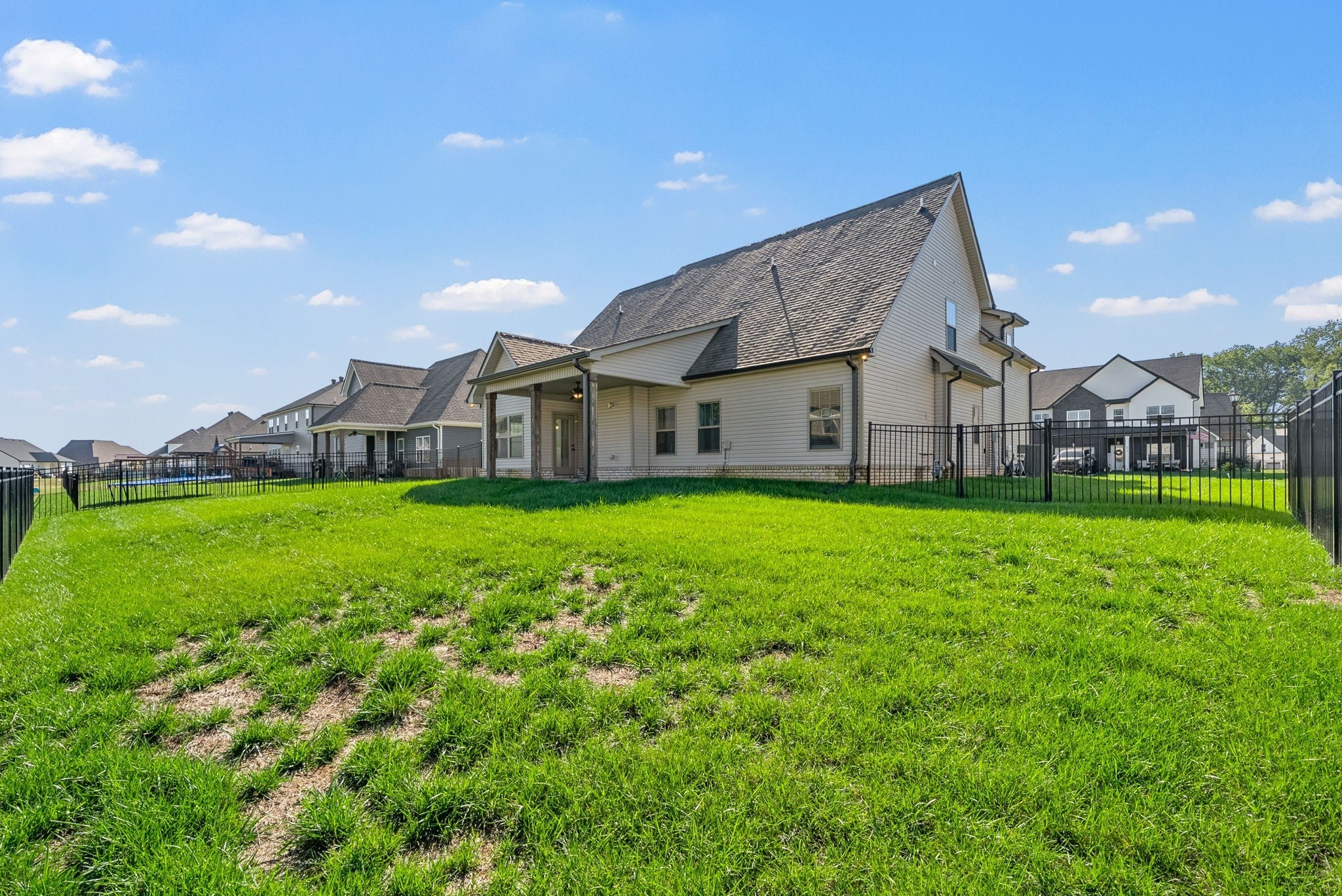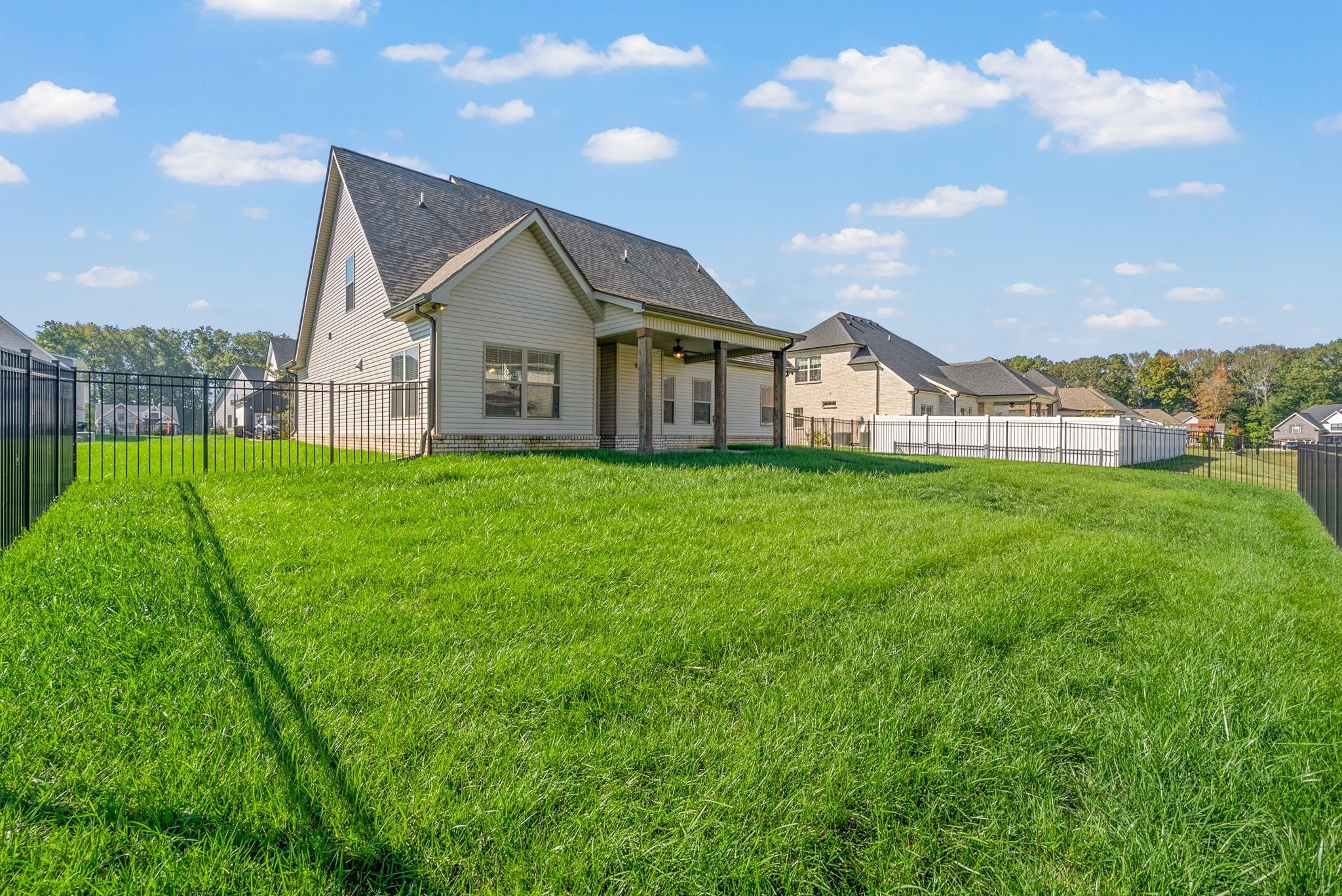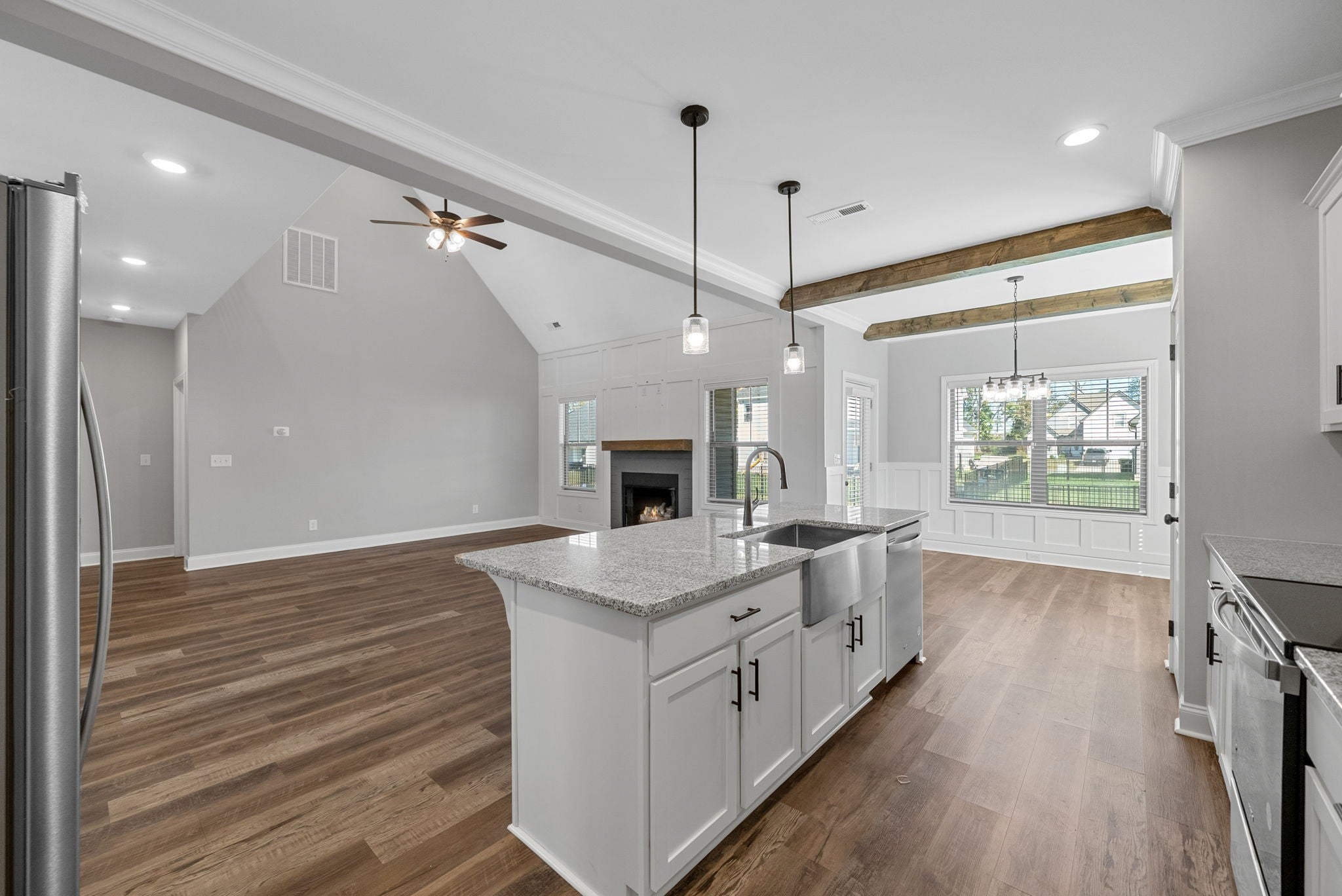 This well maintained four bedroom, three bath home is conveniently located in Sango, just minutes from restaurants, shopping, and more! Step inside to a large living room featuring board and batten accents, a cozy fireplace, and a beautiful catwalk overlook! The living room flows seamlessly into the spacious eat in kitchen, which includes granite countertops, stainless steel appliances, a large island, pantry, and a dining area highlighted by beautiful ceiling beams! The primary suite is located on the main level and showcases a charming shiplap and beam ceiling, along with a luxurious private bath complete with a double vanity, standalone tub, and tiled shower! All guest bedrooms are generously sized, in addition to the spacious bonus room offering additional flexibility! Enjoy the outdoors with a covered patio and fenced backyard, perfect for relaxing or entertaining! Located in the Easthaven community with a pool, clubhouse, and playground! Pet rent applicable.