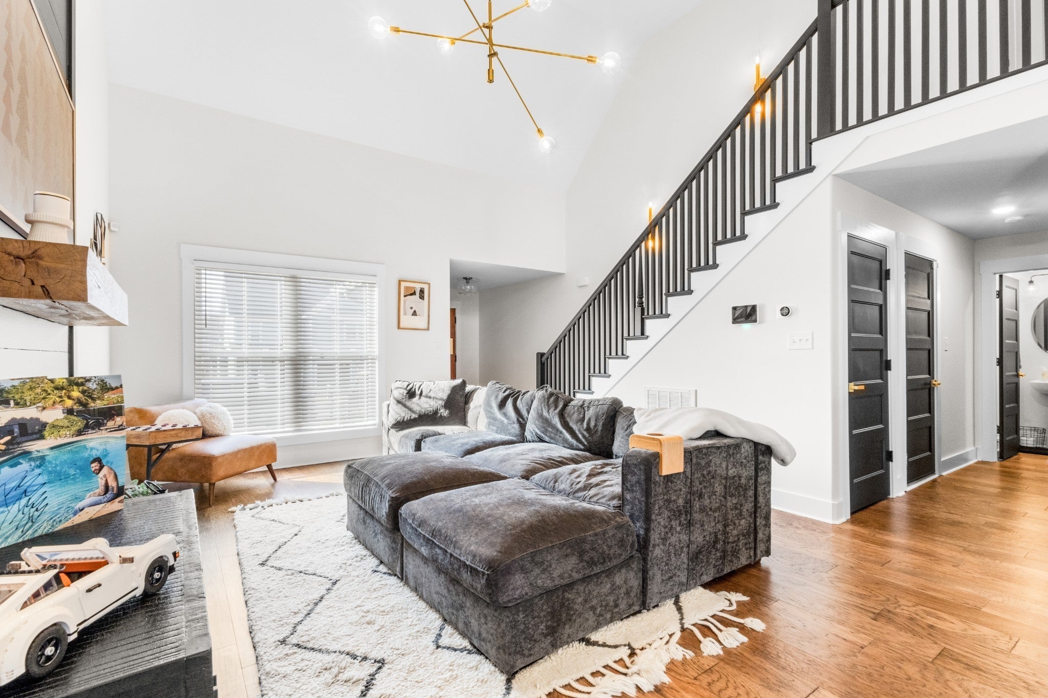 Discover your dream home! Nestled on a peaceful cul-de-sac in the coveted Somerset neighborhood within the sought after Rossview School District. This stunning residence combines modern design with timeless elegance, featuring chic black and gold accents throughout. Step into the inviting entry foyer, which flows into a spacious living room adorned with a vaulted ceiling and a striking floor-to-ceiling shiplapped gas fireplace. The main level offers ultimate convenience with a luxurious primary suite and a handy laundry closet. The modern kitchen is a chef’s delight, boasting quartz countertops, upgraded appliances, and bar seating. The primary suite is a sanctuary, featuring a stylish accent wall, a double-sink vanity with an LED bathroom mirror, and tiled stand-up shower, with a massive walk-in closet. Upstairs, you’ll find two additional bedrooms, a full bathroom, and a versatile bonus room that can easily serve as a fourth bedroom or a recreational space. Relax on the covered deck overlooking the backyard. The attached garage is currently set up as a home gym which adds an extra layer of functionality to this incredible property. Schedule your private tour today! Don’t miss the opportunity to call this modern masterpiece your new home!