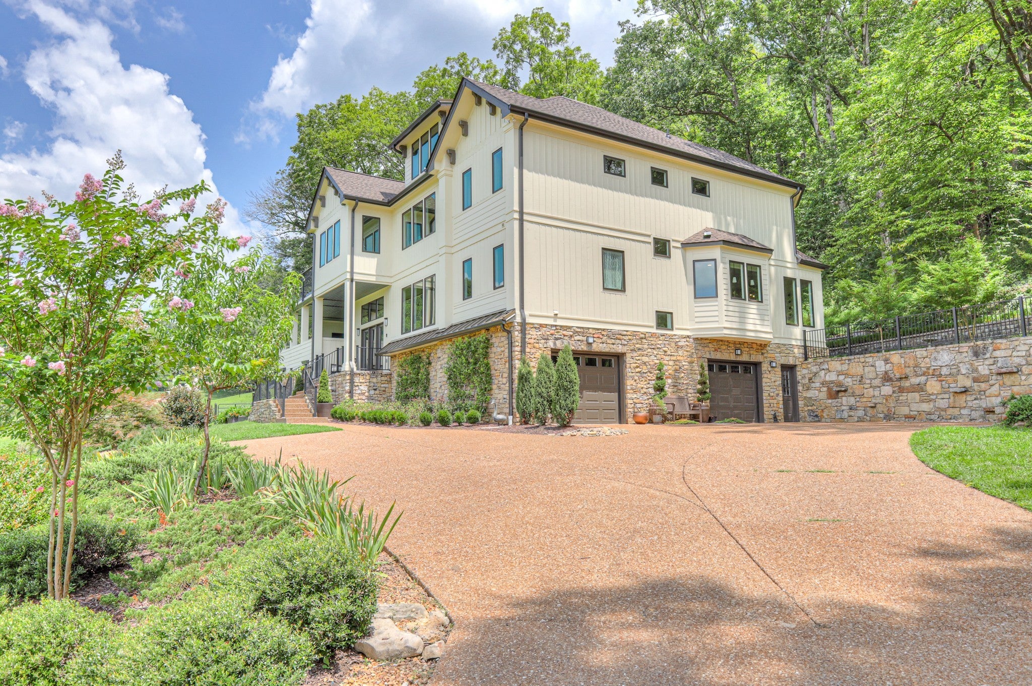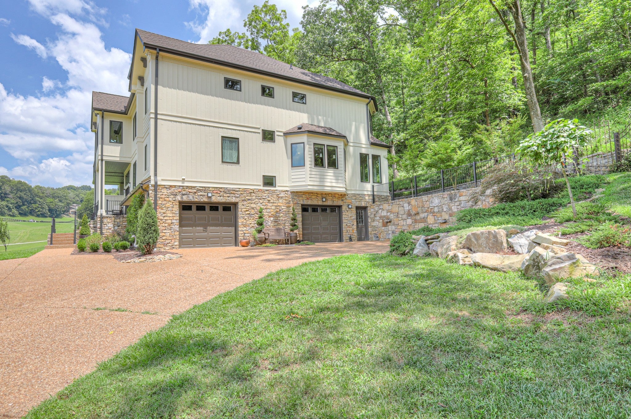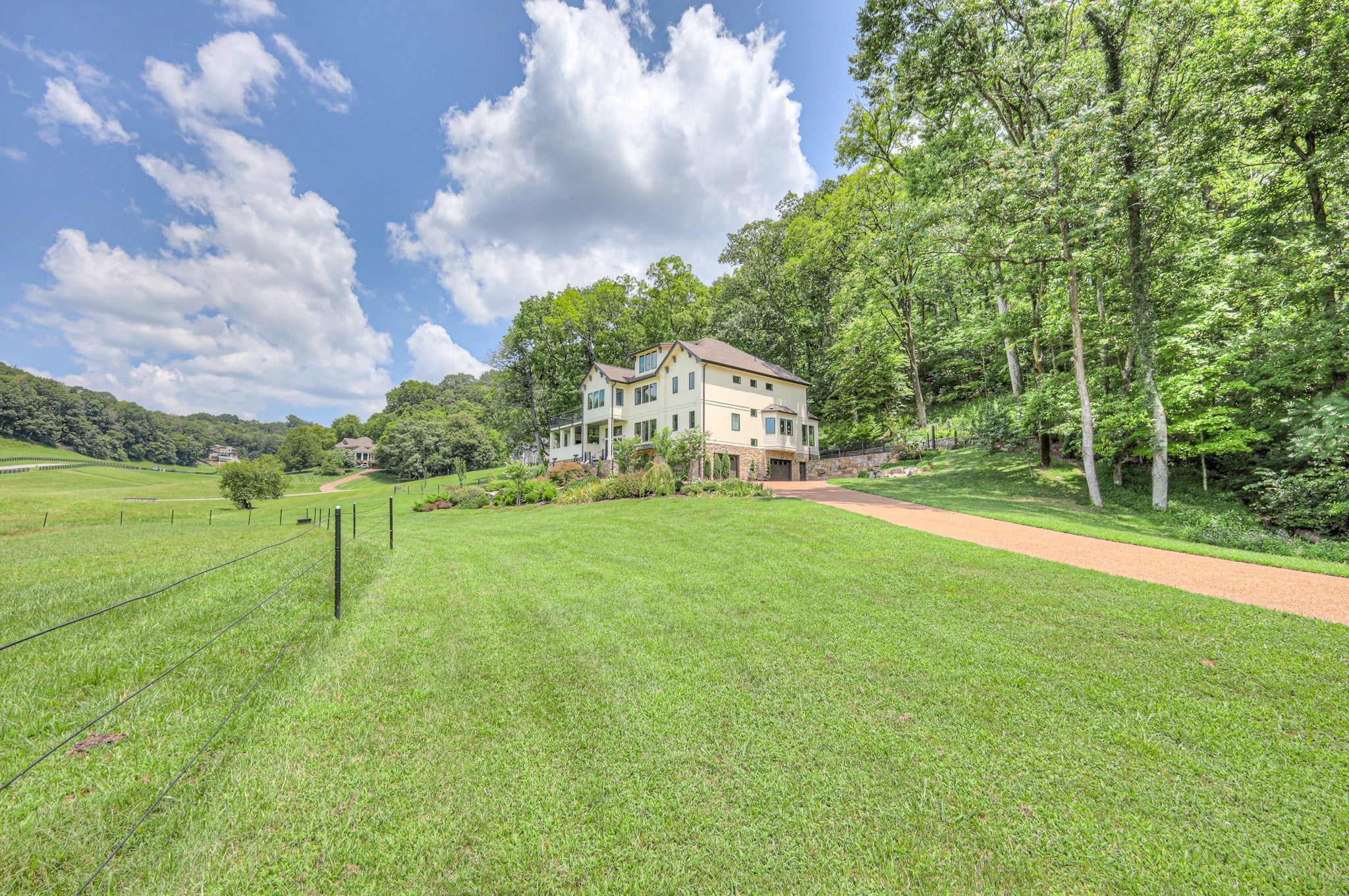 Potential for Owner Financing - inquire with agent for details. Experience the perfect blend of quiet country living and modern convenience in this stunning estate ideally situated between Brentwood and Franklin. Located in the exclusive 40-homesite community of Lynnwood Downs, this home offers peaceful privacy just minutes from I-65’s Moores Lane exit, Cool Springs shopping, top medical providers, and vibrant downtown Franklin—all less than 10 minutes away. Extensively remodeled in 2023, this home was thoughtfully updated for gracious entertaining. The main level features a chef’s kitchen with built-in appliances and a charming breakfast room, complemented by a butler’s pantry leading into the formal dining room. Multiple living spaces—including a living room, family room, and sunroom (currently used as an office/library)—are anchored by a custom walnut wet bar. Step outside to enjoy resort-style outdoor living, including a 20x20 covered porch with gas fireplace, sun terrace with gas firepit, and a private back patio with a tranquil water feature & gas line for grilling. The second & third floors offer four private bedroom suites, along with additional spaces for relaxation and retreat. A unique opportunity exists to reconfigure the current floor plan: the home is permitted for 4 bedrooms, and a first-floor suite is possible by converting the existing ½ bath between the living room & sunroom into a full bath and closet. Recent upgrades include a new roof (with transferrable warranty), hot water heater, & driveway, freshly painted custom closet in primary bed, new/refinished floors. Enjoy unobstructed sunset views & an unmatched amenity package including: Clubhouse, pool, tennis & basketball courts, playgrounds, stocked ponds & scenic walking trails, equestrian features including horse stables and a 40-acre community pasture, classic 4-plank fencing maintained by the HOA, plus twice-weekly trash pickup.