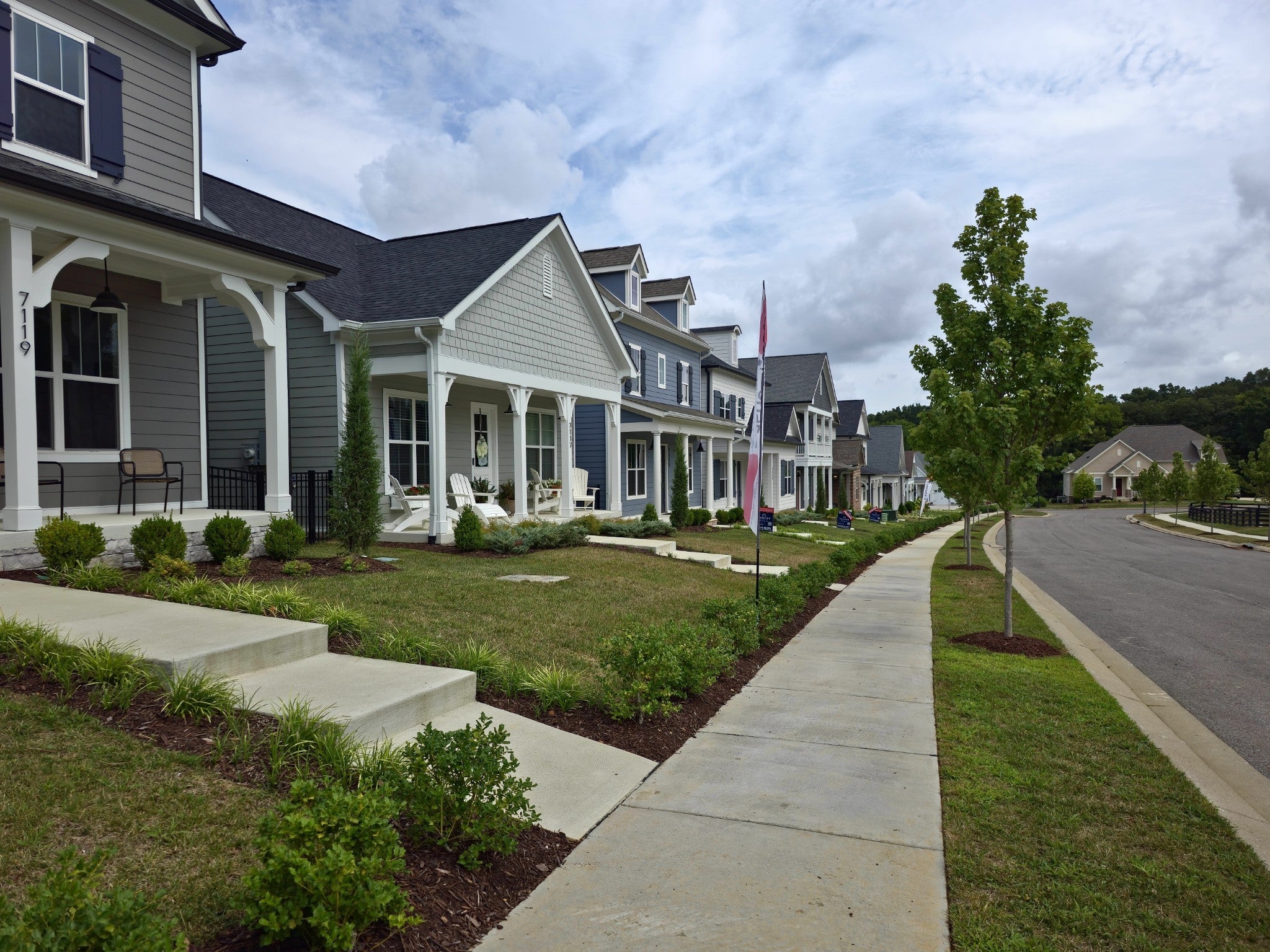 NEW Planned Community in Fairview, Williamson County. PHASE 2. BLVD Homes - The Premier Design and Build Company presents; The Overbee Plan. This beautifully crafted one-story home spanning 2,015+ sq. ft., offers 3-bedrooms, 2½ bathrooms and is designed for comfort, elegance, and modern living. Step into an inviting open-concept floor plan featuring designer hardwood flooring in the main areas, tiled baths and utility room, and plush padded carpet in bedrooms, soaring 10' ceilings, and 8' interior doors that create a bright and airy atmosphere. The spacious living area offers a cozy fireplace, seamlessly connecting to the gourmet kitchen—complete with quartz countertops, a large island with barstool seating, custom maple cabinetry, a walk-in pantry, and Frigidaire Gallery® stainless steel appliances, including a gas cooktop, a quietpower dishwasher, and a built-in microwave. The owner’s suite is a private retreat, featuring a decorative ceiling, an expansive walk-in closet, and a luxurious spa-like bath with a soaking tub, tiled shower with a glass enclosure, and double vanities with quartz countertops. The secondary bedrooms are generously sized and share a stylish, custom-tiled bath with a shower/tub combo. Custom built-ins in closets and pantry. Additional features include an 18' wide insulated garage door, a gas tankless water heater, upgraded lighting, and energy-efficient windows. For Village Homes, the HOA covers lawn cutting/mulch and trash pickup, ensuring a low-maintenance lifestyle. Plus, every Village Home comes with a fences spacious side yard extending the full length of the home. Taxes are approx. Photos depict builder quality, not actual home.