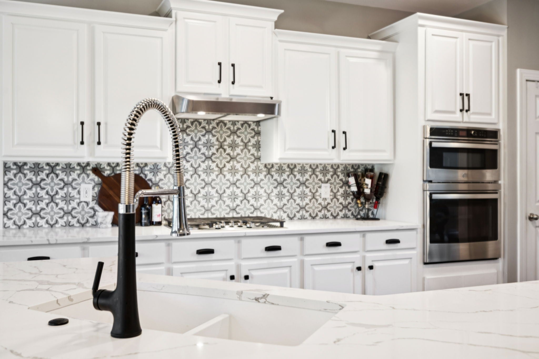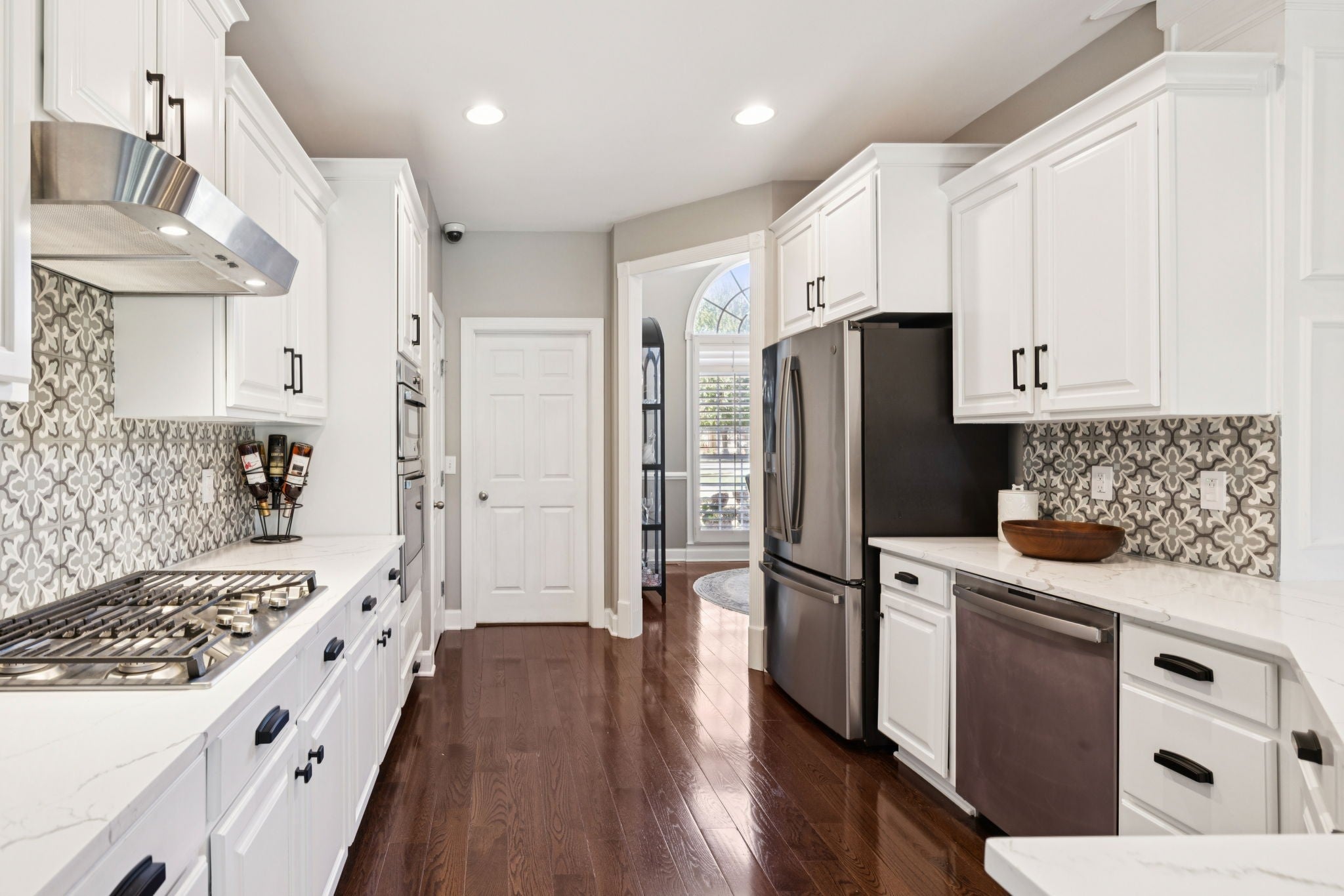 - Built-In Electric Oven, Double Oven, Built-In Gas Range, Cooktop, Dishwasher, Disposal, Microwave, Refrigerator, Stainless Steel Appliance(s)