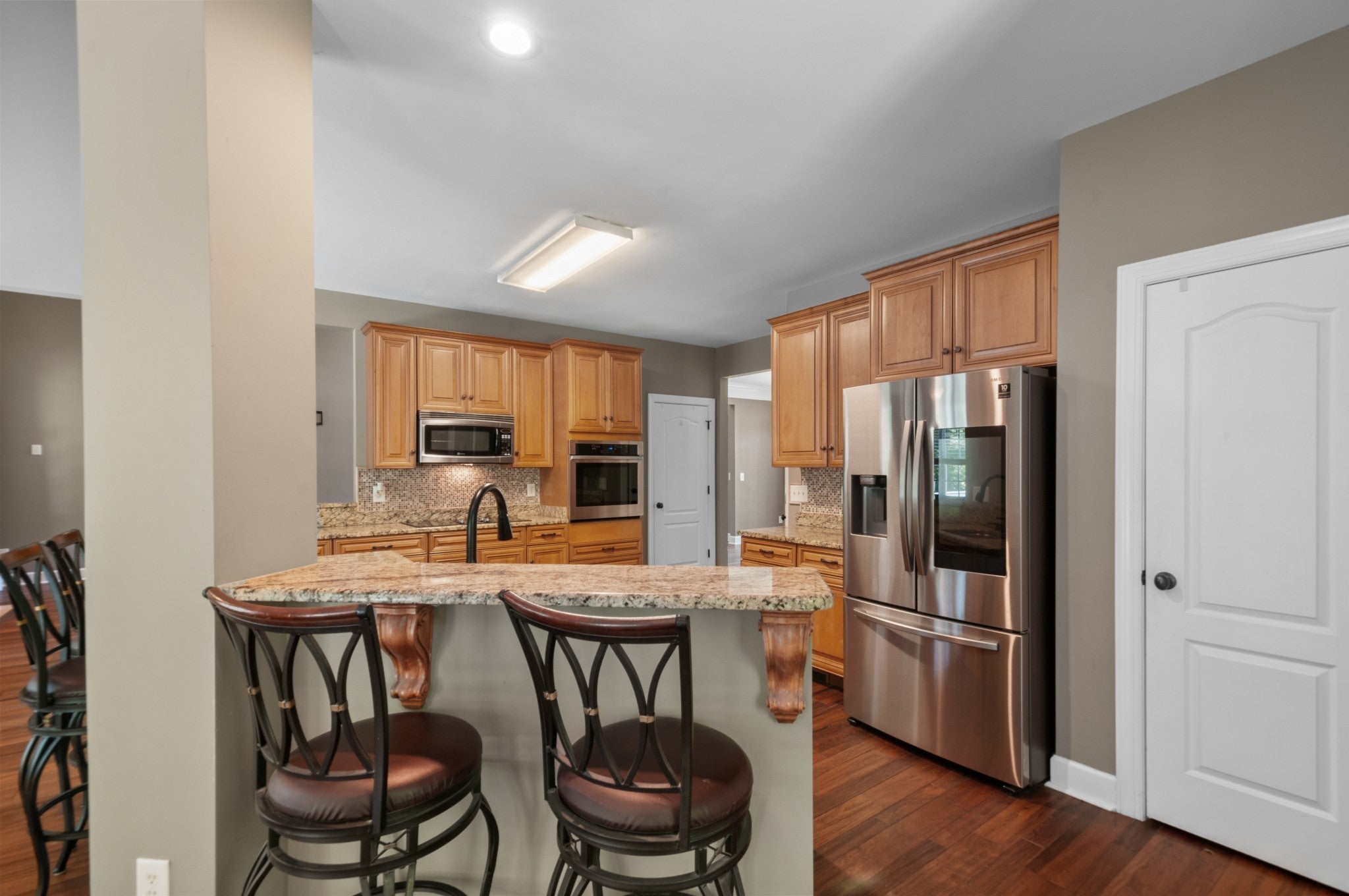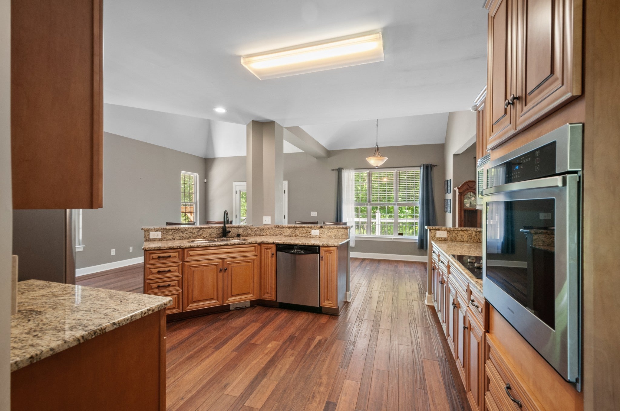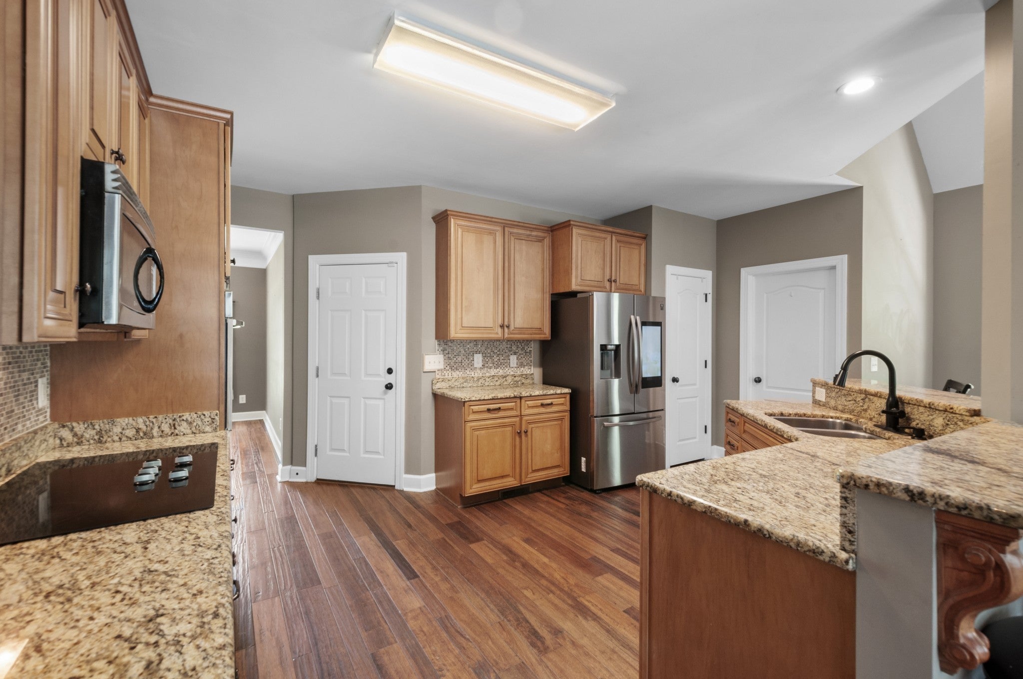 - Built-In Electric Oven, Cooktop, Dishwasher, Disposal, Microwave, Refrigerator, Stainless Steel Appliance(s)