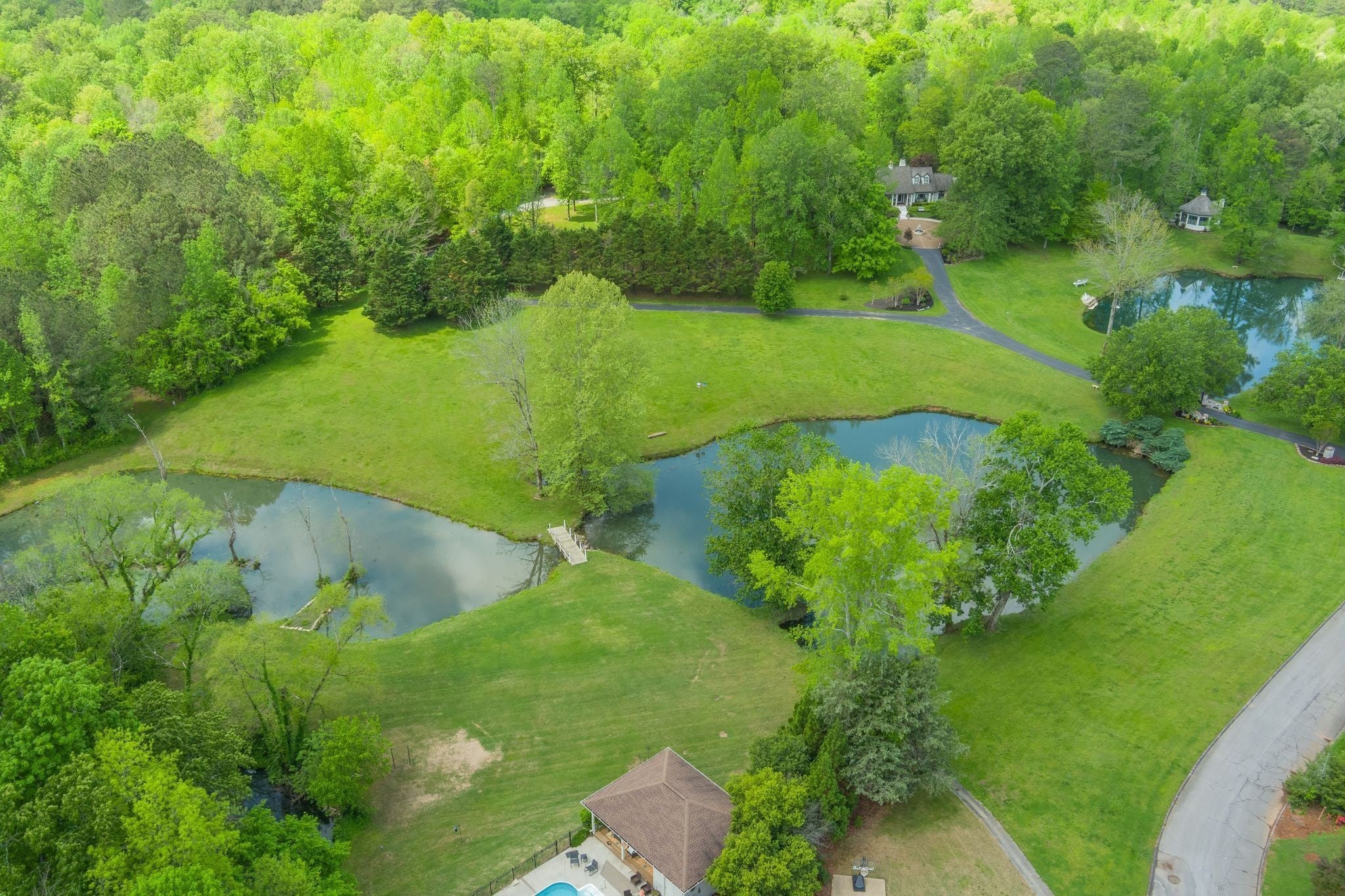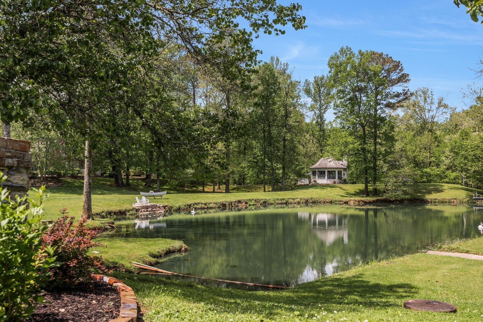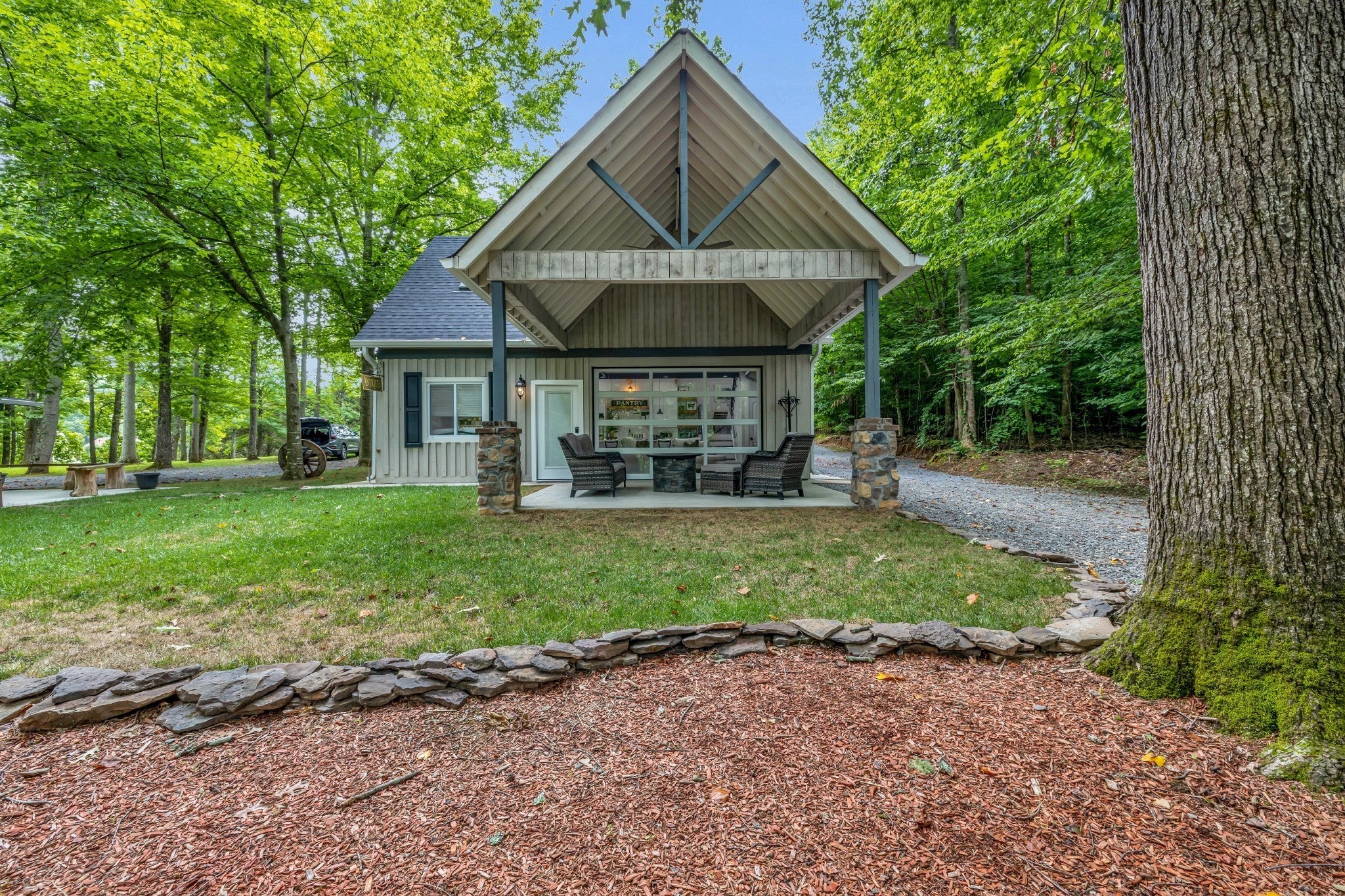 ACCEPTING OFFERS!!!! Perfectly positioned on 8.24 breathtaking acres along Candies' Creek and Fletcher Park, this private, riverfront estate offers a rare blend of timeless elegance, modern comforts, and natural beauty. As you pass through the stately electronic gates and down the tree-lined driveway, you'll discover a grand, all-brick traditional home with approx. 4,000 square feet and 1,800+ of additional luxurious living space. The main level features a stunning primary suite, soaring ceilings, elegant marble and hardwood floors, two cozy fireplaces, and a thoughtfully designed open floorplan accented by built-ins and a welcoming entry foyer. A chef's kitchen equipped with designer, smart appliances, built-in gas range, and seating for four makes everyday living and entertaining a delight. Bonus Features: Charming guest cottage with one bedroom, one full bath, and its own private entrance—perfect for extended family, guests, or income potential. Modern barn chalet with two bedrooms, one full bath, chef's kitchen, and opening garage doors to covered porch with income potential as well. Custom workshop ft. full electric, industrial sink, automatic garage door, concrete floors, recessed lighting, and 10’ portico. River frontage, private ponds, and a unique mountain rock fishing and viewing dock. Smart Home features, fire alarm system, and security gate for modern peace of mind. No HOA!! With this centralized location, minutes from Chattanooga, Volkswagon, and Lee University, it is your choice to walk into an income producing property with verifiable income or retain it's resort like qualities for you and your family's enjoyment.