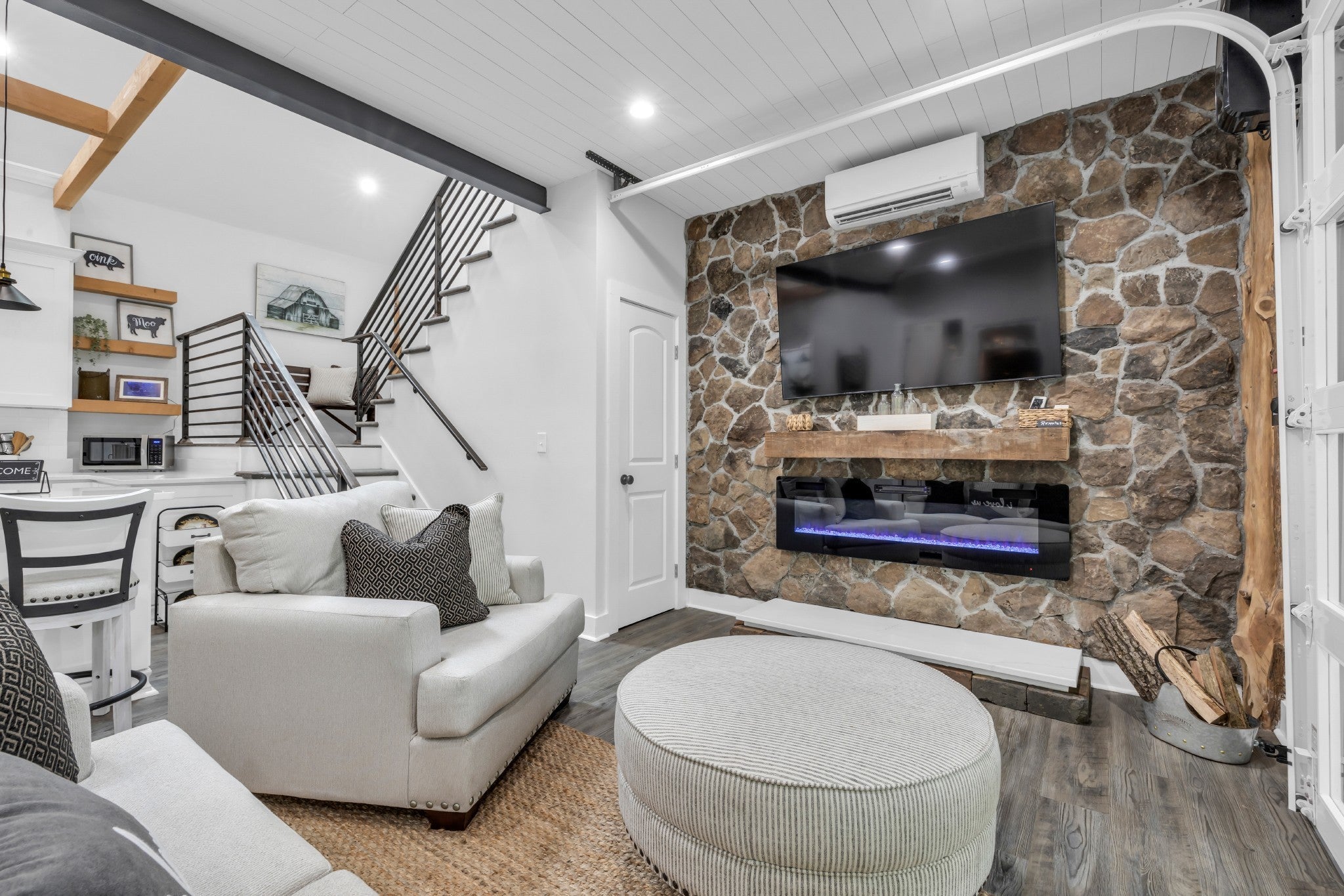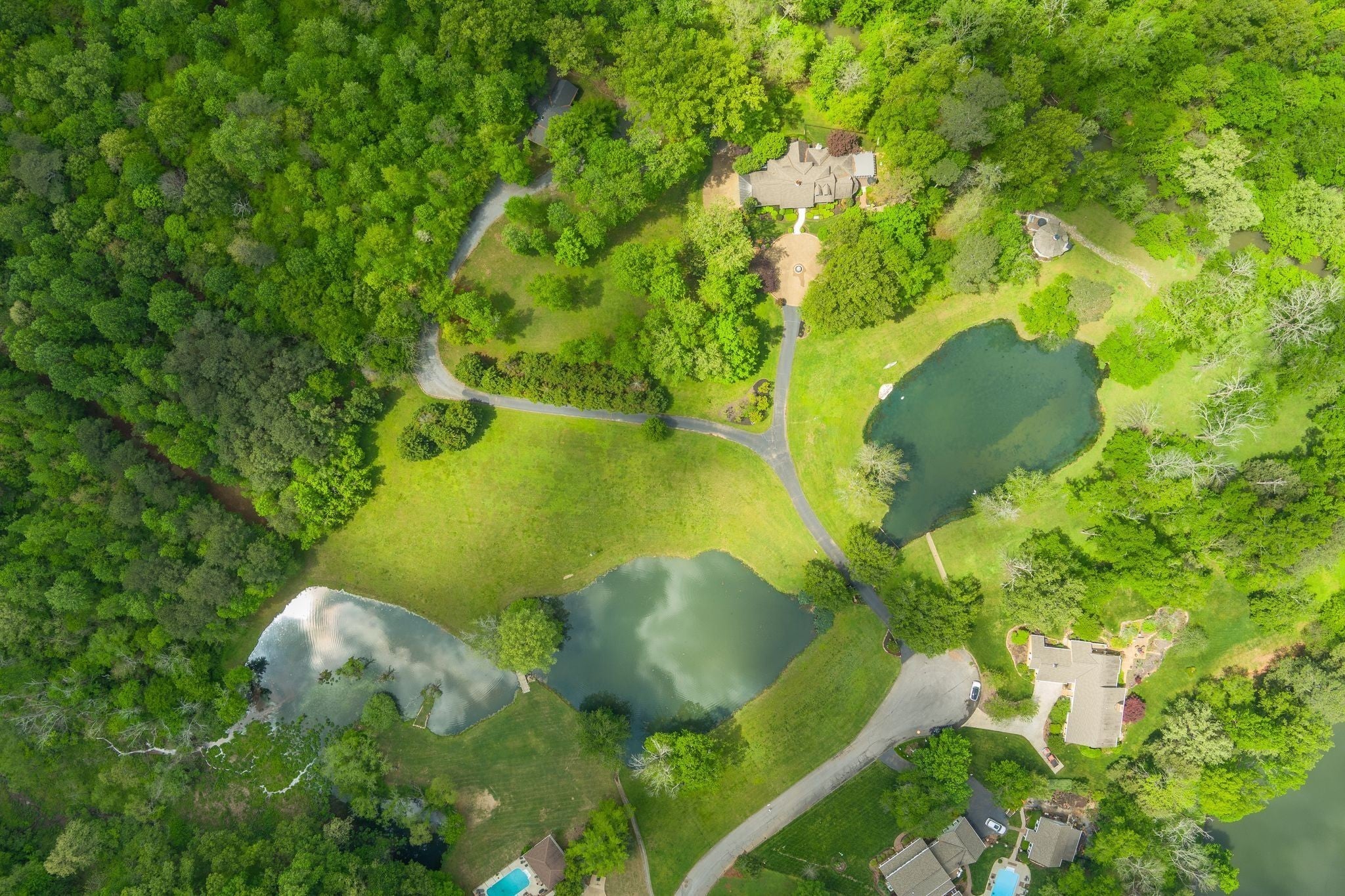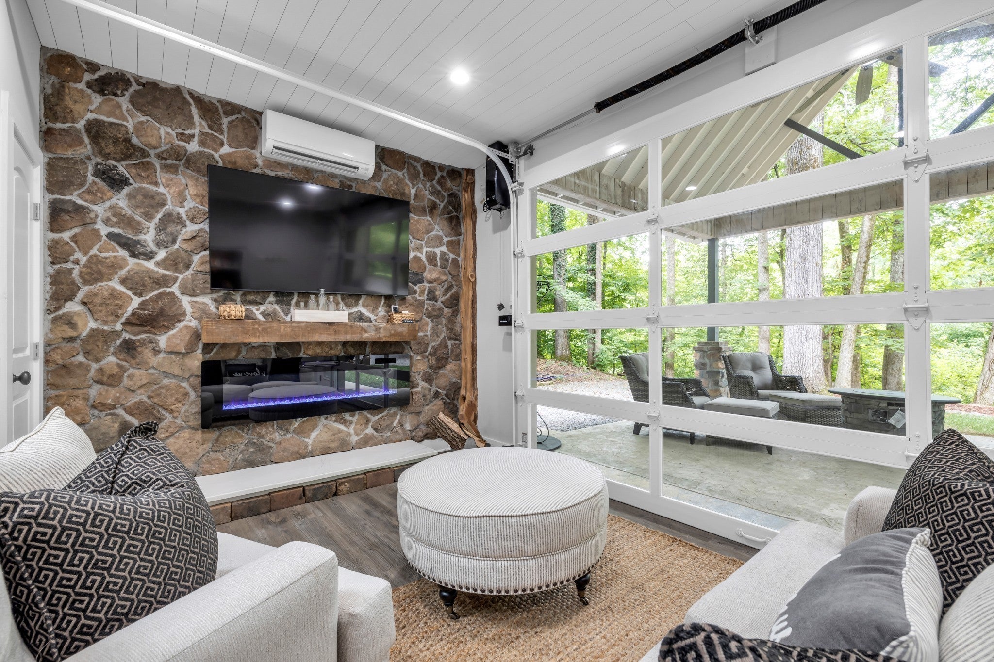 ACCEPTING OFFERS!!!! Perfectly positioned on 8.24 breathtaking acres along Candies' Creek and Fletcher Park, this private, riverfront estate offers a rare blend of timeless elegance, modern comforts, and natural beauty. As you pass through the stately electronic gates and down the tree-lined driveway, you'll discover a grand, all-brick traditional home with approx. 4,000 square feet and 1,800+ of additional luxurious living space. The main level features a stunning primary suite, soaring ceilings, elegant marble and hardwood floors, two cozy fireplaces, and a thoughtfully designed open floorplan accented by built-ins and a welcoming entry foyer. A chef's kitchen equipped with designer, smart appliances, built-in gas range, and seating for four makes everyday living and entertaining a delight. Bonus Features: Charming guest cottage with one bedroom, one full bath, and its own private entrance—perfect for extended family, guests, or income potential. Modern barn chalet with two bedrooms, one full bath, chef's kitchen, and opening garage doors to covered porch with income potential as well. Custom workshop ft. full electric, industrial sink, automatic garage door, concrete floors, recessed lighting, and 10’ portico. River frontage, private ponds, and a unique mountain rock fishing and viewing dock. Smart Home features, fire alarm system, and security gate for modern peace of mind. No HOA!! With this centralized location, minutes from Chattanooga, Volkswagon, and Lee University, it is your choice to walk into an income producing property with verifiable income or retain it's resort like qualities for you and your family's enjoyment.