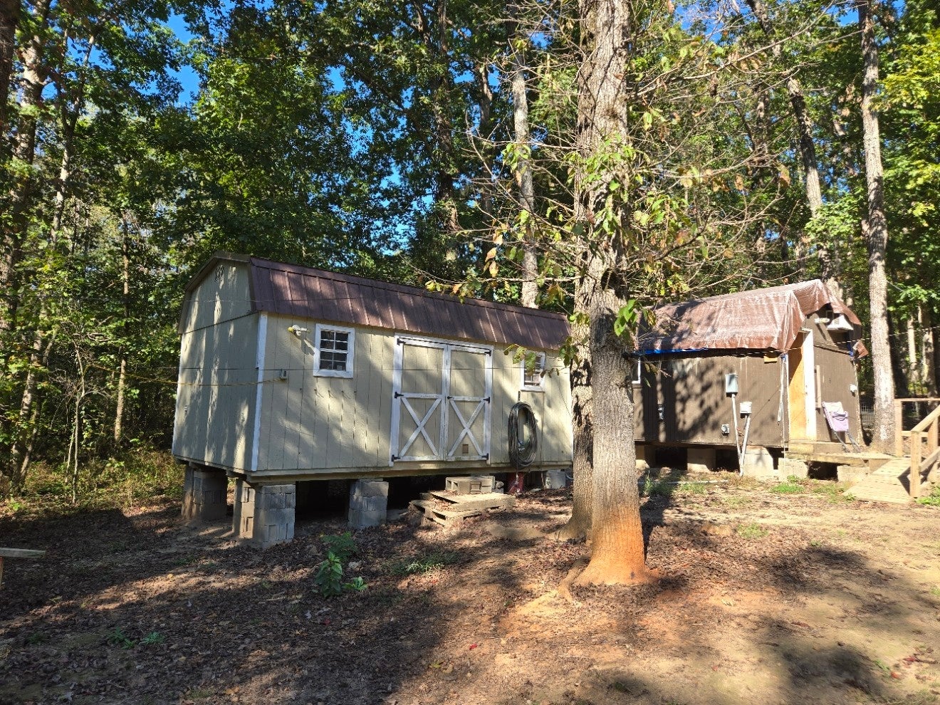 Welcome to this amazing start to your perfect new home getaway in Lyles. This 11 acres includes 4 buildings, 400 AMP service and water. The first is a 8x12 storm shelter with vertical and horizontal rebar and core filled concrete storage and utility building. It has 60 amps of power and all the connections for water you will ever need ran on most of the property. The 2nd building or tiny house is 12x20 has 100 amp service shared with the 3rd and 4th building. Power goes out no problem there is a generator backup wired and ready to go. Also on demand propane water heater and stove. the 3rd building is 10x20 more storage and laundry service. The 4th is a tiny house 10x20 with a mini split with awesome room and loft areas. There is a perk test from a few years ago for a 3 bedroom.