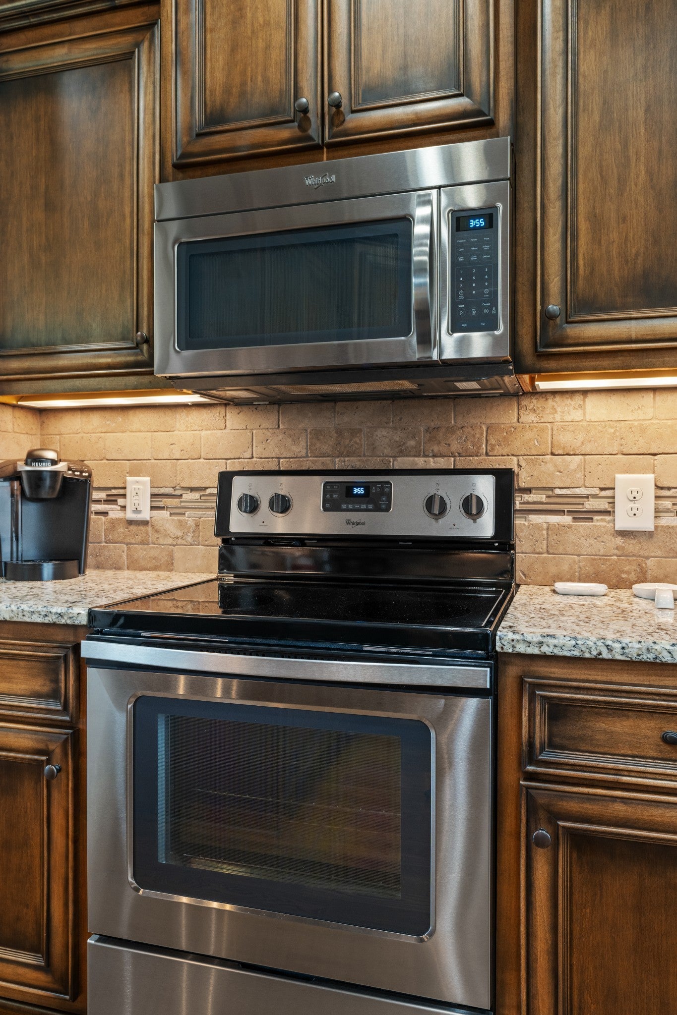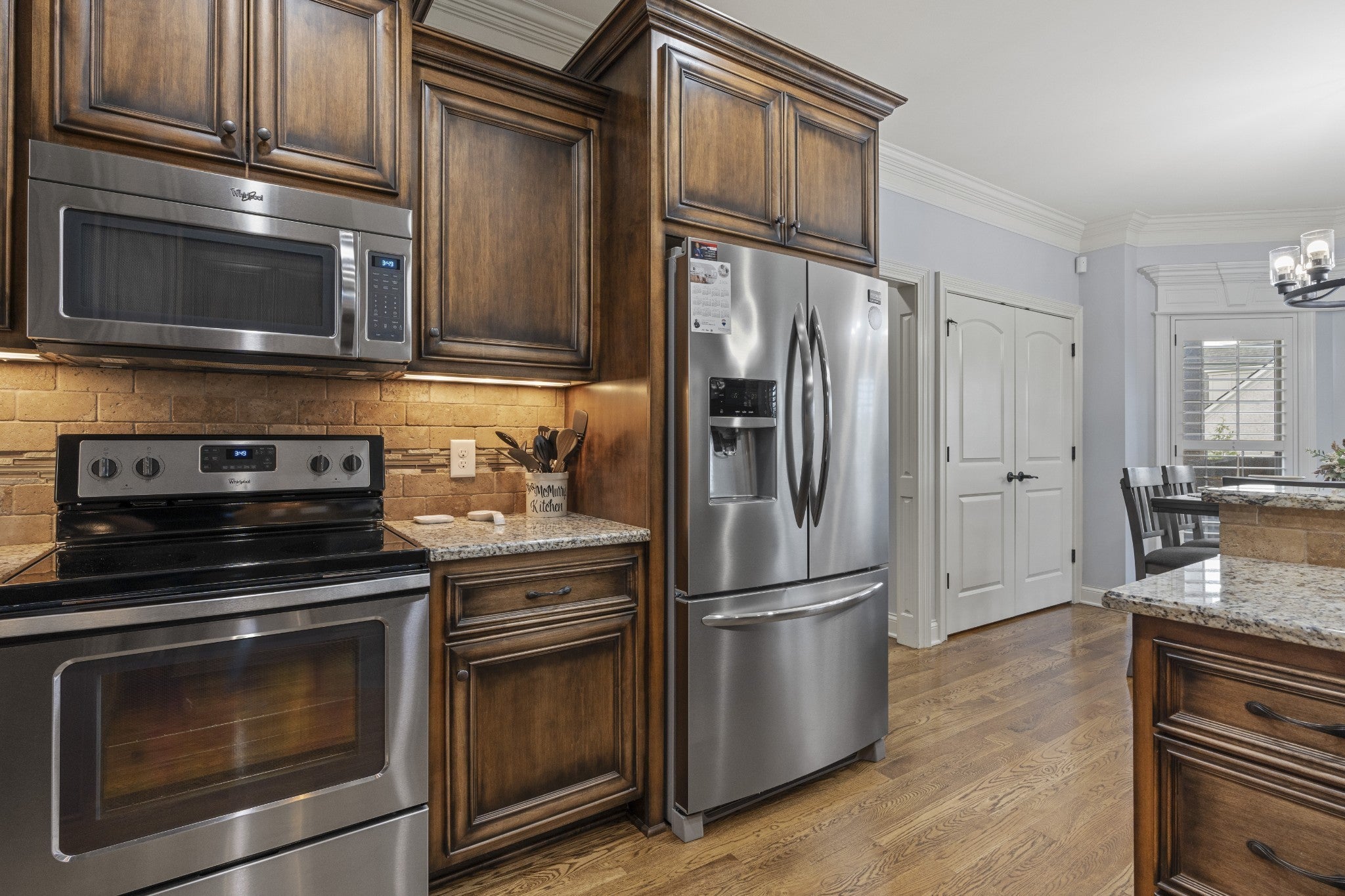 - Electric Range, Dishwasher, Disposal, Microwave, Refrigerator, Stainless Steel Appliance(s)