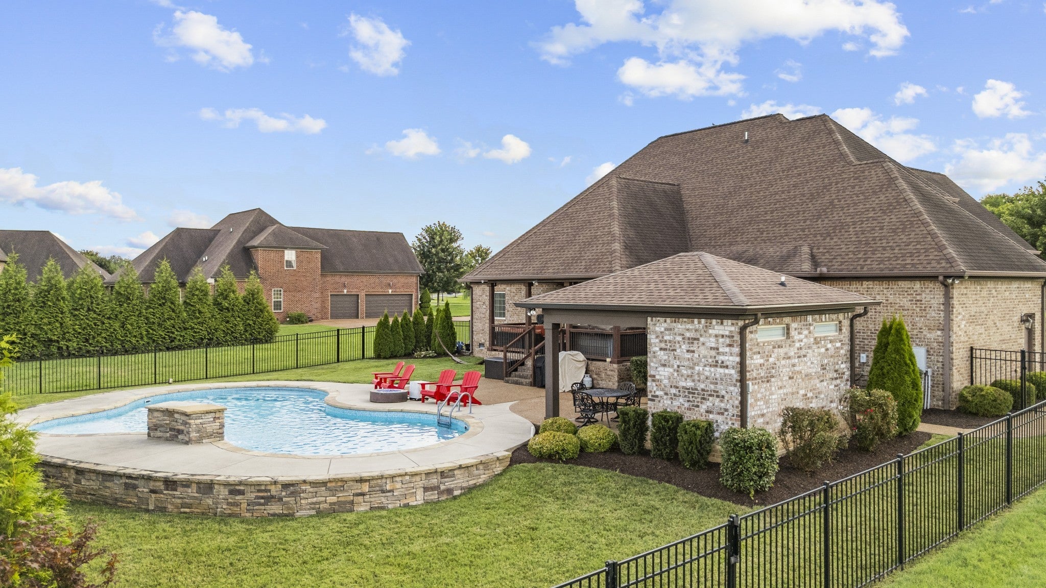 Welcome to your private retreat at a beautifully maintained residence designed for comfort, convenience, and effortless entertaining. This exceptional property features a resort-style, heated saltwater pool and a fully equipped pool house, offering the perfect blend of indoor and outdoor living. This home has granite tops throughout the home. Hardwood floors on the main level and plantation shutters throughout the home. The bonus room has surround sound speakers professionally installed. Too many upgrades to list. Come and view this home for yourself. Hot tub, security cameras, and out door speakers do not convey with the home.