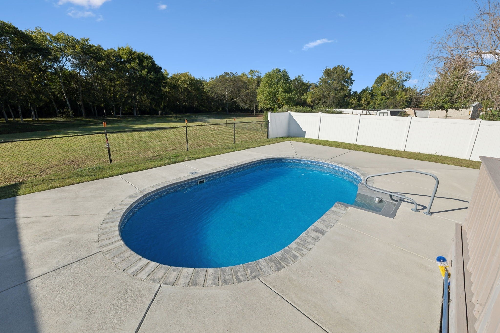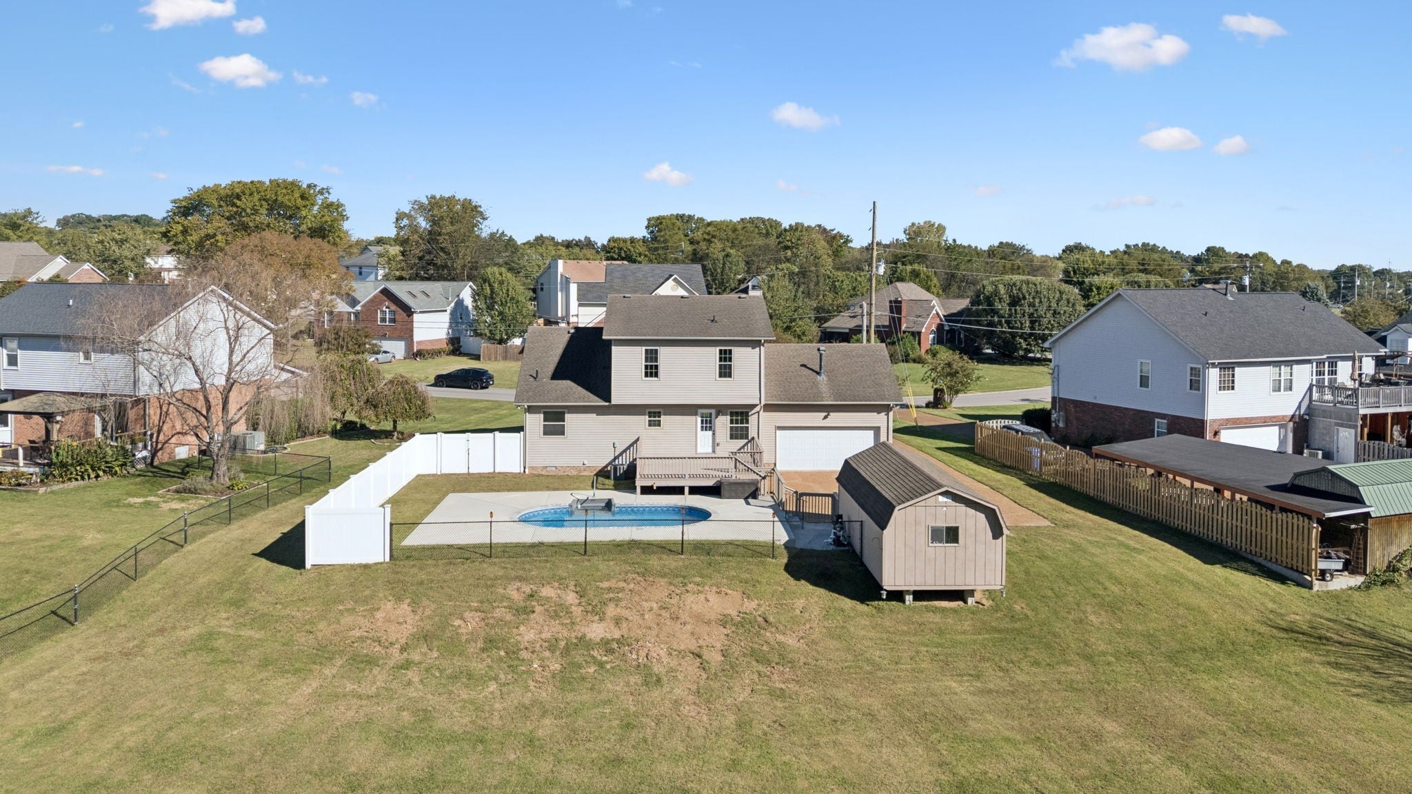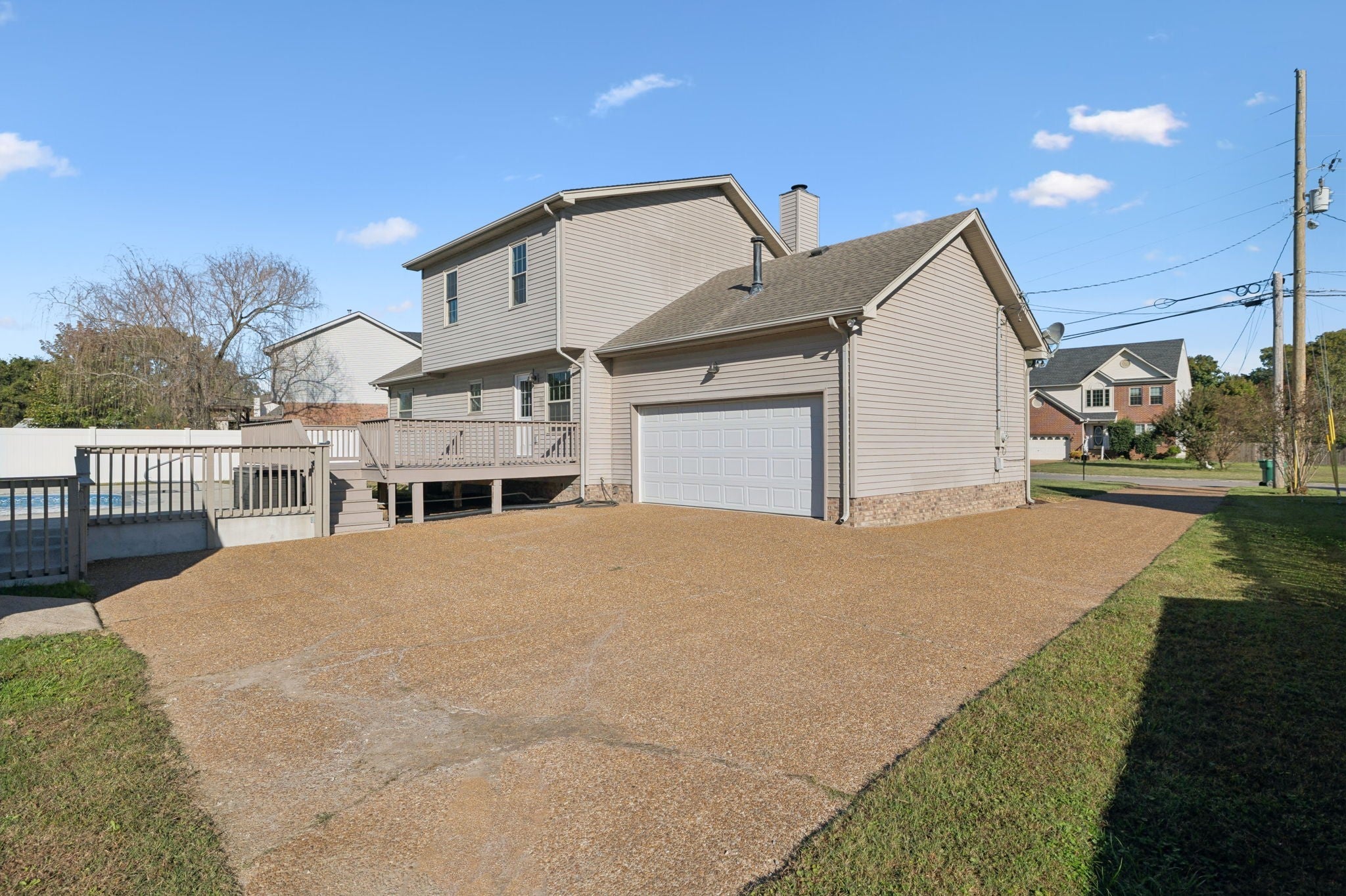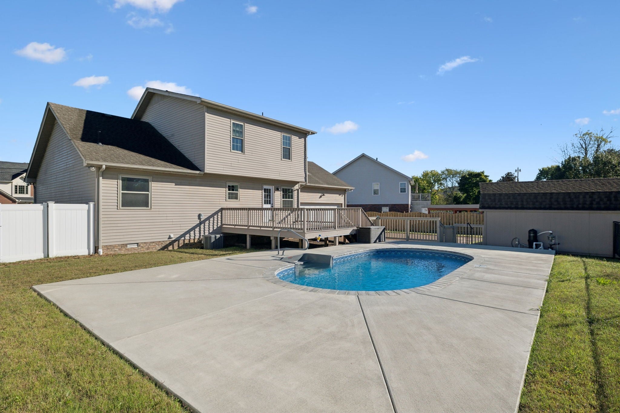 Conveniently located just minutes from I-24, this updated 3-bedroom, 2.5-bath home offers fresh flooring and paint, stylish new light fixtures, and stunning quartz countertops. Enjoy outdoor living with an inground pool, spacious deck, and a private, tree-lined lot with a small creek. The home also features a rear-entry 2-car garage and plenty of space to relax and entertain. Seller is related to the listing agent. Agent is related to the seller.