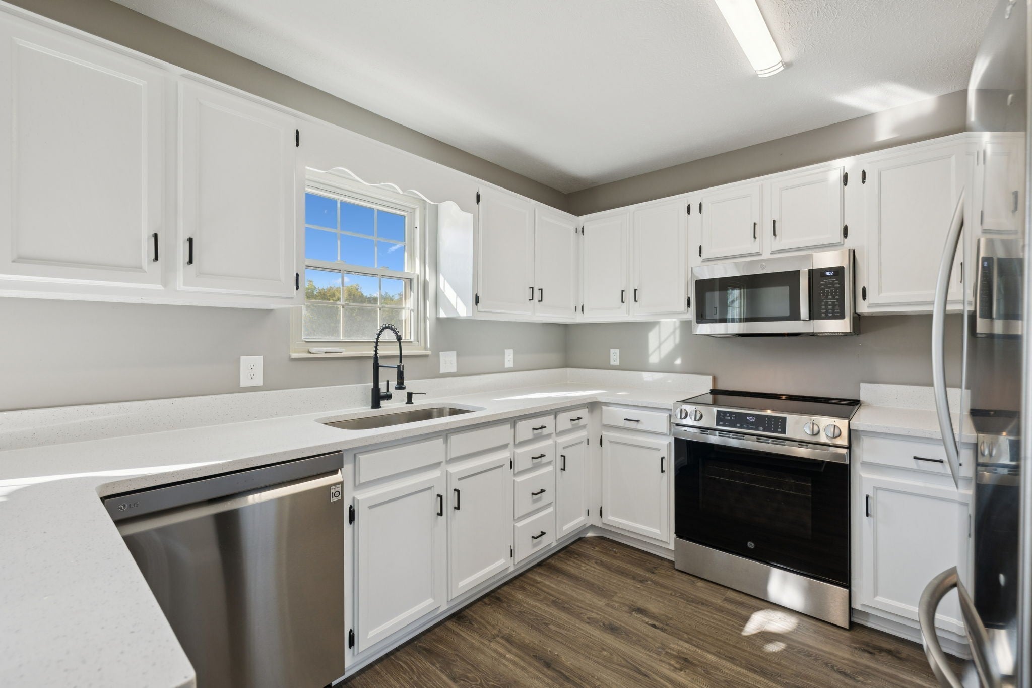 - Electric Oven, Electric Range, Dishwasher, Microwave, Refrigerator, Stainless Steel Appliance(s)