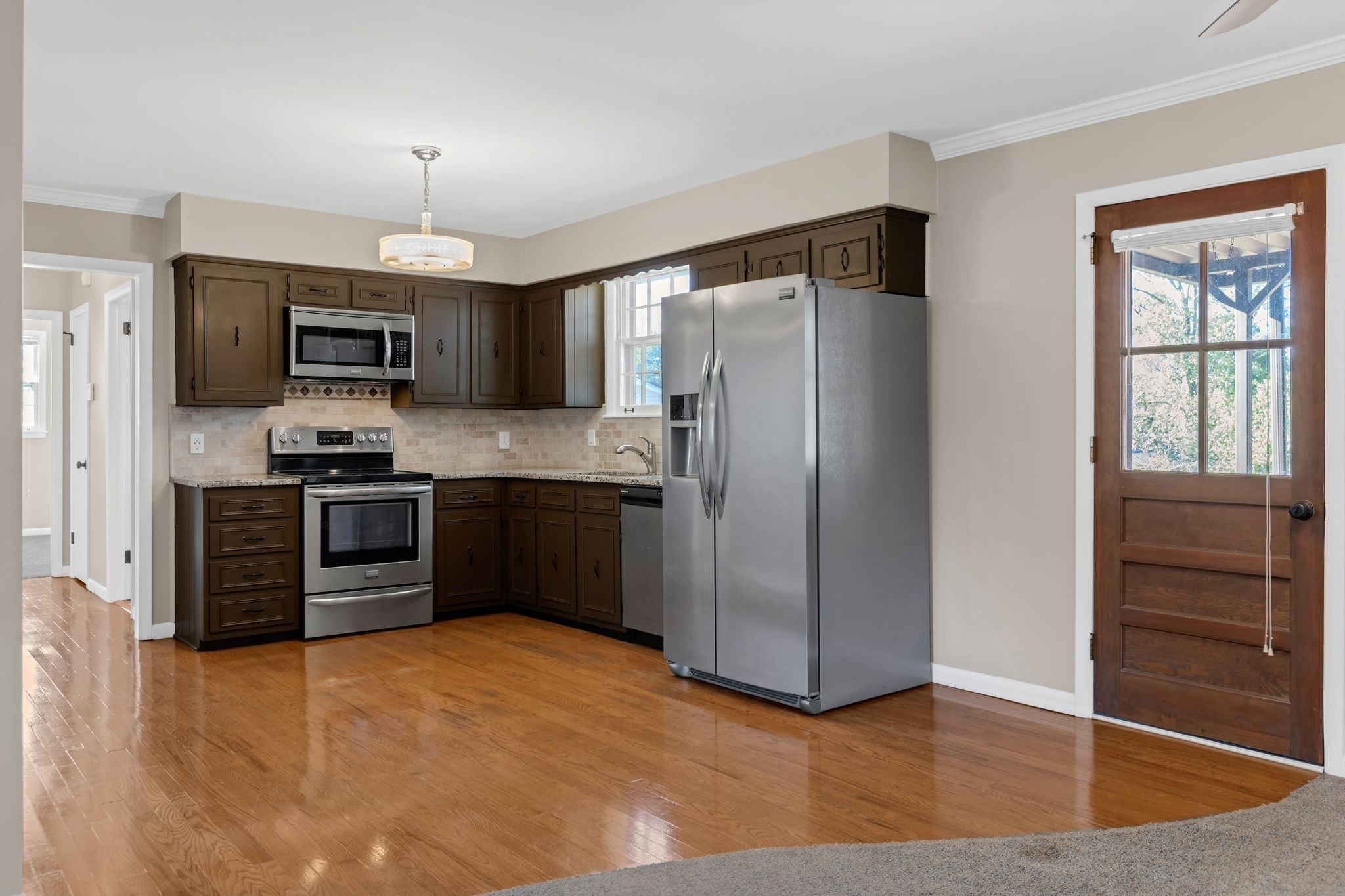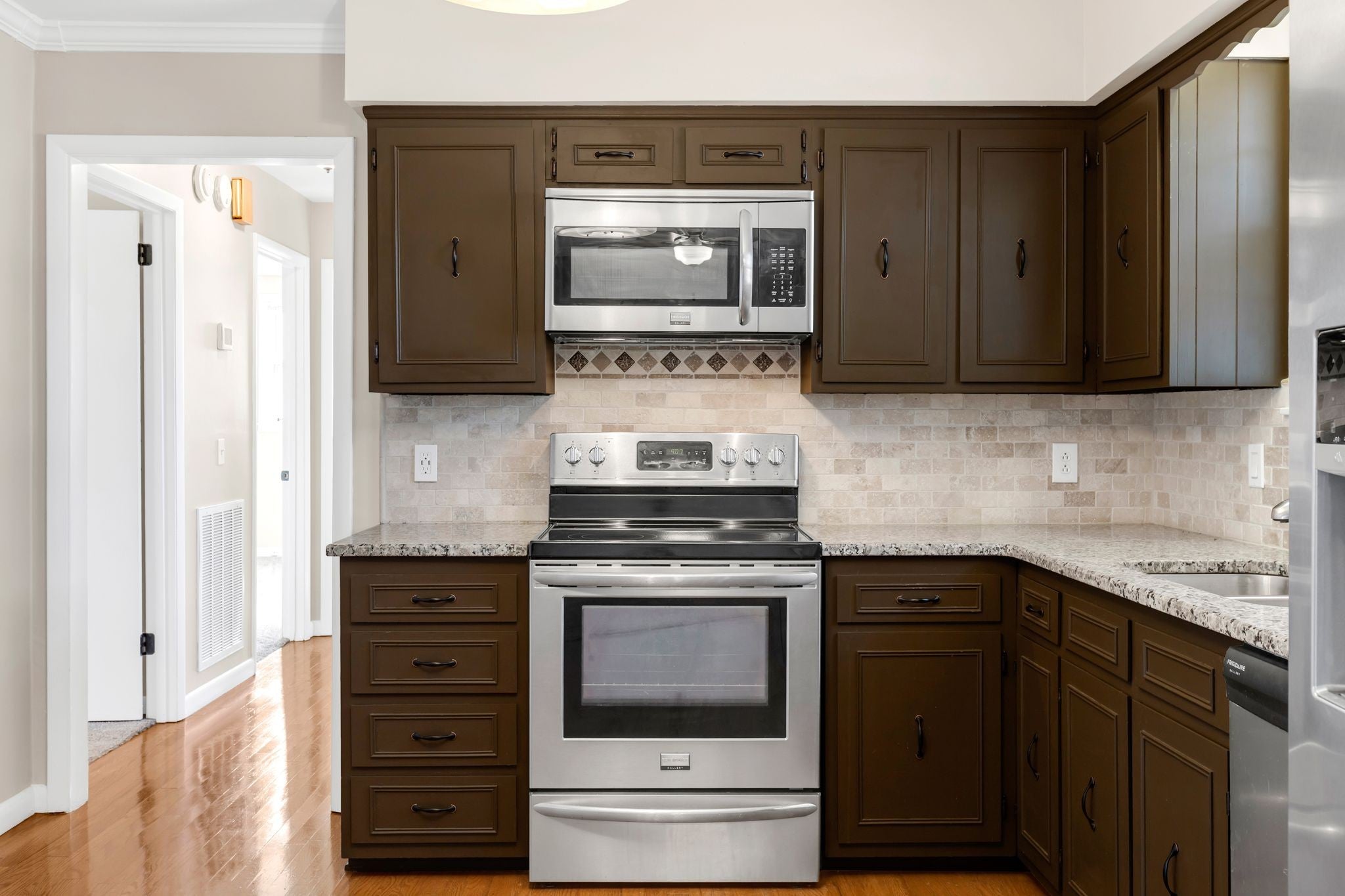 - Electric Range, Dishwasher, Microwave, Refrigerator, Stainless Steel Appliance(s)