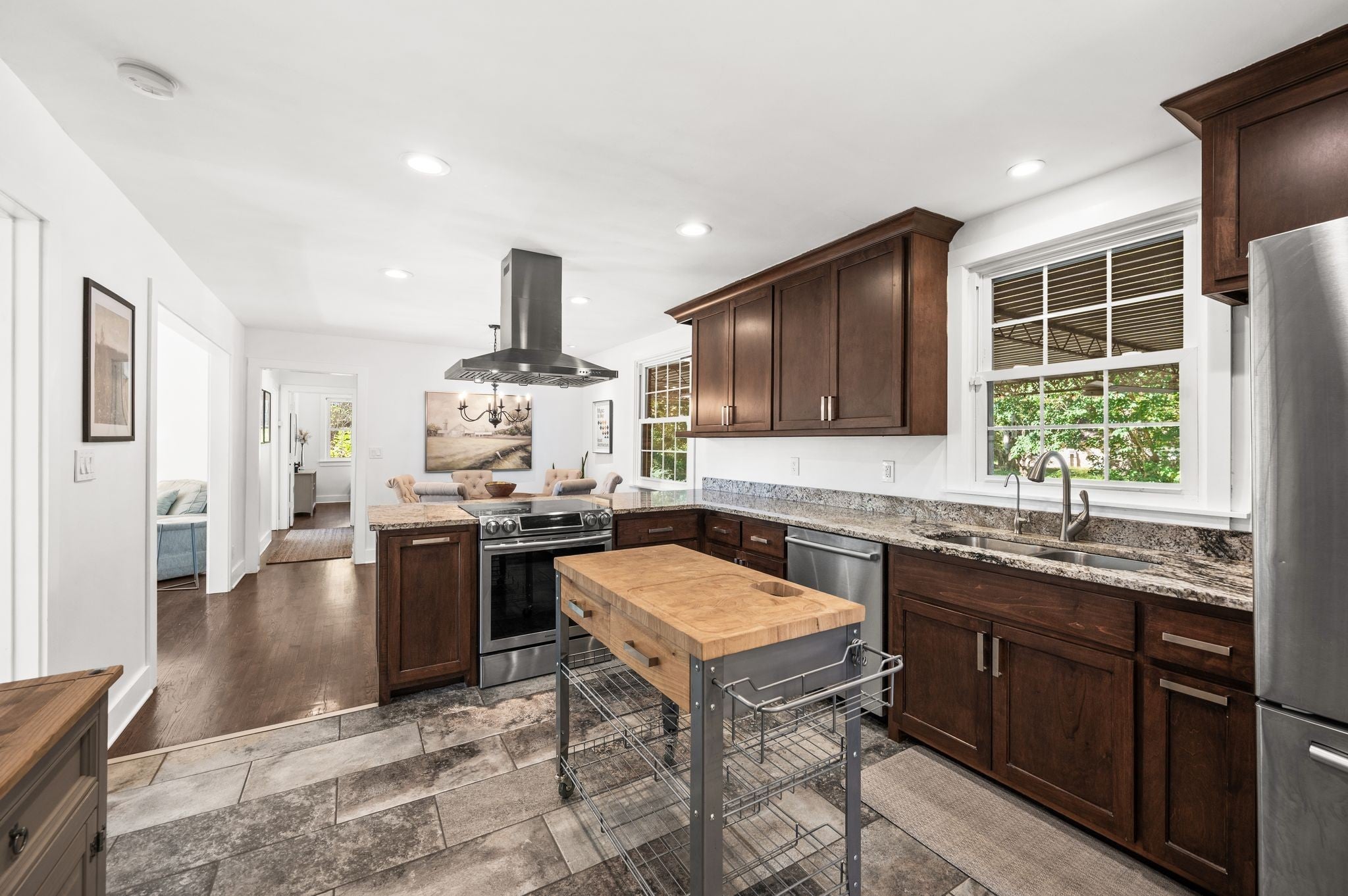 - Oven, Range, Dishwasher, Dryer, Refrigerator, Stainless Steel Appliance(s), Washer