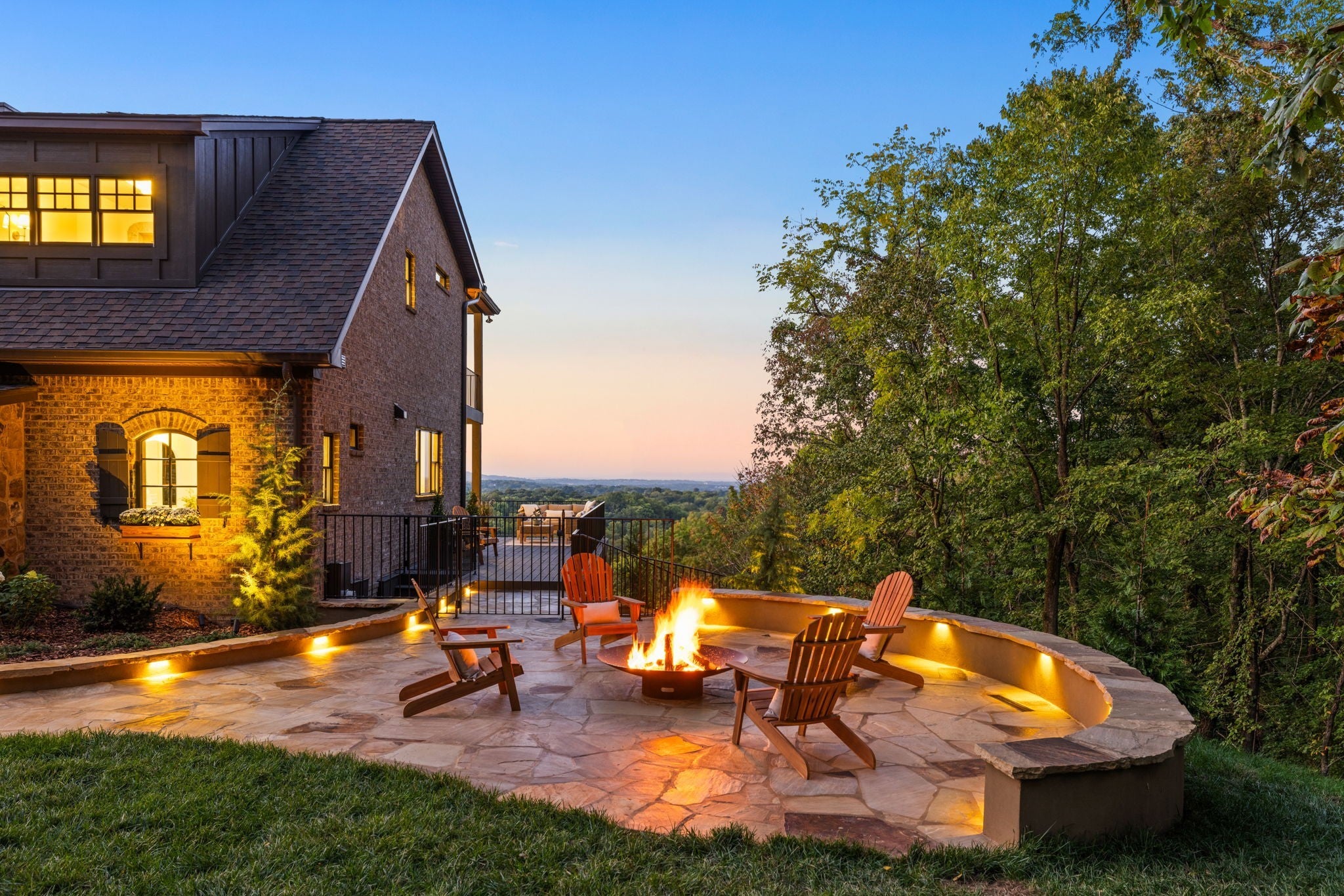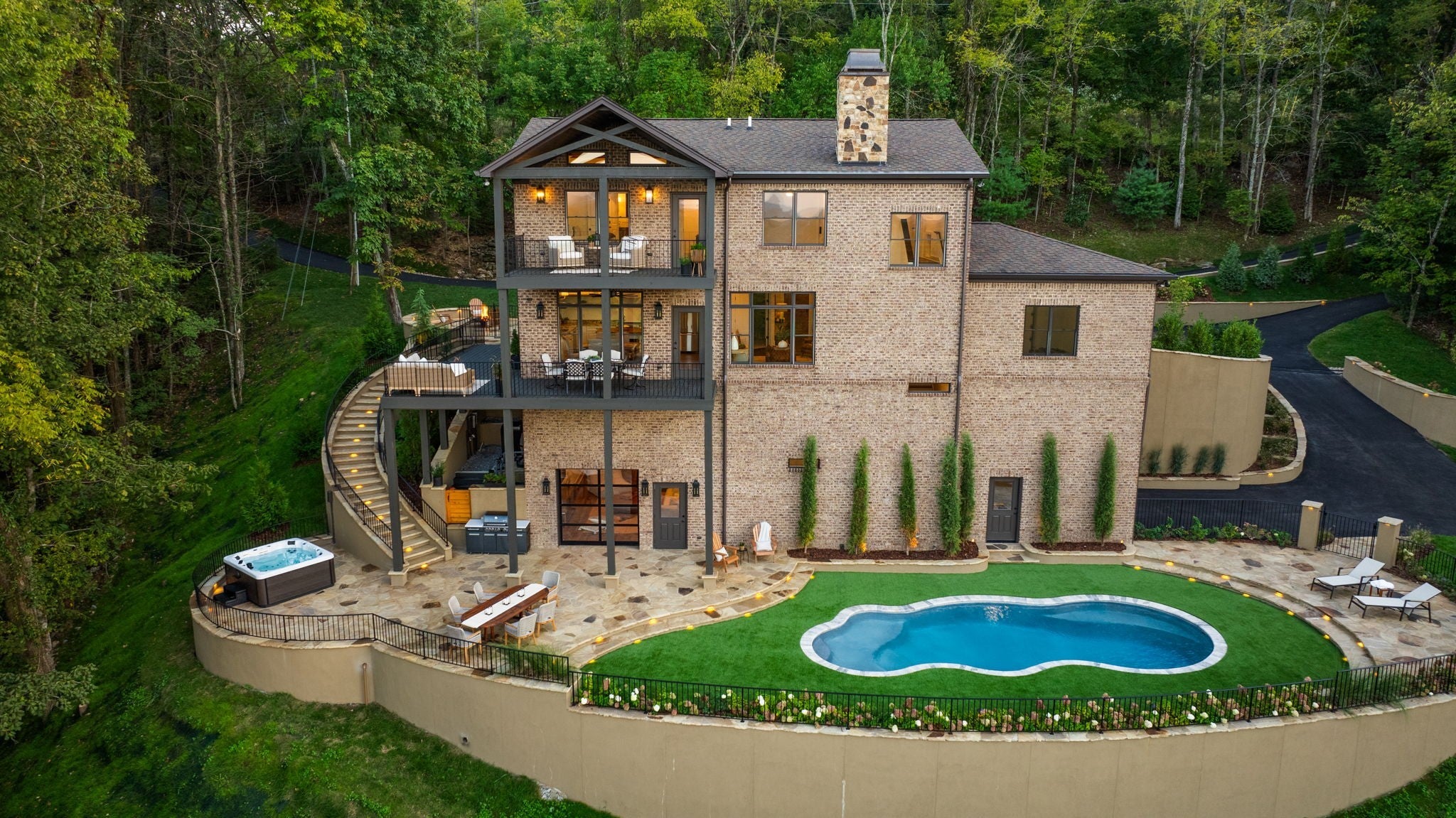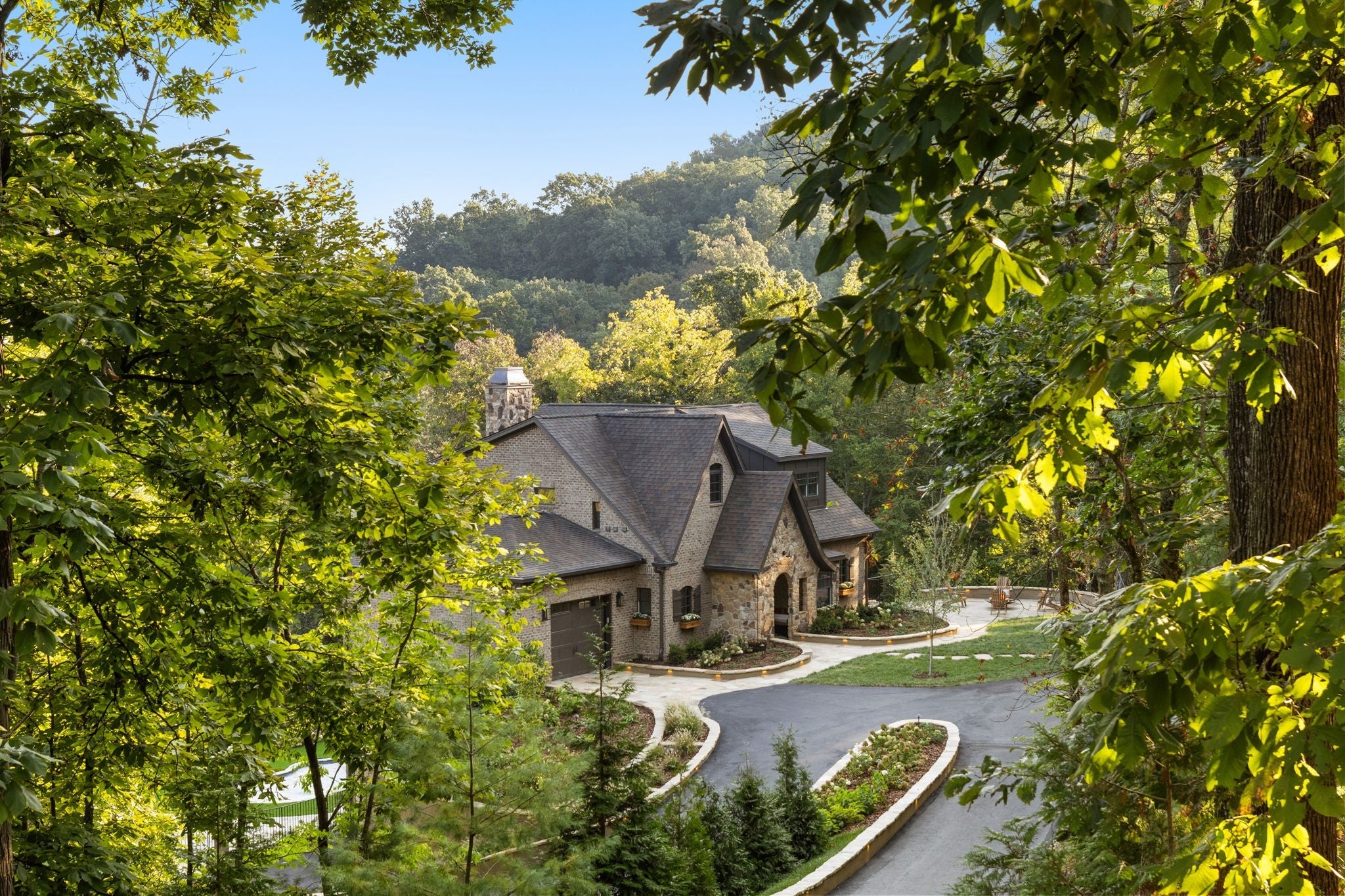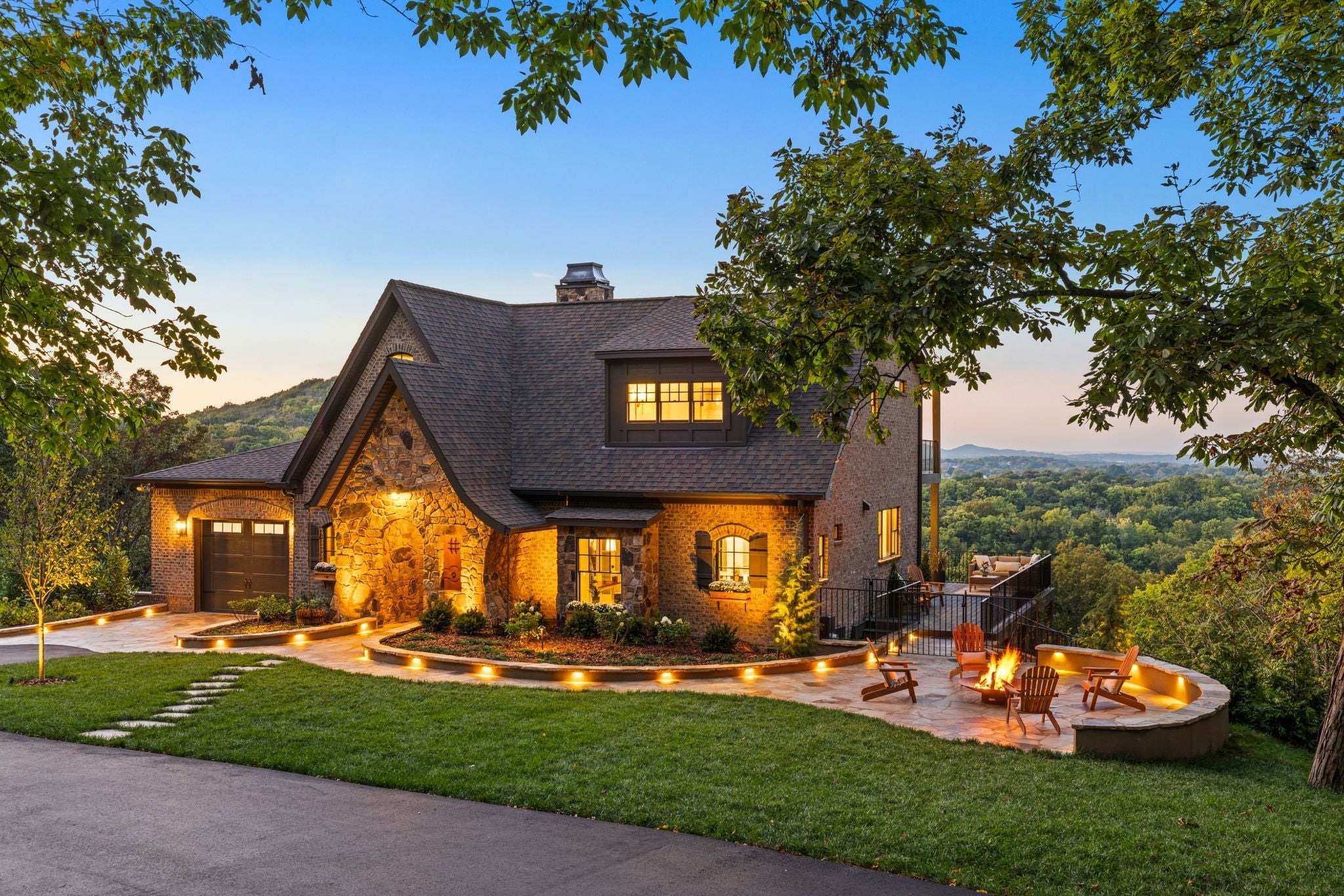 Nestled within the treasure of unexpected, hidden hills in Williamson County, this custom estate rests at the peak of highly sought-after Burke Hollow Road, unfolding across over eight acres of beautiful Tennessee landscape. It offers the charm of a private mountain lodge with the elegance of a luxury retreat- inspired by the timeless beauty of the Grove Park Inn. From its elevated vantage point, enjoy sweeping, unobstructed views, including Music City’s distant lights, creating a setting that feels both peaceful and extraordinary. Here, grandeur is defined by the way the home lives—flowing effortlessly with its breathtaking surroundings, so deeply connected to the natural landscape that it feels as though it has no end. Across three levels of living, you’ll find four bedrooms and four and a half baths, where thoughtful design meets everyday comfort. The main level showcases an expansive covered and uncovered wraparound deck off the kitchen and living room—perfect for entertaining large gatherings or enjoying retreat-like seclusion with panoramic views. The lower level impresses with soaring ceilings over grand living and dining areas, recreational spaces, full bath and secondary laundry, with adjoining oversized 2-car garage- all seamlessly connecting to multiple natural stone patios, heated resort-style pool, and hot tub. An entertainer’s dream that effortlessly blends luxury indoor and outdoor living. Upstairs, the primary suite opens to a private covered deck, a tranquil perch for quiet mornings or sunset views. On Independence Day, the property transforms into its own celebration, as fireworks spanning multiple towns and counties illuminate the horizon—an unrivaled experience from your private hillside haven. Whether envisioned as a personal, secluded estate or luxury Airbnb, this property embodies refined Tennessee living—where craftsmanship, comfort, and natural beauty meet in perfect harmony.