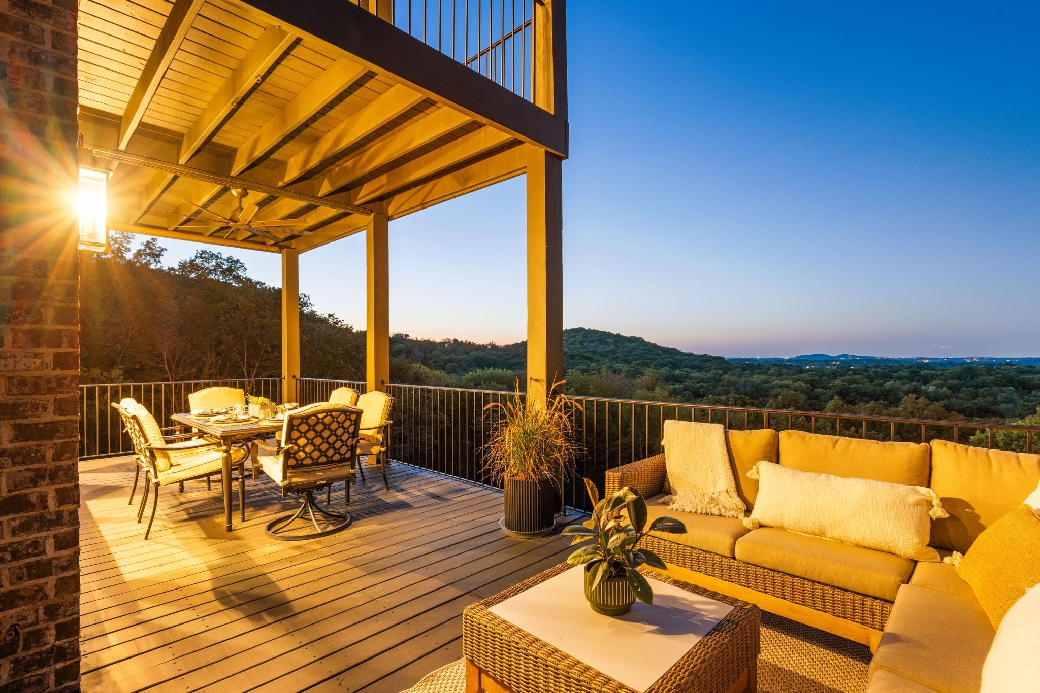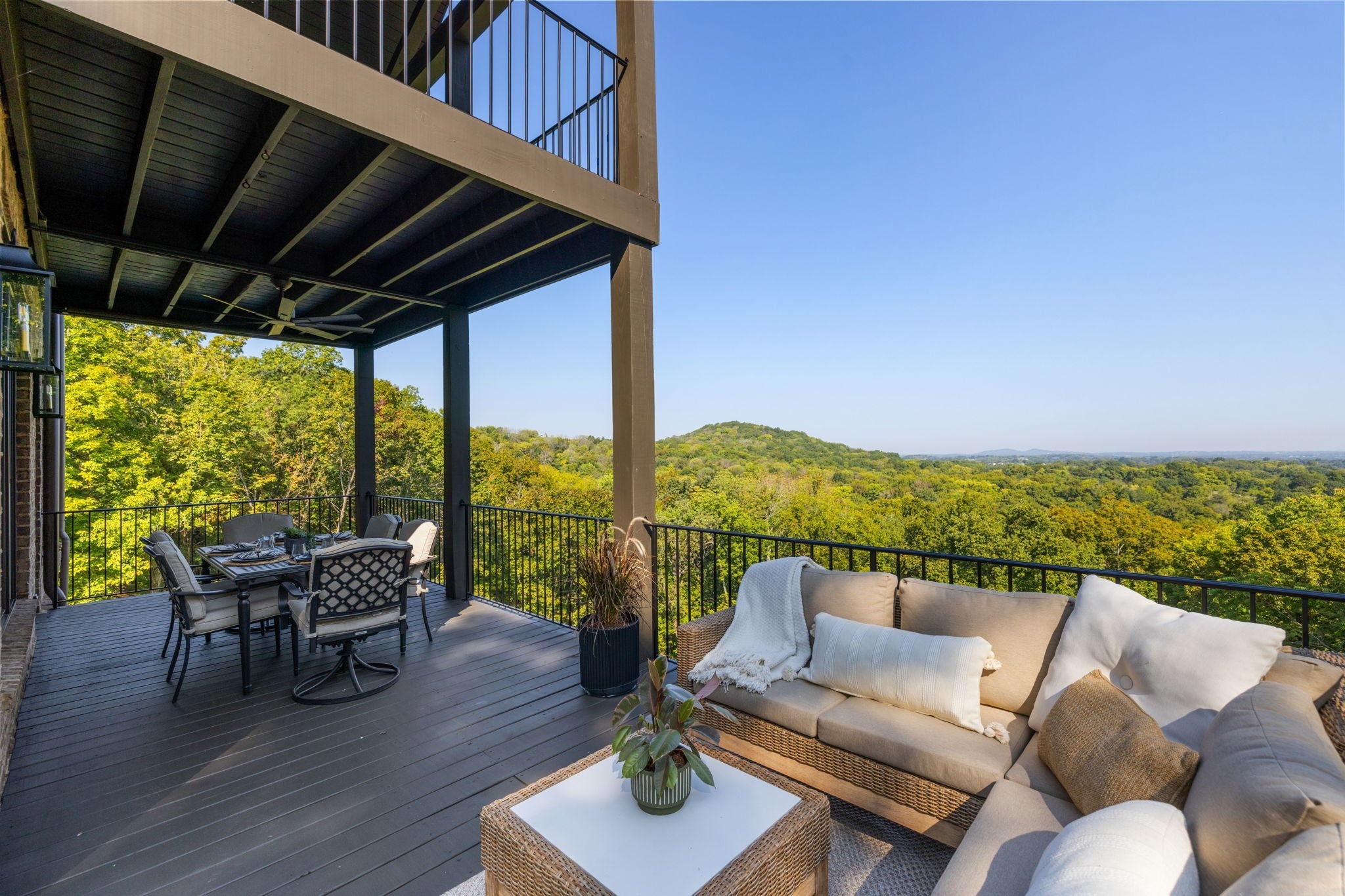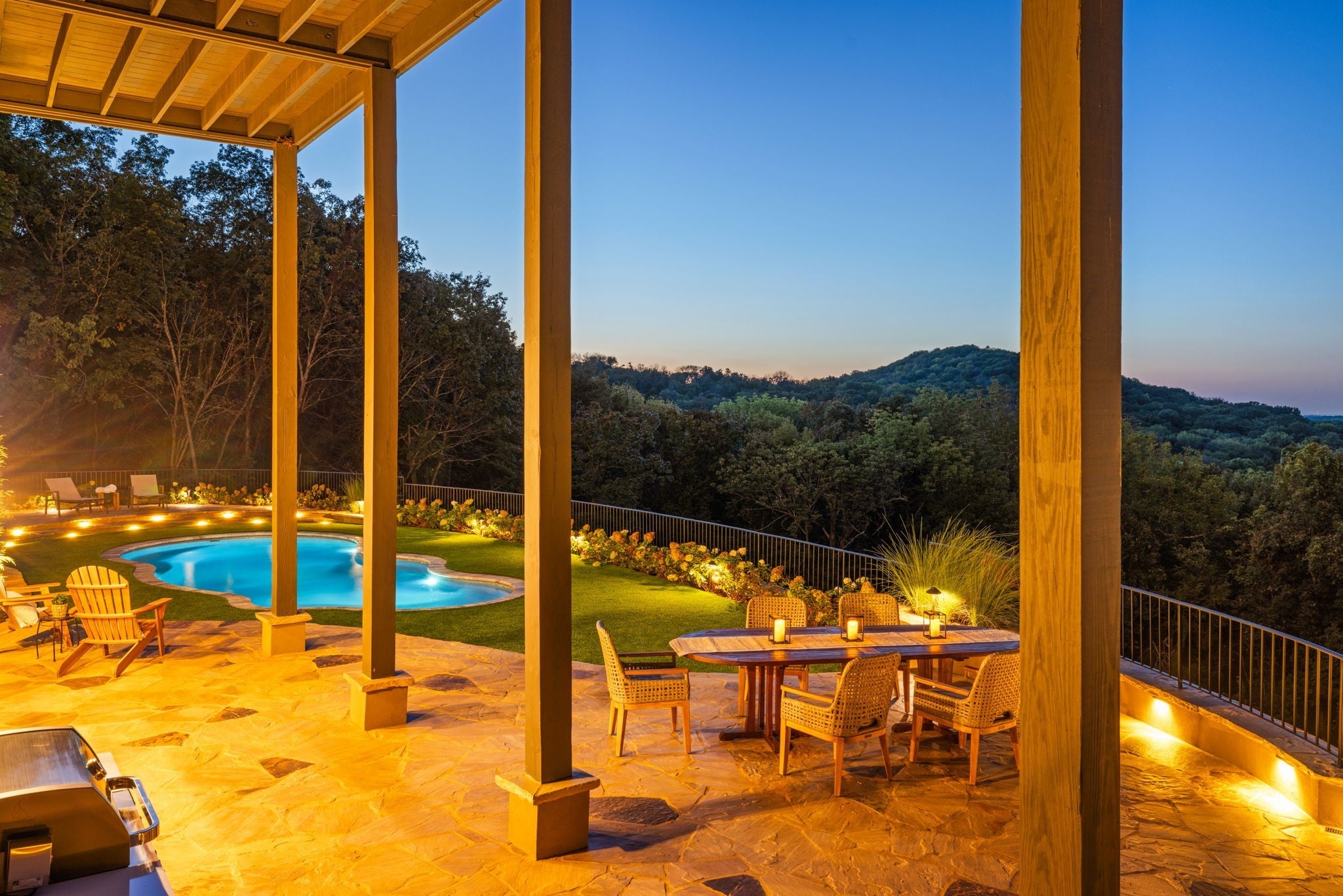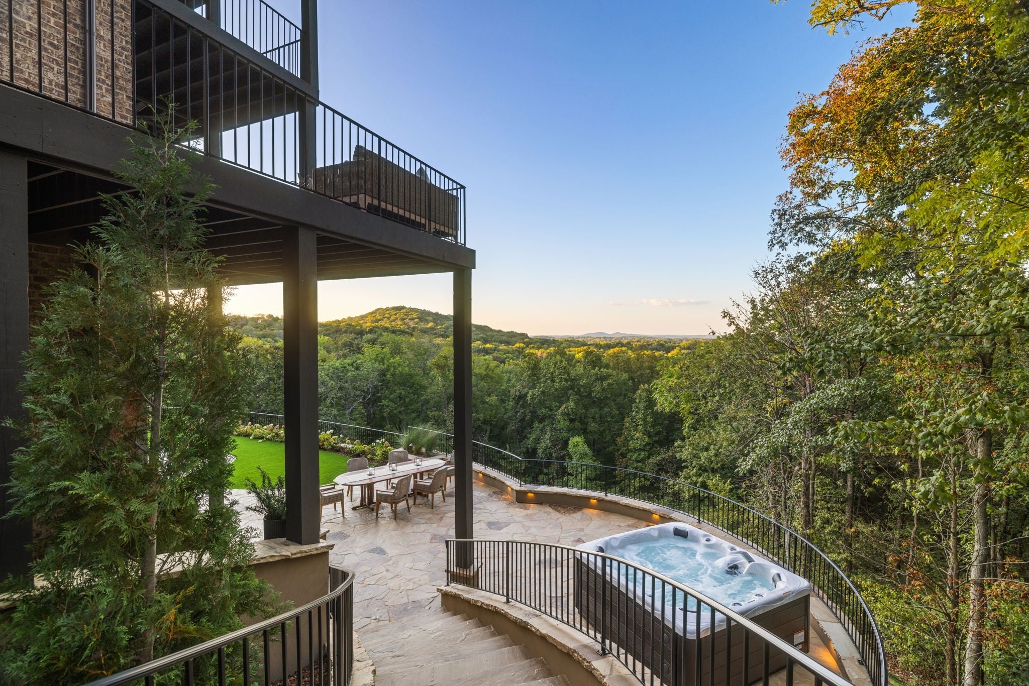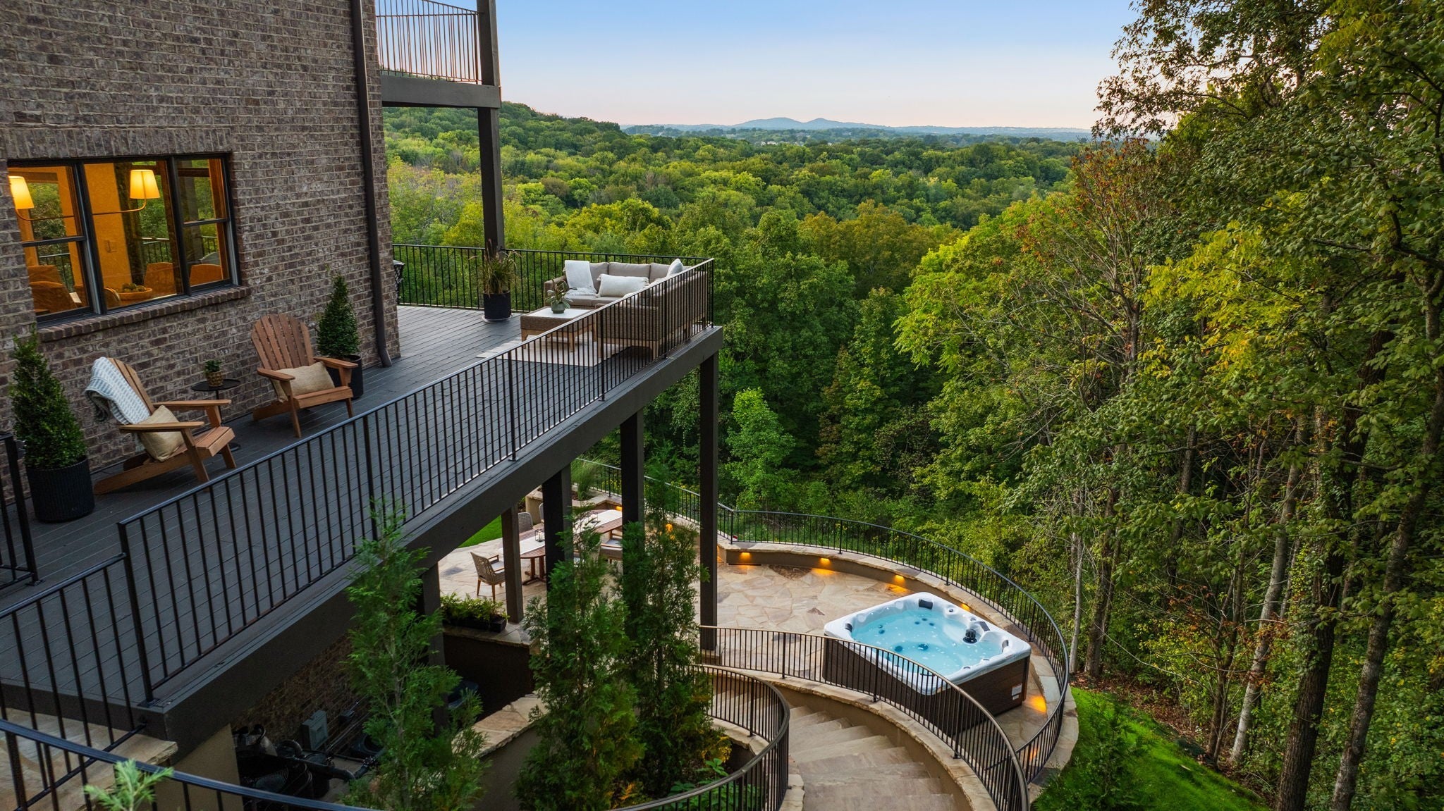 Nestled within the treasure of unexpected, hidden hills in Williamson County, this custom estate rests at the peak of highly sought-after Burke Hollow Road, unfolding across over eight acres of beautiful Tennessee landscape. It offers the charm of a private mountain lodge with the elegance of a luxury retreat- inspired by the timeless beauty of the Grove Park Inn. From its elevated vantage point, enjoy sweeping, unobstructed views, including Music City’s distant lights, creating a setting that feels both peaceful and extraordinary. Here, grandeur is defined by the way the home lives—flowing effortlessly with its breathtaking surroundings, so deeply connected to the natural landscape that it feels as though it has no end. Across three levels of living, you’ll find four bedrooms and four and a half baths, where thoughtful design meets everyday comfort. The main level showcases an expansive covered and uncovered wraparound deck off the kitchen and living room—perfect for entertaining large gatherings or enjoying retreat-like seclusion with panoramic views. The lower level impresses with soaring ceilings over grand living and dining areas, recreational spaces, full bath and secondary laundry, with adjoining oversized 2-car garage- all seamlessly connecting to multiple natural stone patios, heated resort-style pool, and hot tub. An entertainer’s dream that effortlessly blends luxury indoor and outdoor living. Upstairs, the primary suite opens to a private covered deck, a tranquil perch for quiet mornings or sunset views. On Independence Day, the property transforms into its own celebration, as fireworks spanning multiple towns and counties illuminate the horizon—an unrivaled experience from your private hillside haven. Whether envisioned as a personal, secluded estate or luxury Airbnb, this property embodies refined Tennessee living—where craftsmanship, comfort, and natural beauty meet in perfect harmony.
