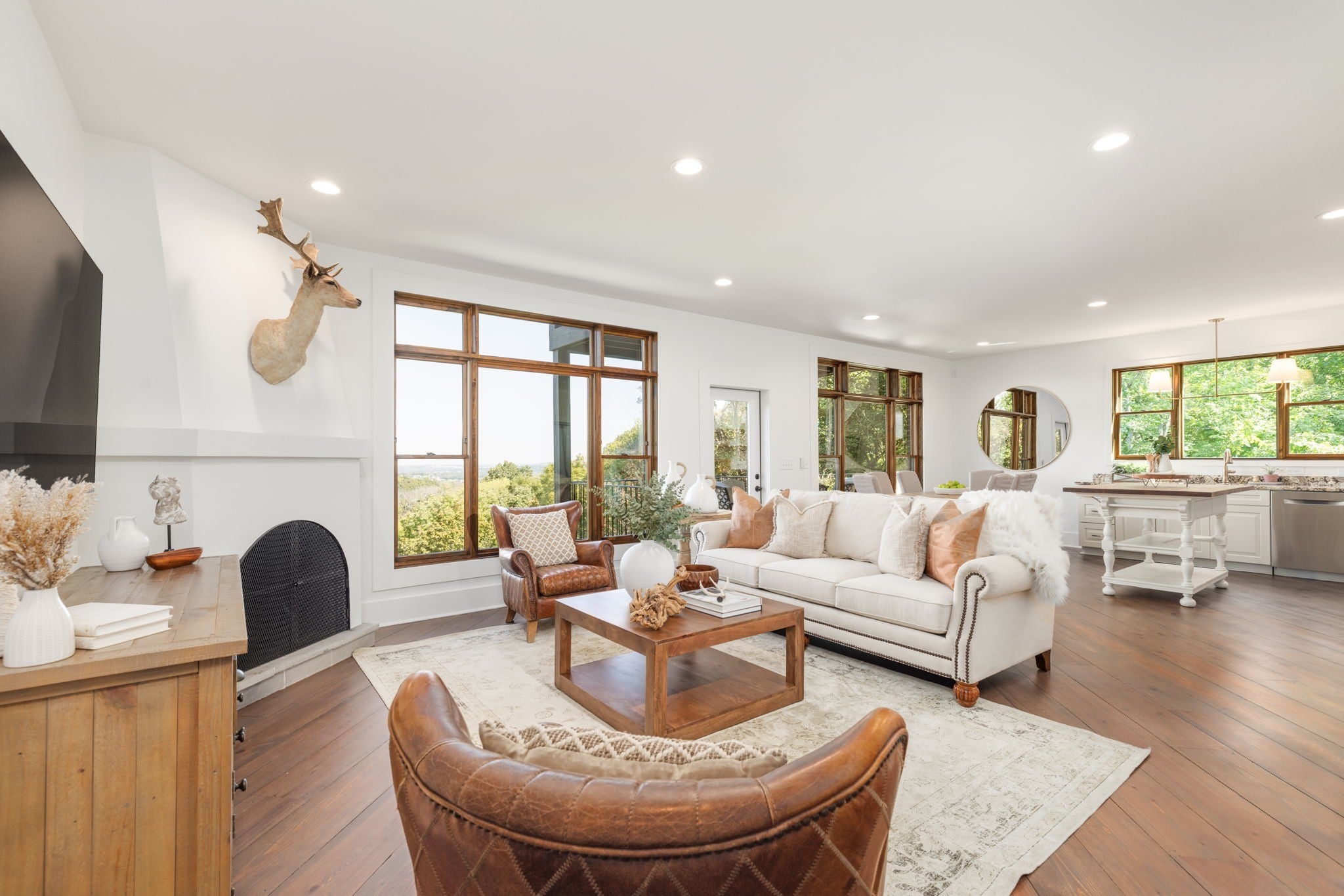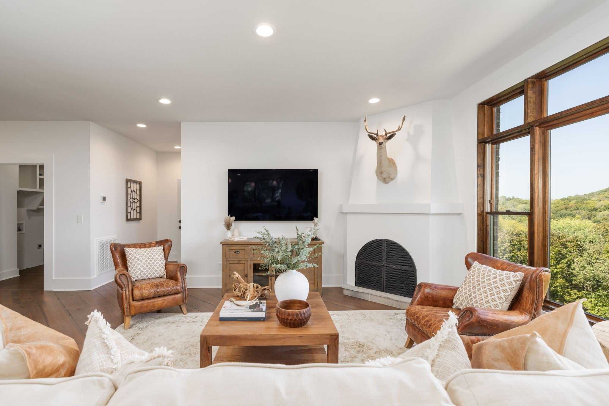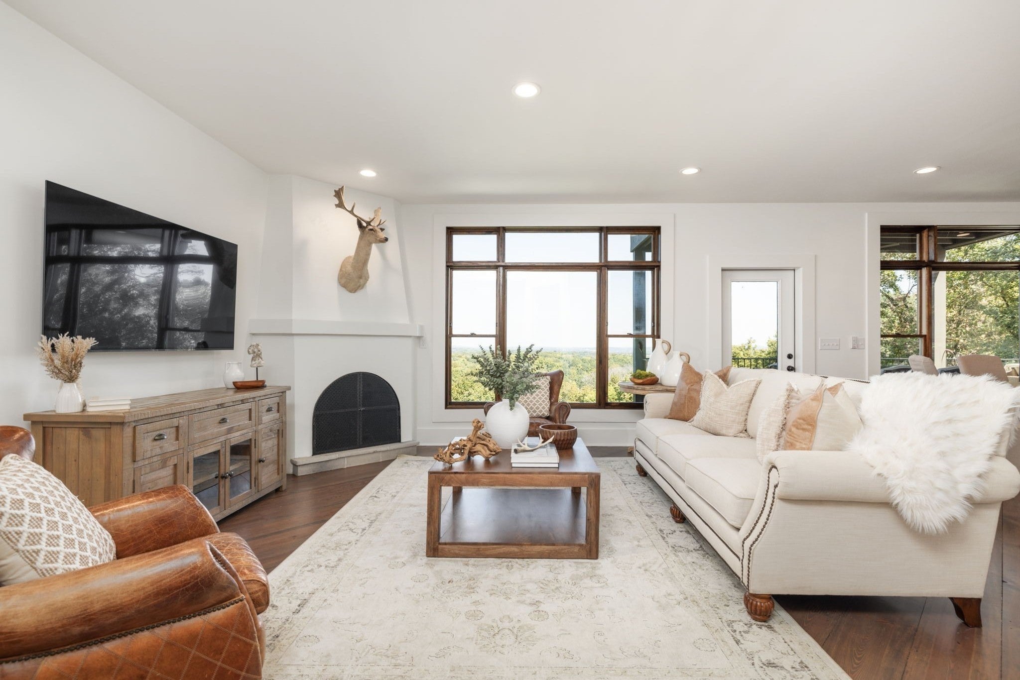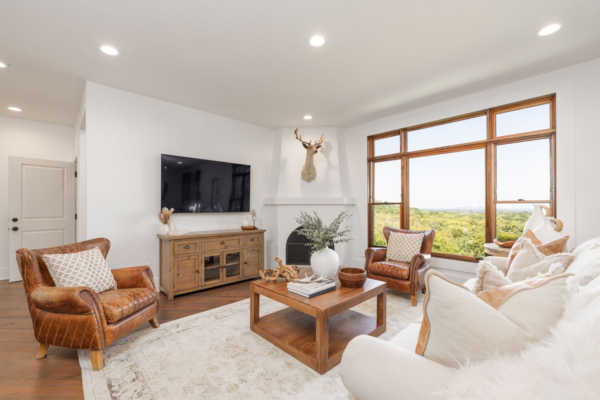 Nestled within the treasure of unexpected, hidden hills in Williamson County, this custom estate rests at the peak of highly sought-after Burke Hollow Road, unfolding across over eight acres of beautiful Tennessee landscape. It offers the charm of a private mountain lodge with the elegance of a luxury retreat- inspired by the timeless beauty of the Grove Park Inn. From its elevated vantage point, enjoy sweeping, unobstructed views, including Music City’s distant lights, creating a setting that feels both peaceful and extraordinary. Here, grandeur is defined by the way the home lives—flowing effortlessly with its breathtaking surroundings, so deeply connected to the natural landscape that it feels as though it has no end. Across three levels of living, you’ll find four bedrooms and four and a half baths, where thoughtful design meets everyday comfort. The main level showcases an expansive covered and uncovered wraparound deck off the kitchen and living room—perfect for entertaining large gatherings or enjoying retreat-like seclusion with panoramic views. The lower level impresses with soaring ceilings over grand living and dining areas, recreational spaces, full bath and secondary laundry, with adjoining oversized 2-car garage- all seamlessly connecting to multiple natural stone patios, heated resort-style pool, and hot tub. An entertainer’s dream that effortlessly blends luxury indoor and outdoor living. Upstairs, the primary suite opens to a private covered deck, a tranquil perch for quiet mornings or sunset views. On Independence Day, the property transforms into its own celebration, as fireworks spanning multiple towns and counties illuminate the horizon—an unrivaled experience from your private hillside haven. Whether envisioned as a personal, secluded estate or luxury Airbnb, this property embodies refined Tennessee living—where craftsmanship, comfort, and natural beauty meet in perfect harmony.