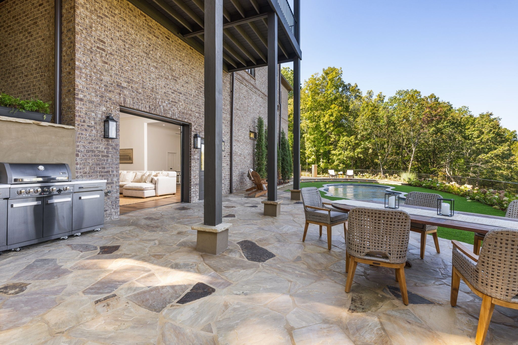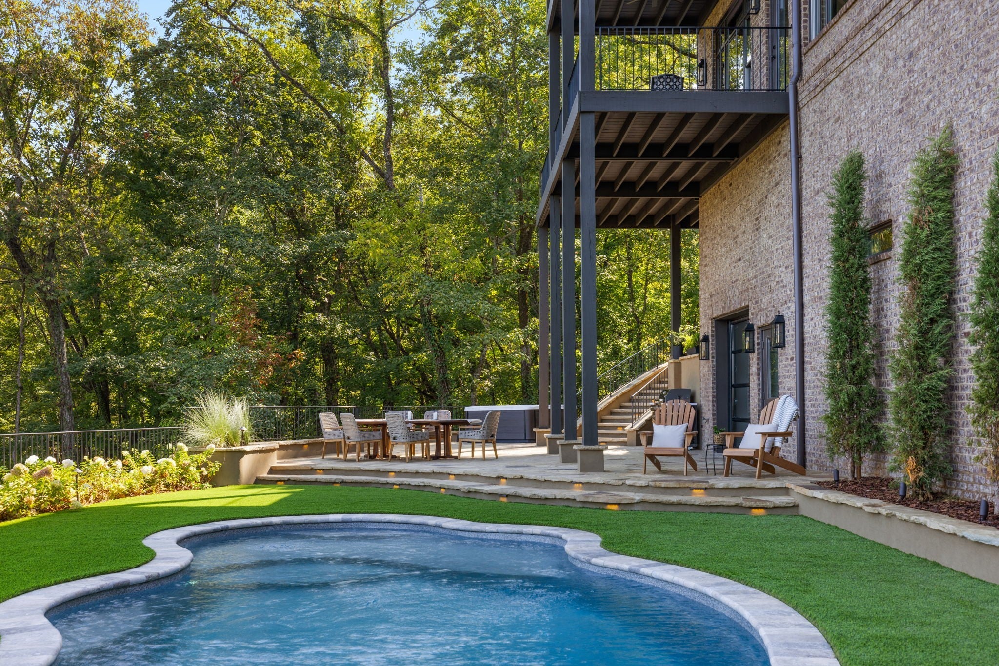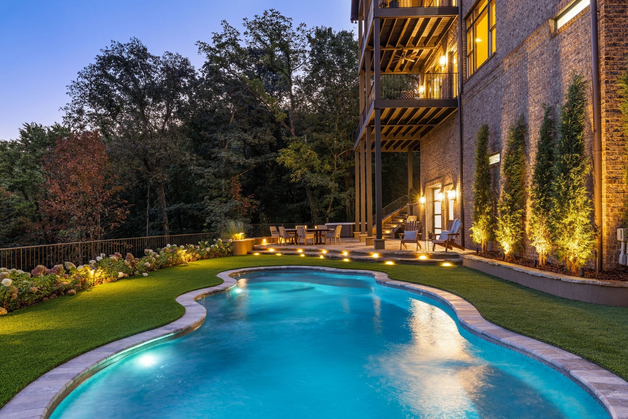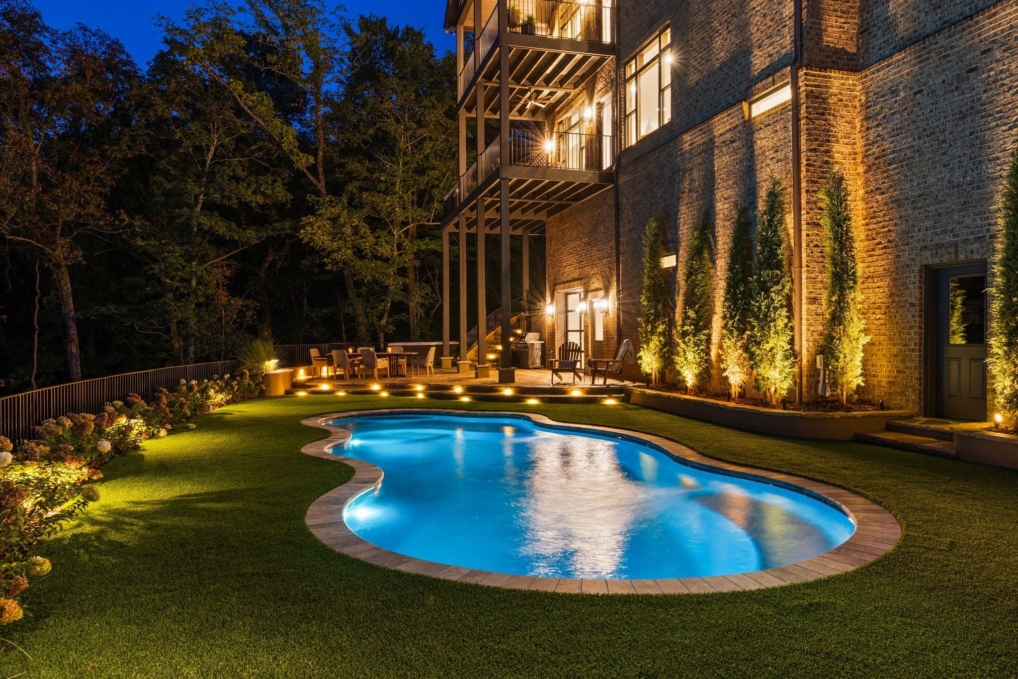 Nestled within the treasure of unexpected, hidden hills in Williamson County, this custom estate rests at the peak of highly sought-after Burke Hollow Road, unfolding across over eight acres of beautiful Tennessee landscape. It offers the charm of a private mountain lodge with the elegance of a luxury retreat- inspired by the timeless beauty of the Grove Park Inn. From its elevated vantage point, enjoy sweeping, unobstructed views, including Music City’s distant lights, creating a setting that feels both peaceful and extraordinary. Here, grandeur is defined by the way the home lives—flowing effortlessly with its breathtaking surroundings, so deeply connected to the natural landscape that it feels as though it has no end. Across three levels of living, you’ll find four bedrooms and four and a half baths, where thoughtful design meets everyday comfort. The main level showcases an expansive covered and uncovered wraparound deck off the kitchen and living room—perfect for entertaining large gatherings or enjoying retreat-like seclusion with panoramic views. The lower level impresses with soaring ceilings over grand living and dining areas, recreational spaces, full bath and secondary laundry, with adjoining oversized 2-car garage- all seamlessly connecting to multiple natural stone patios, heated resort-style pool, and hot tub. An entertainer’s dream that effortlessly blends luxury indoor and outdoor living. Upstairs, the primary suite opens to a private covered deck, a tranquil perch for quiet mornings or sunset views. On Independence Day, the property transforms into its own celebration, as fireworks spanning multiple towns and counties illuminate the horizon—an unrivaled experience from your private hillside haven. Whether envisioned as a personal, secluded estate or luxury Airbnb, this property embodies refined Tennessee living—where craftsmanship, comfort, and natural beauty meet in perfect harmony.
