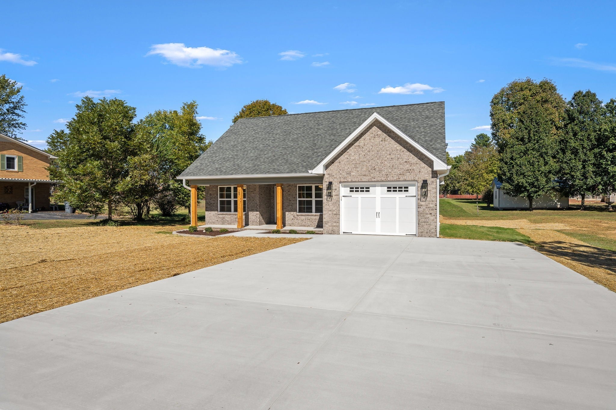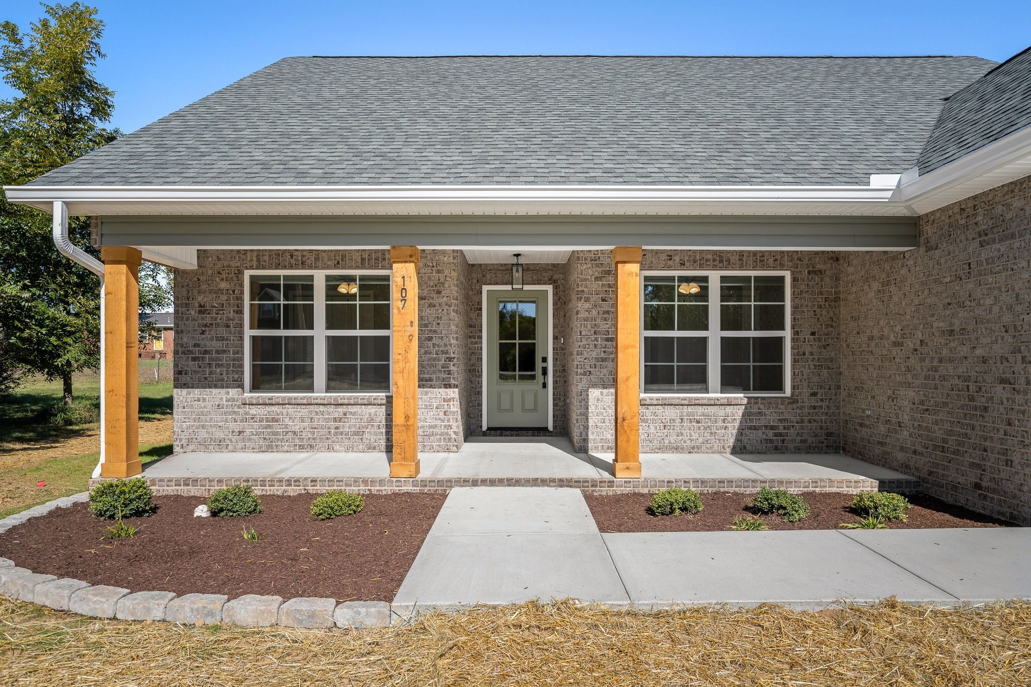 All brick, one level 3 bdrm, 2 bath, 1,260 sqft home in a quiet, established neighborhood close to everything. Upgrades inside and out including quartz countertops with soft close cabinets in the kitchen and bathrooms, as well as a gas range in the kitchen. Deep, single basin kitchen sink, stainless appliances, luxury vinyl plank hardwood flooring throughout (NO CARPET), and a double vanity in the primary bath. Open concept main living area, neutral paint throughout, ceiling fans in all bedrooms, recessed lighting, black hardware, gorgeous window pane front door and garage door. Oversized concrete driveway, covered front porch with beautiful stained wood posts and back concrete patio, gas hot water heater and gas HVAC. Come experience the difference. You will not be disappointed. See you soon!
