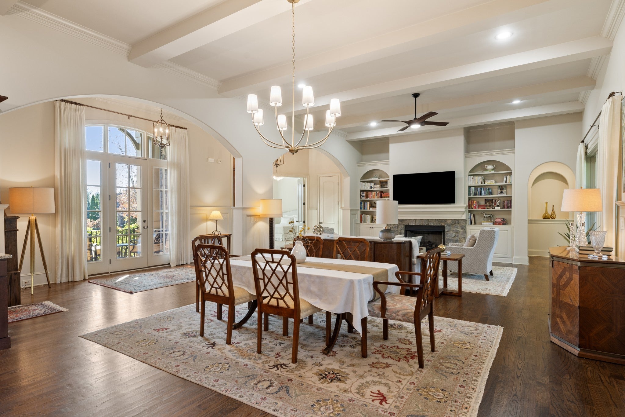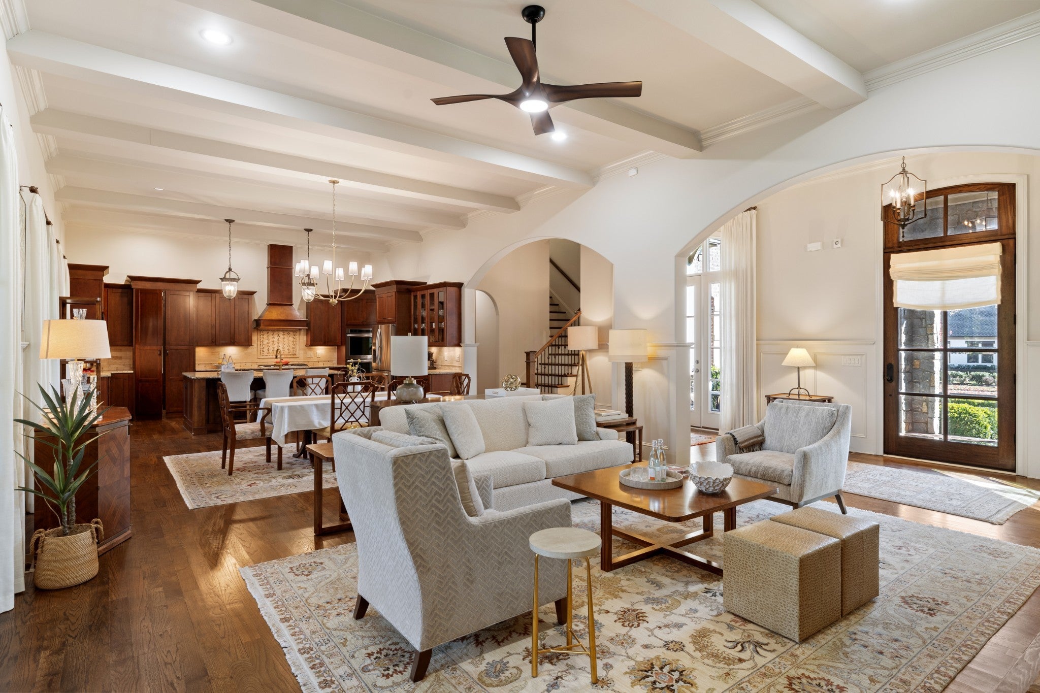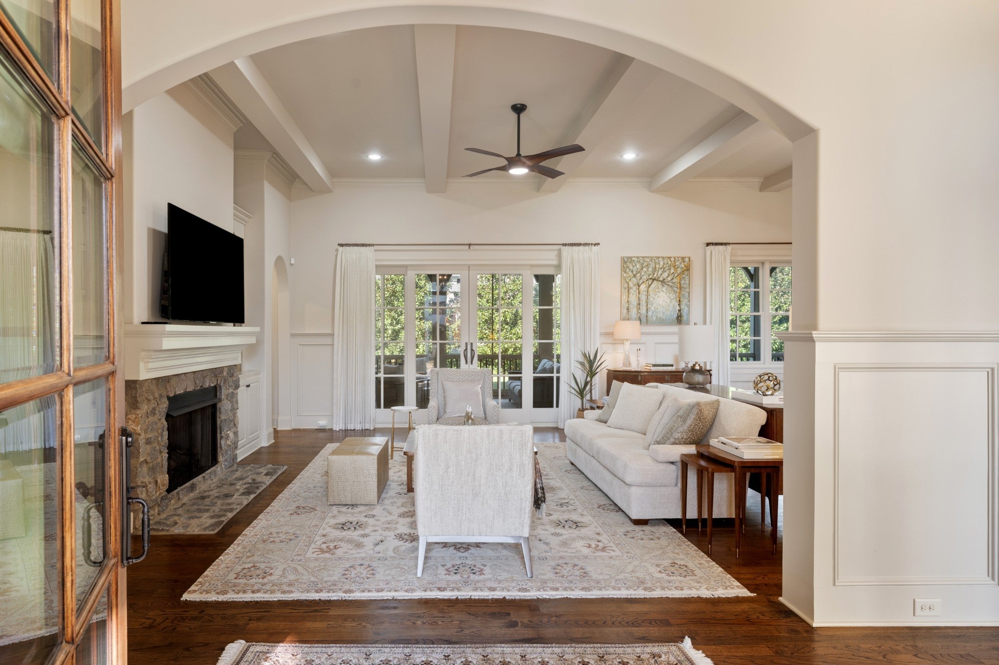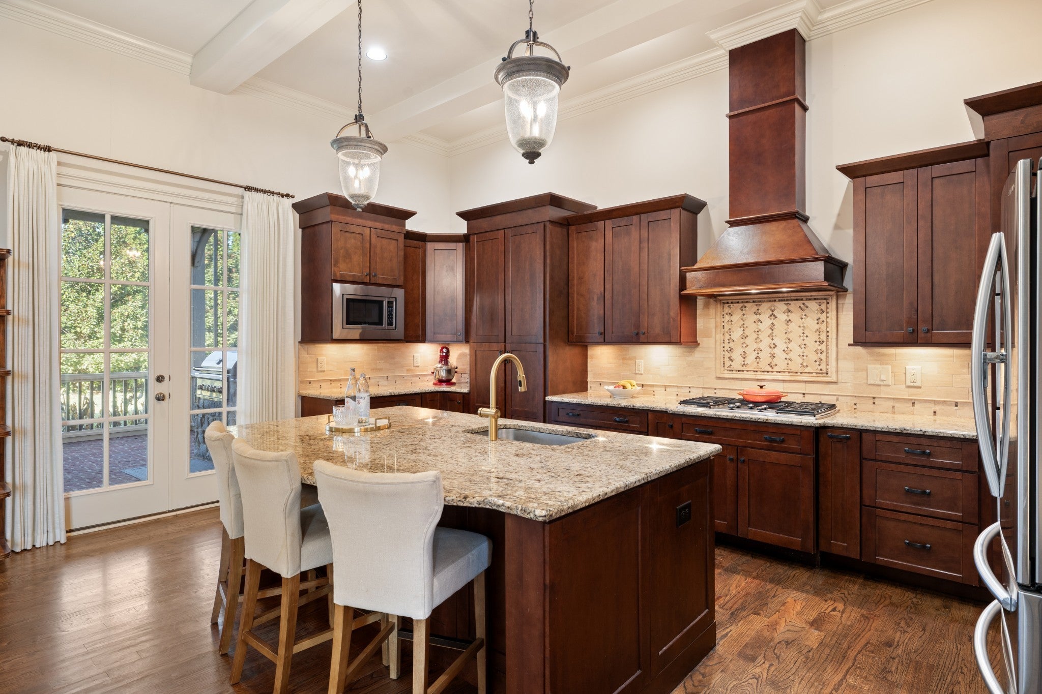 Luxury living in the Grove, the premier private-club community in the Nashville area! This elegant home features an open floorplan with 12-foot ceilings, arched doorways, custom windows & doors, hardwood flooring, exceptional craftmanship throughout. The gourmet kitchen leads to an expansive outdoor screen-enclosed patio featuring a stone fireplace, large TV screen, and top-of-the line built-in stainless gas grill. The home has 3 bedrooms & 3.5 baths on the main level including a spacious master suite with cathedral ceiling, large windows, ensuite spa-like bath with separate vanities and walk-in closets. A spacious suite upstairs includes a bonus room or additional bedroom with full bath. Mature landscaping, 3-car garage. Some of the extraordinary perks of living in the Grove are a Greg Norman designed golf course, fine dining, full-service spa, two recreational areas, fitness center, two competition-style lap pools, tennis & pickleball courts, scenic trails, & equestrian facilities.