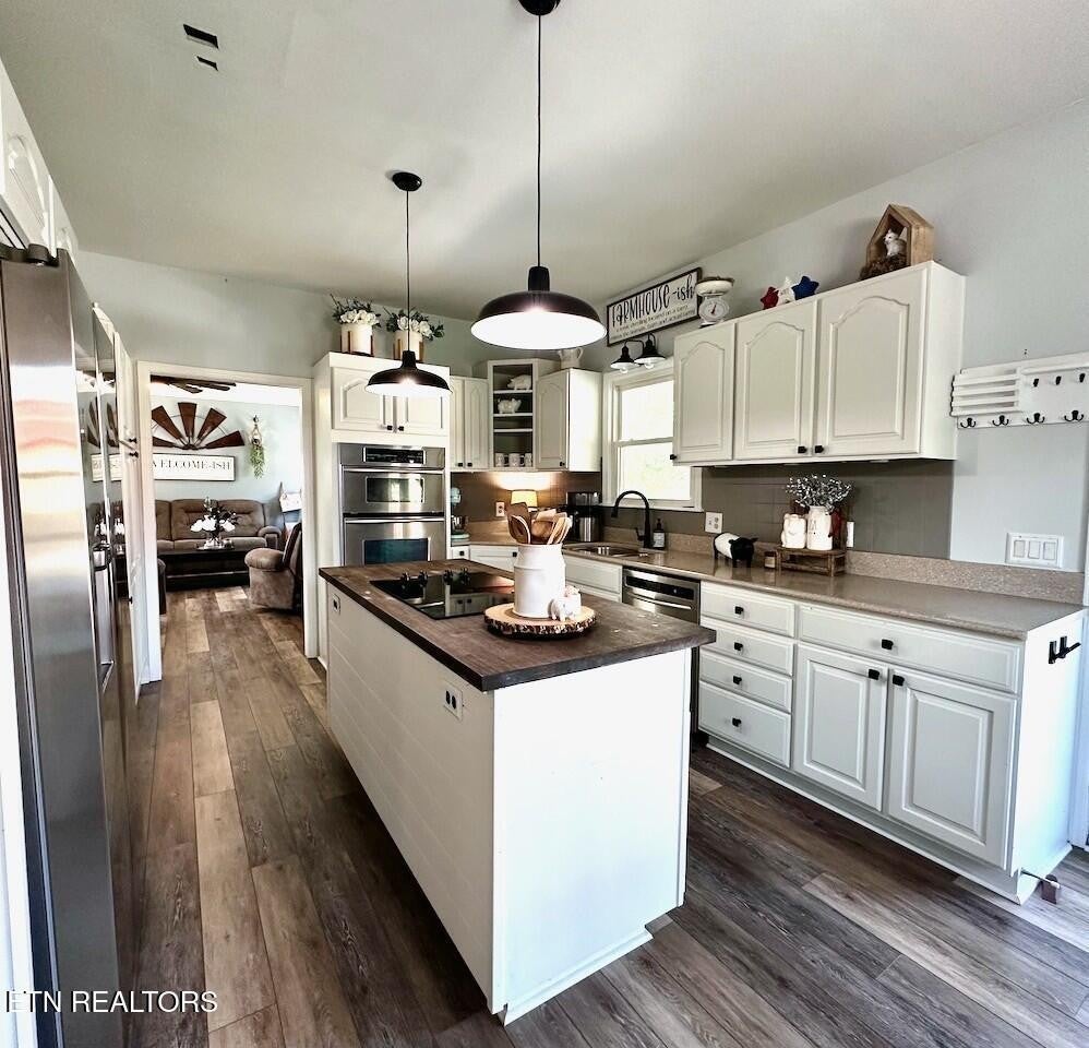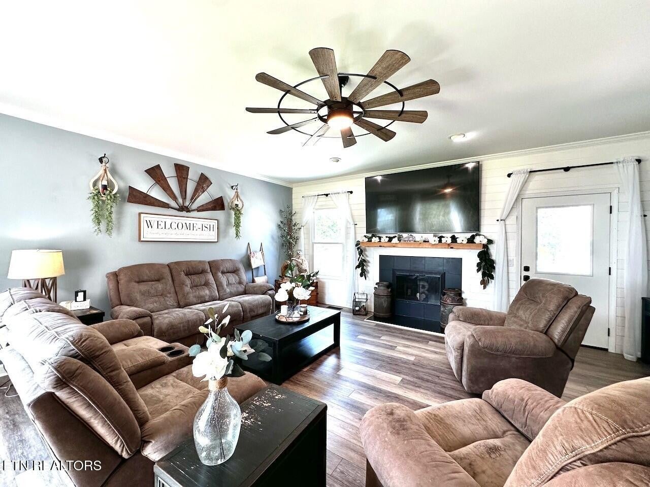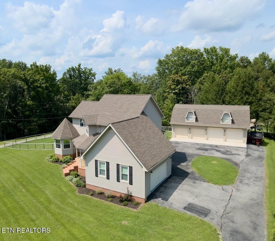 ***STUNNING LAKEFRONT RETREAT*** less than a mile from Hurricane Marina. Experience breathtaking views of Center Hill Lake from this gorgeous home, perfectly situated on a spacious level lot. Thoughtfully upgraded, this home offers modern comforts & elegant finishes throughout. Brand new windows & screens installed from Renewal by Anderson, which carry a transferrable lifetime warranty. The Gourmet Kitchen is a chef's dream, featuring an Electric Cooktop on a Central Island, Oven, Convection Microwave, Refrigerator & Dishwasher. The luxurious Primary Suite boasts a bathroom w/ Double Vanities, large glass-enclosed tiled Shower and an expansive Walk-In Closet. 2 Guest Bedrooms upstairs share a Full Bath. The finished Basement provides endless possibilities - ideal for a Man-Cave w/ an extra room used as a Hobby Room or additional storage. Car enthusiasts & hobbyists will love not only the attached 2-Car Garage, but also the detached 4-Car Garage for your Boat or RV. Don't miss the opportunity to own this stunning lake home w/ unparalleled views & exceptional amenities! Check out Ariel Video in the Link's Section below.