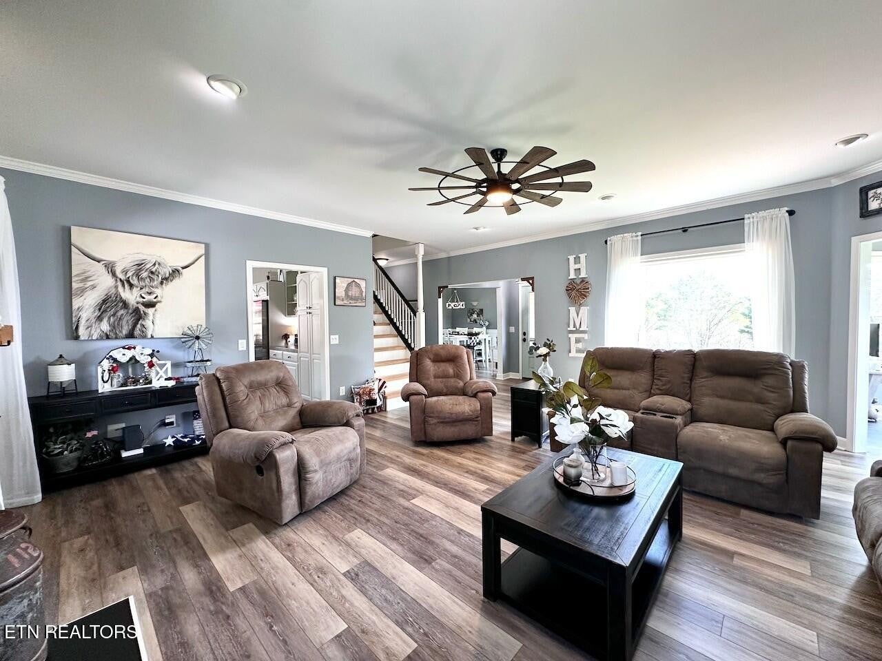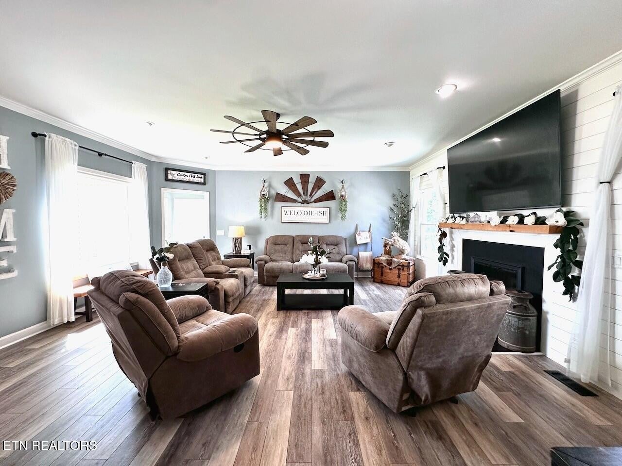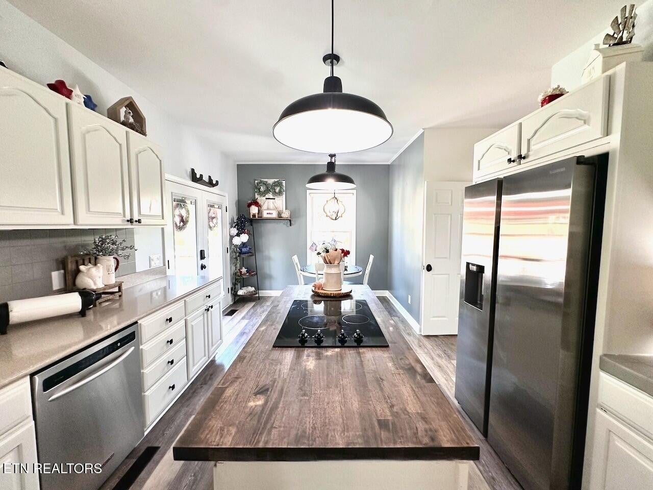 ***STUNNING LAKEFRONT RETREAT*** less than a mile from Hurricane Marina. Experience breathtaking views of Center Hill Lake from this gorgeous home, perfectly situated on a spacious level lot. Thoughtfully upgraded, this home offers modern comforts & elegant finishes throughout. Brand new windows & screens installed from Renewal by Anderson, which carry a transferrable lifetime warranty. The Gourmet Kitchen is a chef's dream, featuring an Electric Cooktop on a Central Island, Oven, Convection Microwave, Refrigerator & Dishwasher. The luxurious Primary Suite boasts a bathroom w/ Double Vanities, large glass-enclosed tiled Shower and an expansive Walk-In Closet. 2 Guest Bedrooms upstairs share a Full Bath. The finished Basement provides endless possibilities - ideal for a Man-Cave w/ an extra room used as a Hobby Room or additional storage. Car enthusiasts & hobbyists will love not only the attached 2-Car Garage, but also the detached 4-Car Garage for your Boat or RV. Don't miss the opportunity to own this stunning lake home w/ unparalleled views & exceptional amenities! Check out Ariel Video in the Link's Section below.