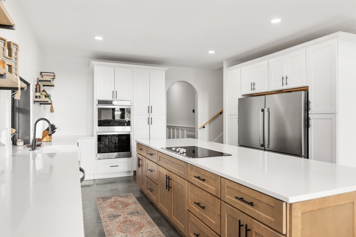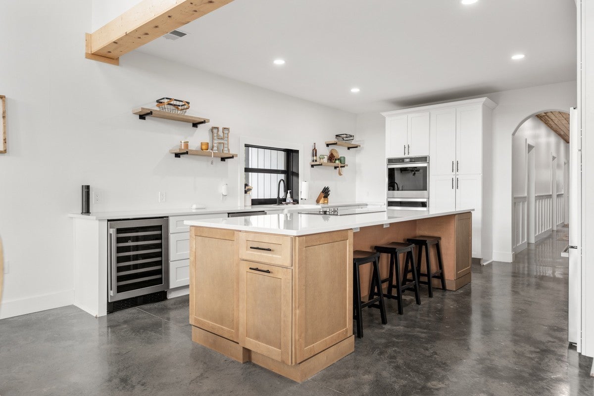 Experience the perfect blend of luxury and tranquility on this stunning property featuring over 30 acres of rolling countryside. This modern home showcases an open-concept design with soaring wood ceilings in both the great room and primary suite, a cozy gas fireplace in the living room, and an electric fireplace in the primary bedroom. Huge windows throughout flood the home with natural light and frame picturesque views. The chef’s kitchen is a dream with quartz countertops, double ovens, a farmhouse sink, a spacious island, and a convenient butler’s pantry. The primary suite offers a spa-like retreat complete with a walk-in tile shower and separate soaking tub. Step outside to enjoy peaceful mornings by the pond and breathtaking sunsets across your private acreage. With its combination of contemporary design, high-end finishes, and serene surroundings, this property offers the perfect private escape—just minutes from town.