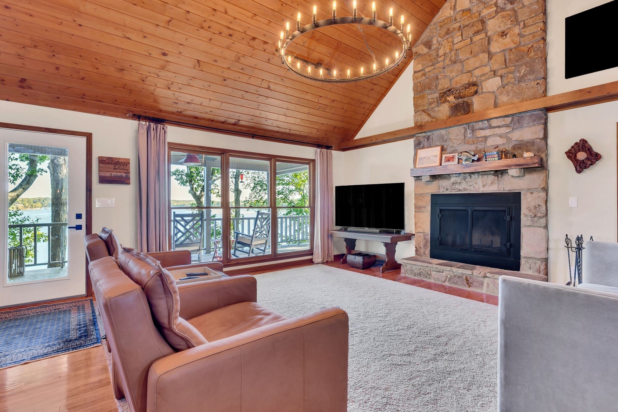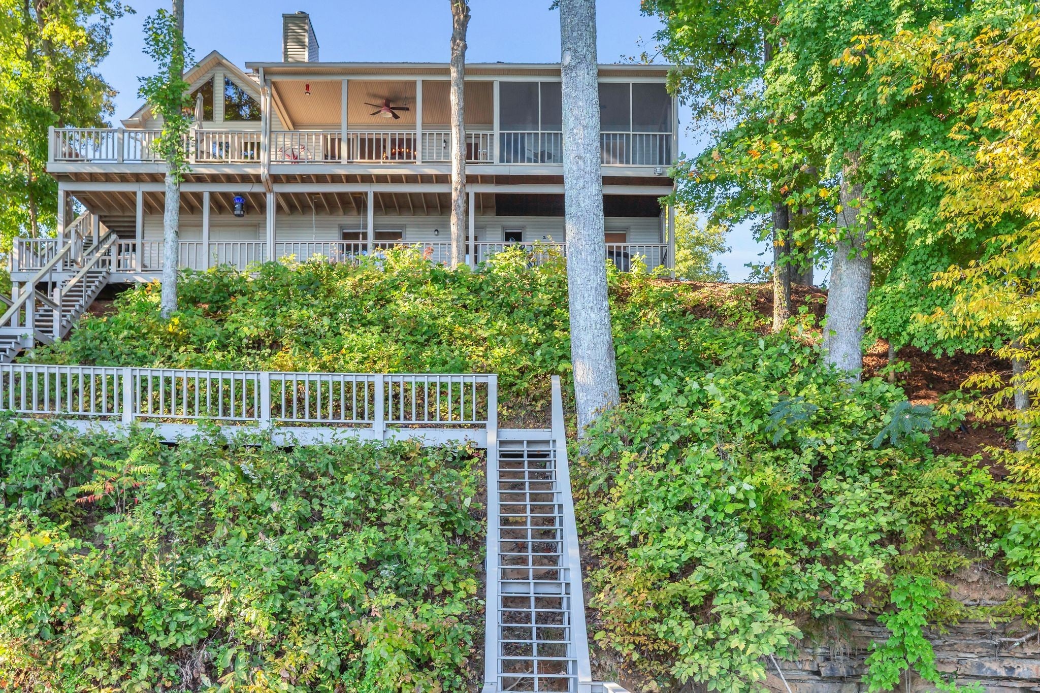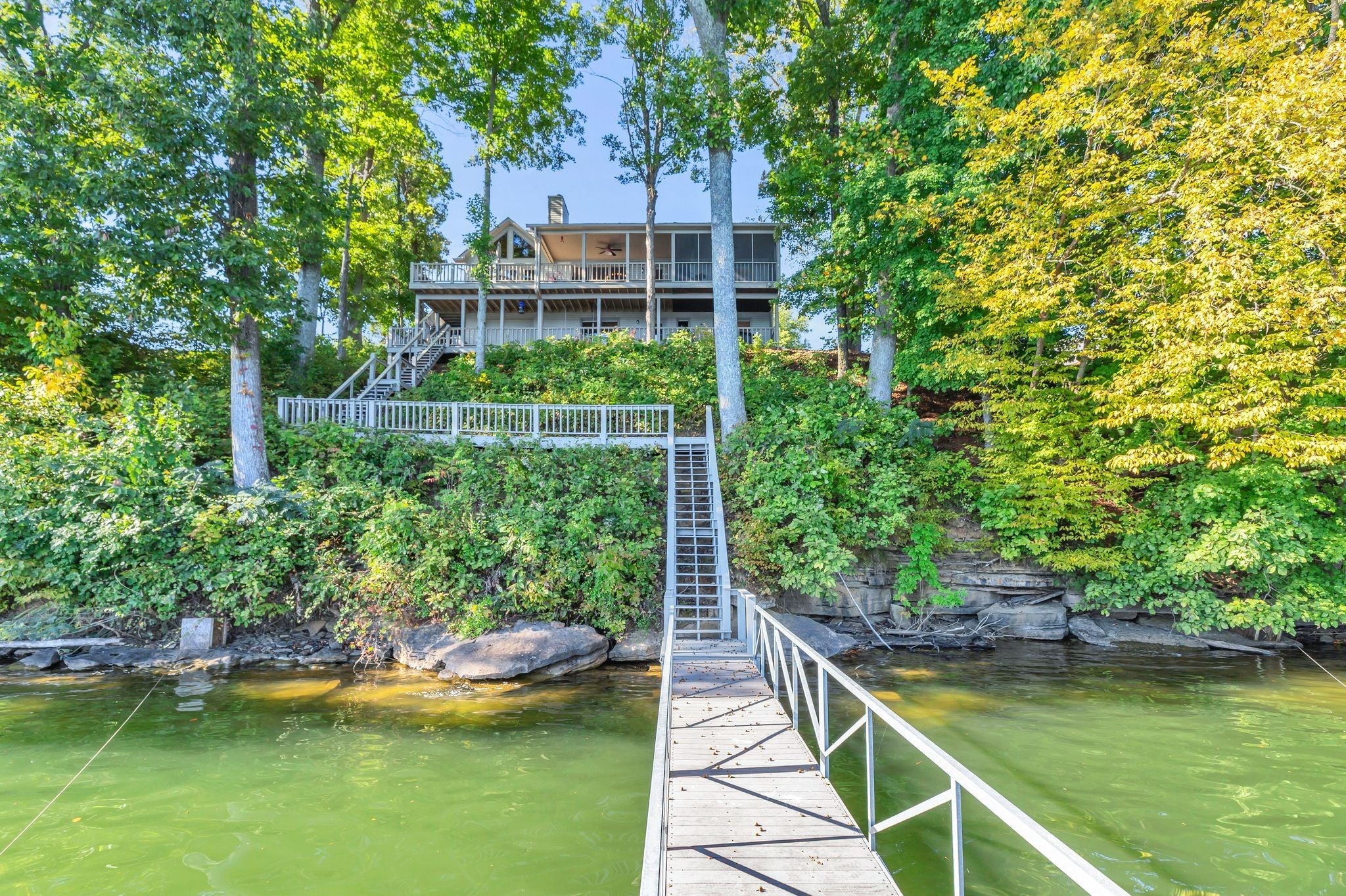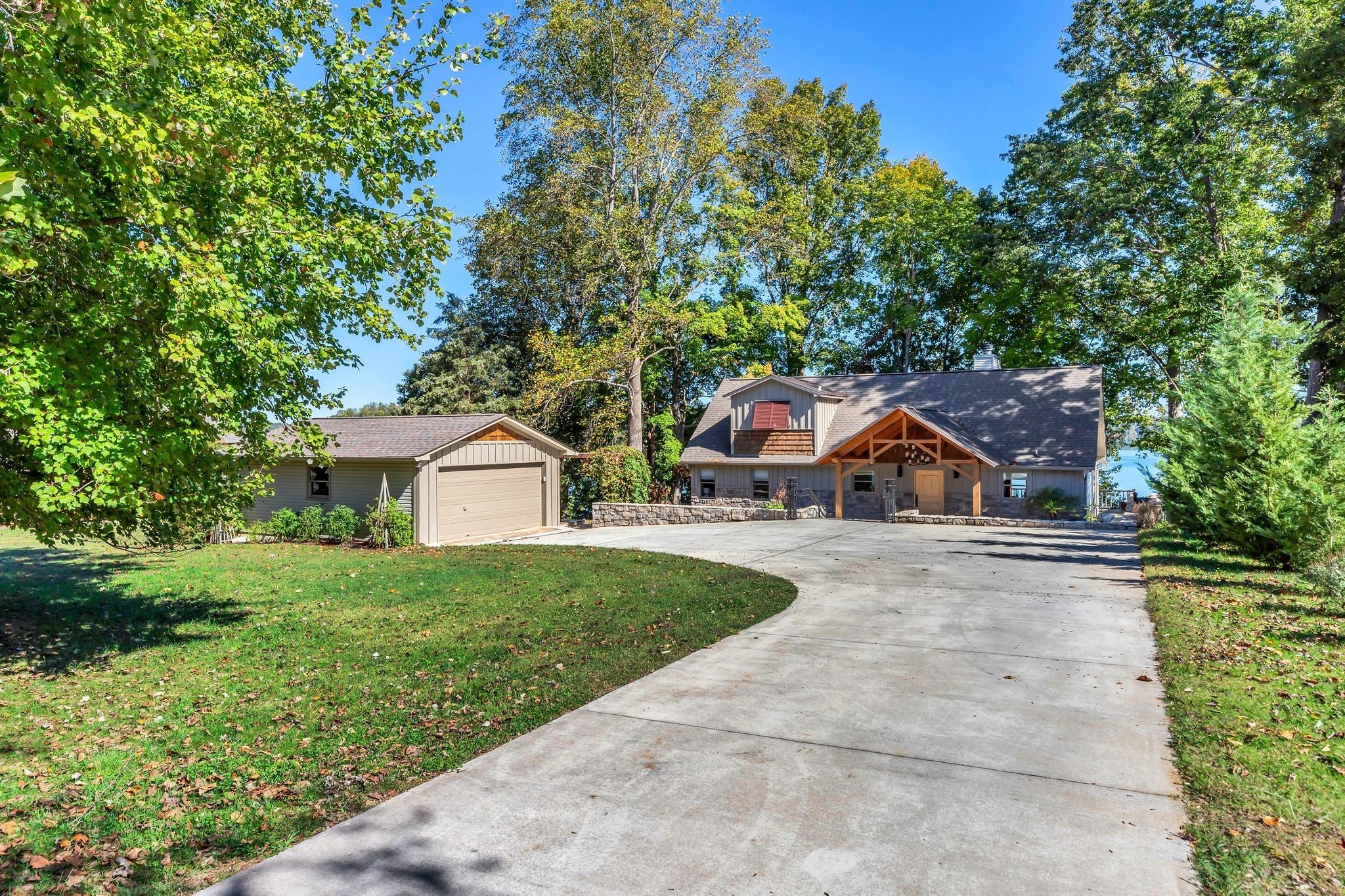 Beautiful home in Hopkins Point Sub. - Div. Lots of glass for breathtaking views of Tims Ford Lake. Year-round water, w/covered dock on property. This home offers stone entrance w/space for entertaining, top of the line appliances in kitchen w/lots of cabinet space. Wood, tile, carpet floors thru out the home. Living room w/wood burning fireplace, 4BR's/3BA's, 2 car-garage. Screen in back porch & deck for setting and enjoying the views. Downstairs a large rec room for entertaining/game room.