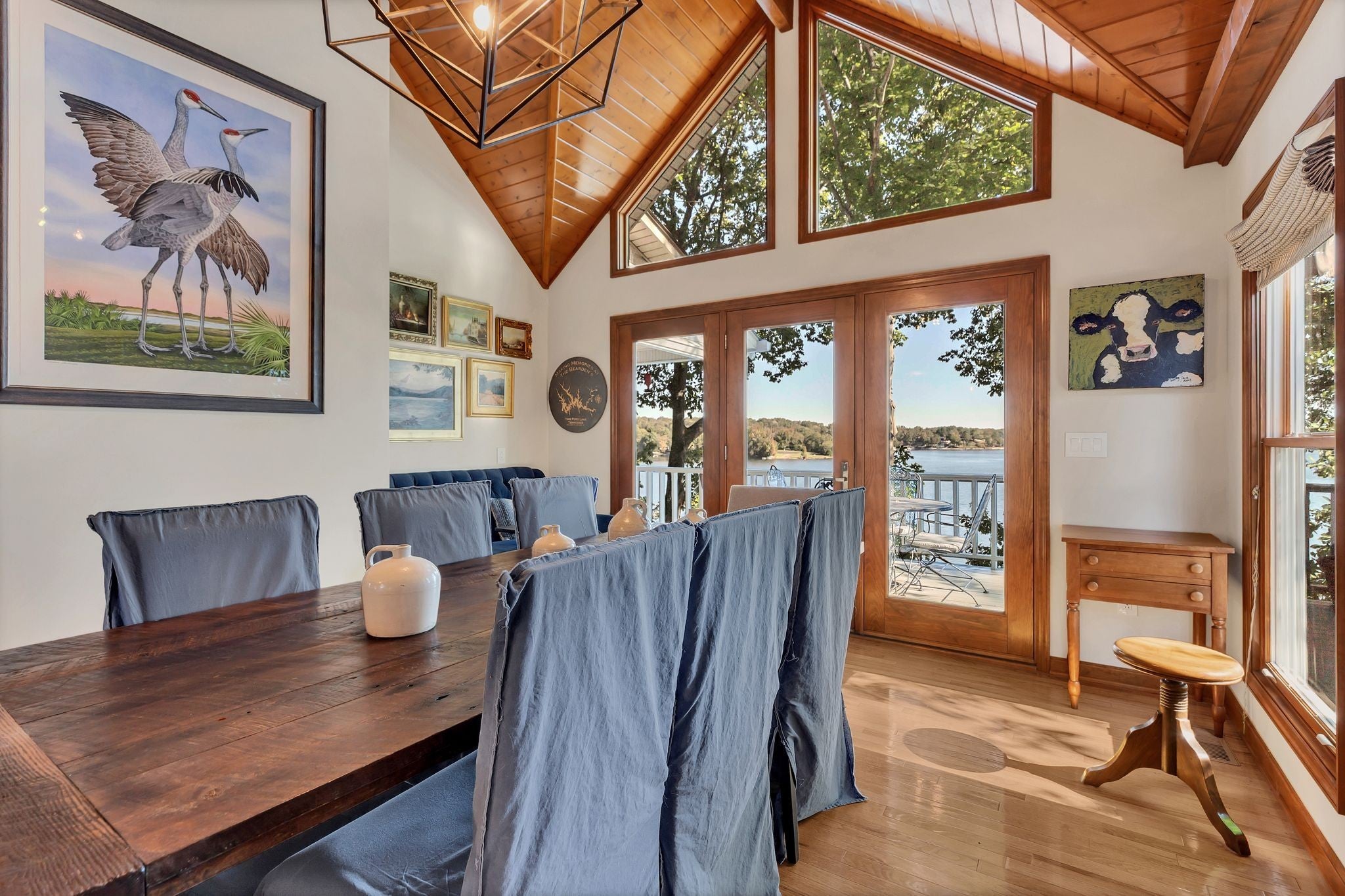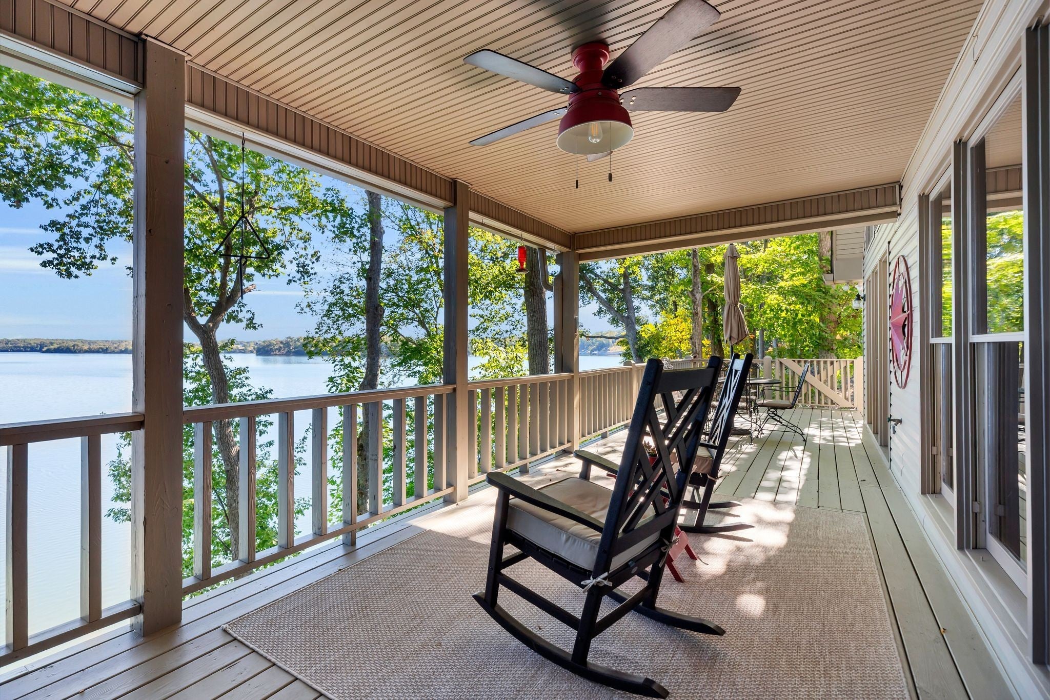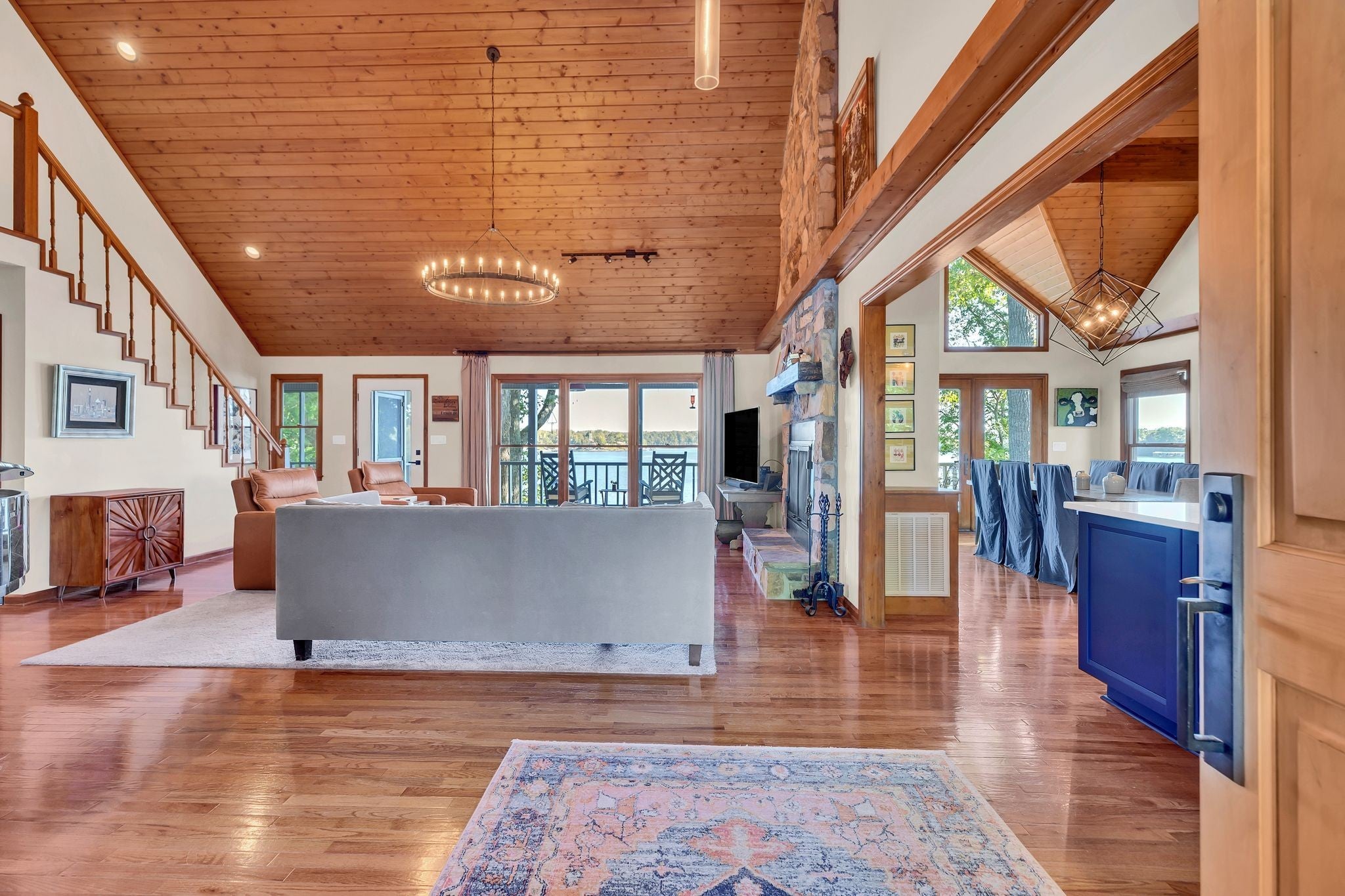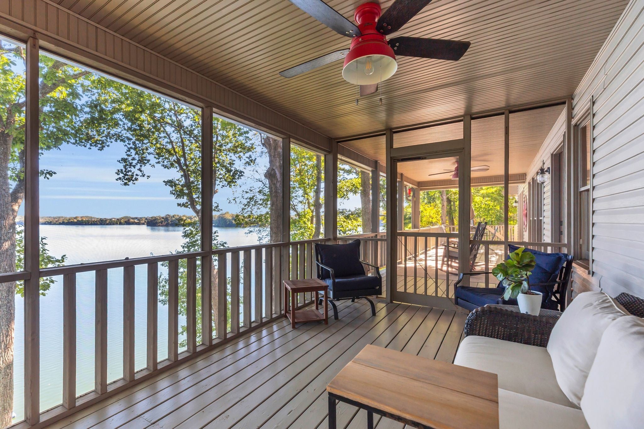 Beautiful home in Hopkins Point Sub. - Div. Lots of glass for breathtaking views of Tims Ford Lake. Year-round water, w/covered dock on property. This home offers stone entrance w/space for entertaining, top of the line appliances in kitchen w/lots of cabinet space. Wood, tile, carpet floors thru out the home. Living room w/wood burning fireplace, 4BR's/3BA's, 2 car-garage. Screen in back porch & deck for setting and enjoying the views. Downstairs a large rec room for entertaining/game room.
