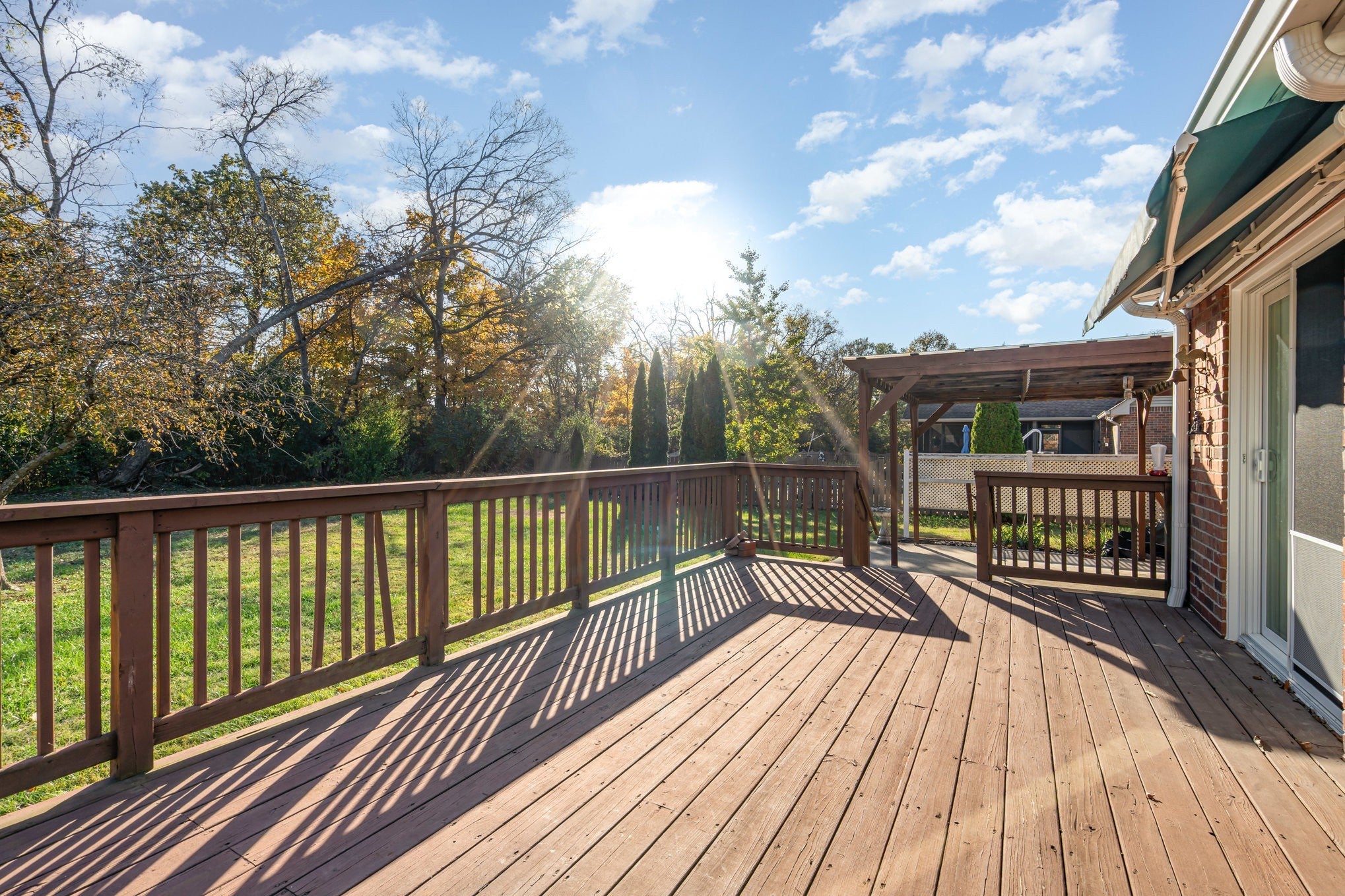 BEAUTIFUL GRANDVIEW ESTATES HOME ON A SPACIOUS LOT Welcome to this lovely 3 bed, 2 bath home offering a split layout with bonus room upstairs. This home has a formal living area with a fireplace, opening to the formal dining room. The kitchen features solid surface countertops, tiled backsplash and an eat-in kitchen with a gorgeous view of the large back yard. The primary suite has a large tiled bathroom with separate tub and shower and double vanities. There is a spacious bonus room upstairs, perfect for use as an office, movie room or a guest room. Enjoy the sitting or entertaining on the back deck or patio. The home also features a storm shelter in the garage! This home has been meticulously maintained, from the landscaping to the interior.