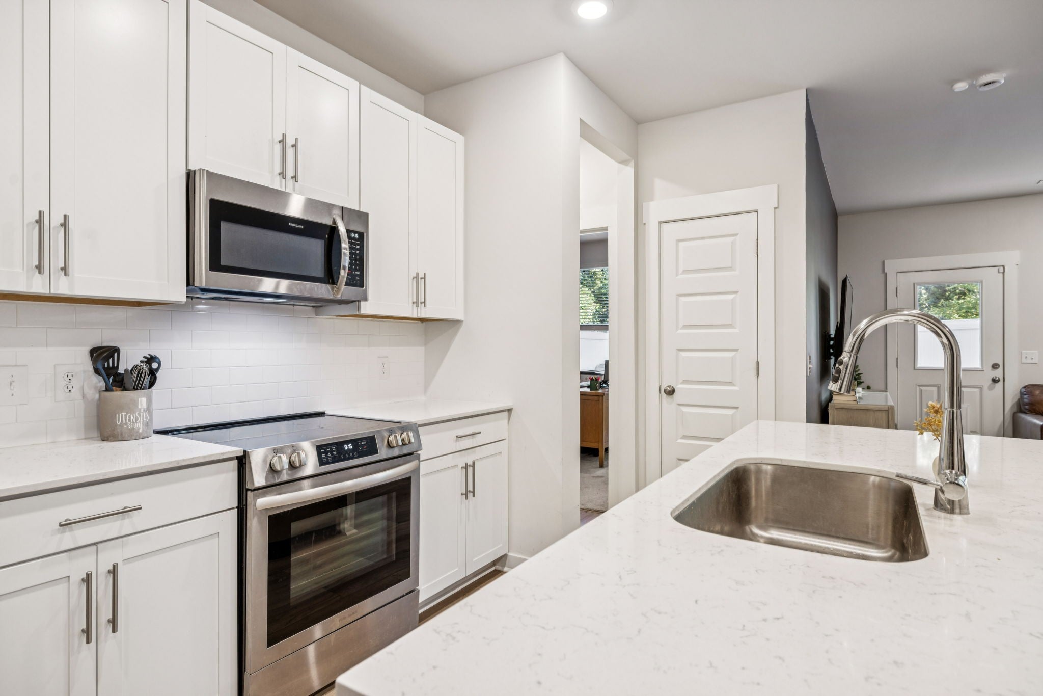 - Electric Oven, Electric Range, Dishwasher, Disposal, Microwave, Stainless Steel Appliance(s)