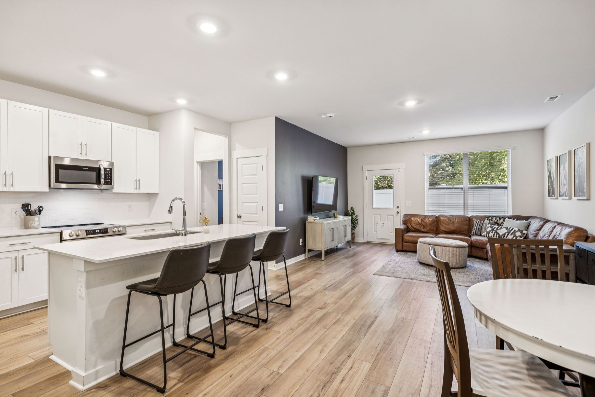 Welcome to 2042 Township Lane, where convenience and charm converge in the highly desirable Harmony Hills neighborhood. Just off I-65, this 4-bedroom, 3-bath home offers effortless access to Nashville, Cool Springs, and the heart of Franklin. Inside, you'll find a bright, open-concept layout designed for modern living. The kitchen is a showstopper—white shaker cabinetry, quartz countertops, stainless steel appliances, and a central island perfect for casual meals or entertaining. A versatile main-level bedroom offers the perfect space for overnight guests or a quiet home office. Upstairs, the spacious owner’s suite features a luxurious en-suite bath and oversized walk-in closet. Two additional bedrooms provide flexibility for guests, kids, or a home office, while the bonus room is ideal for movie nights, playtime, or creative pursuits. Step outside to a private enclosed backyard with a patio and grill-ready setup as well as grass turf—great for pets, play, and weekend gatherings. The community includes lawn care and trash service, making life here refreshingly low maintenance. Ideally located just minutes from top-rated schools, shopping, and business centers—with easy access to Cool Springs Mall, historic downtown Franklin as well as I-65 for an easy trip to all that Nashville has to offer, this location puts everything within reach.