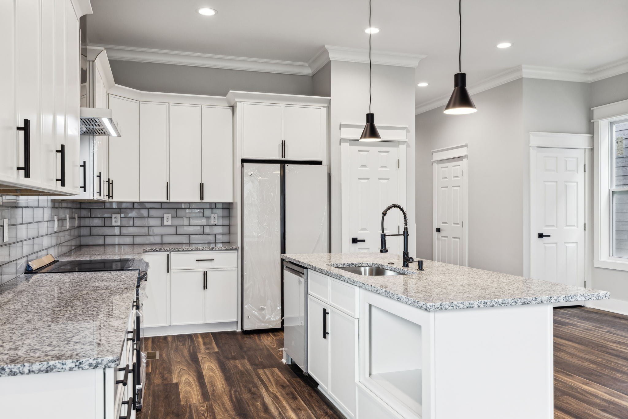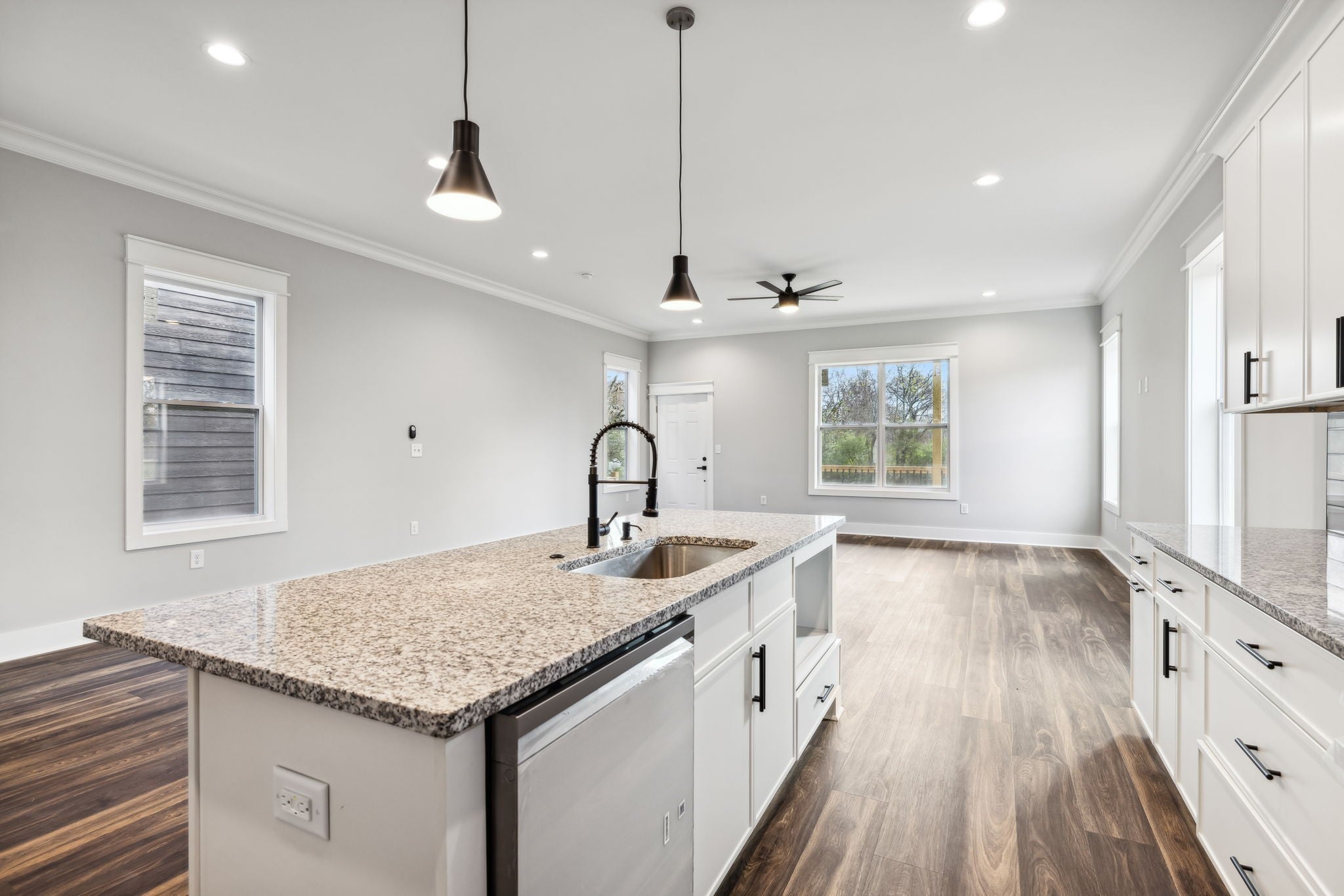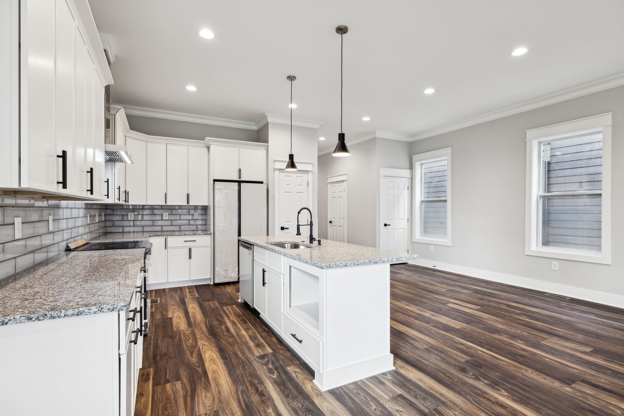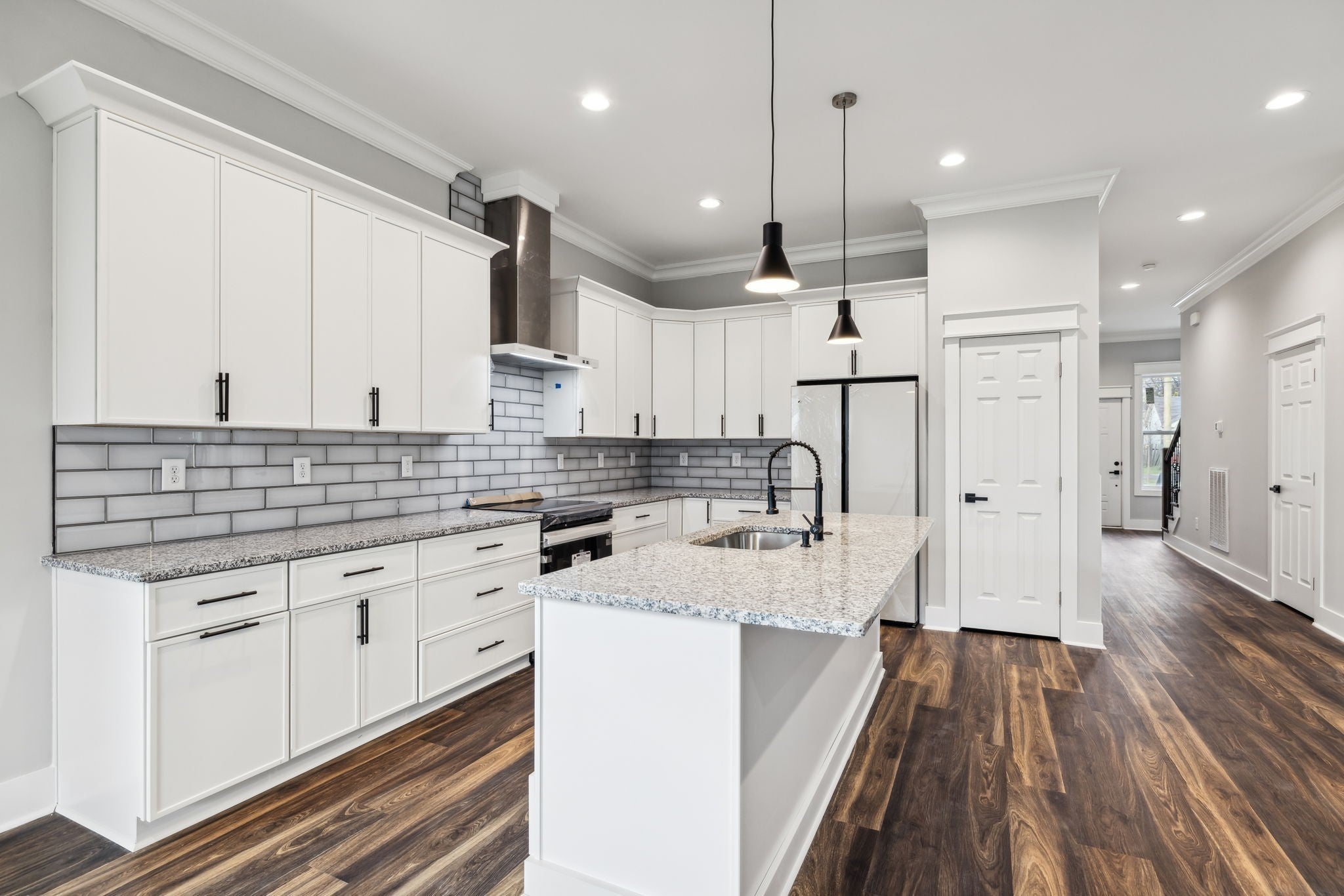 Single family home new construction in a prime location. Plenty of room for all in this 4 bedroom / 3 full bath home featuring 10-foot ceilings, LVP flooring throughout, incredible kitchen with island, granite, designer tile backsplash with white glass & stainless steel "smart" appliances. Oversized family room opens to a 22 x 12 covered deck overlooking large rear yard. The main level ensuite guest room offers a walk-in closet & is a perfect flex room for a home office. Upper-level primary suite includes an enclosed tub and shower wet area, double sinks along with a huge walk-in closet, plus an additional outdoor living space accessed off the rear of the bedroom. Secondary bedrooms off full ceramic baths and custom closets. Laundry room with sink and ample room for your washer & dryer. All in a most convenient location only minutes from schools, parks, shopping, restaurants & only a short ride to Germantown, Nashville Sounds Stadium, East Bank development & Downtown Nashville FUN!