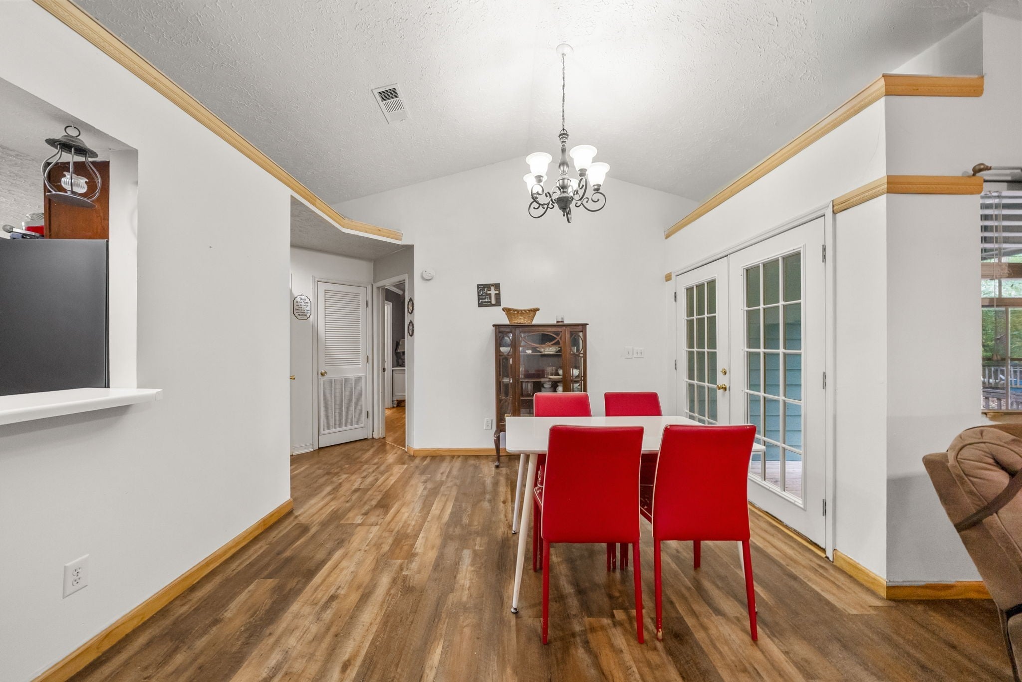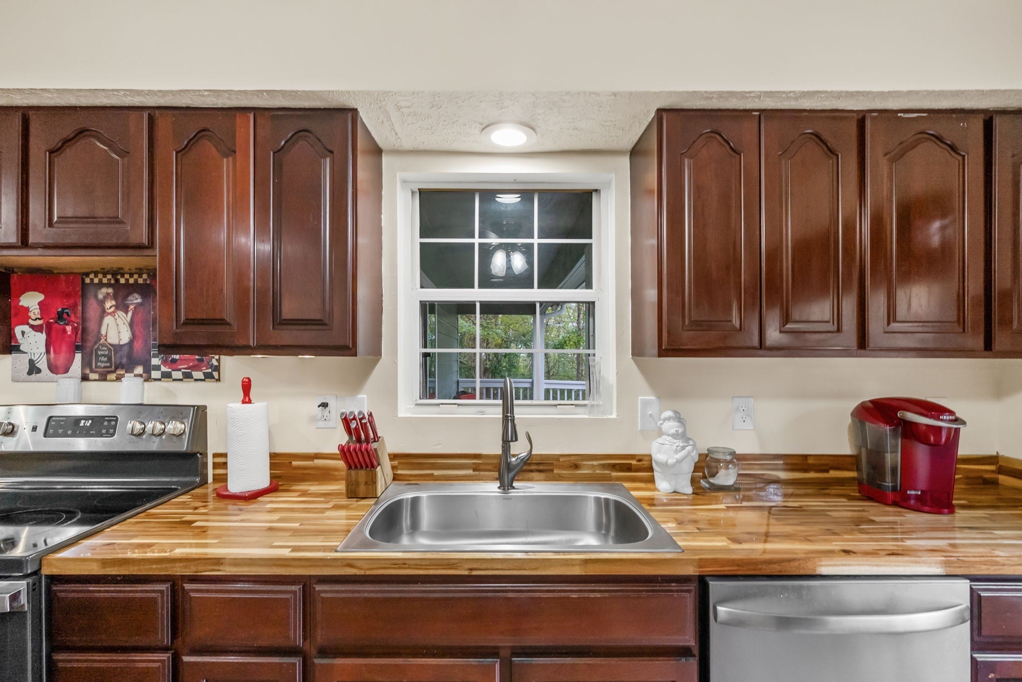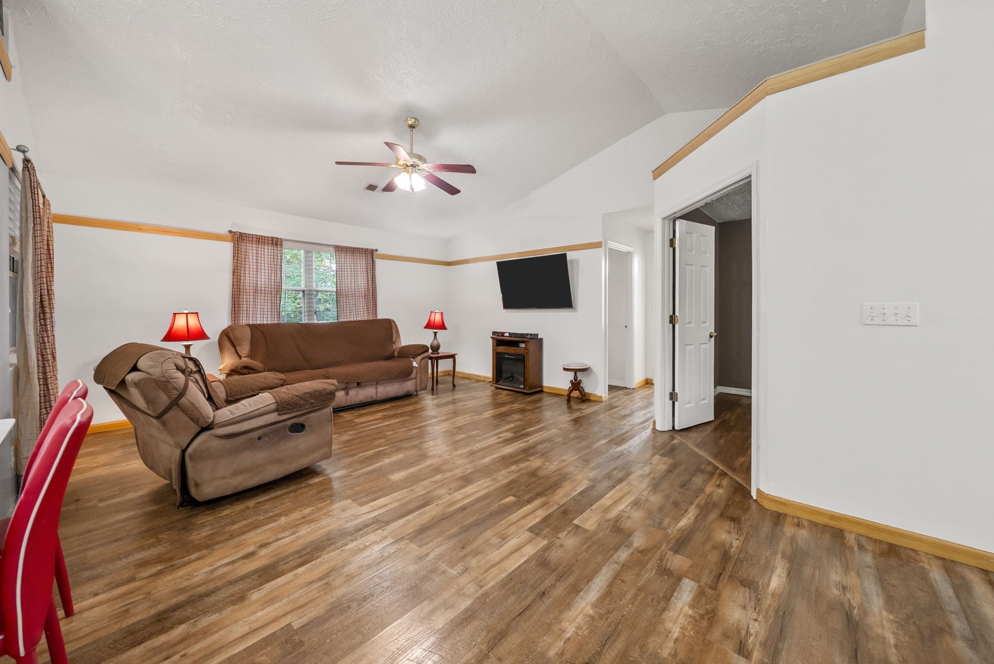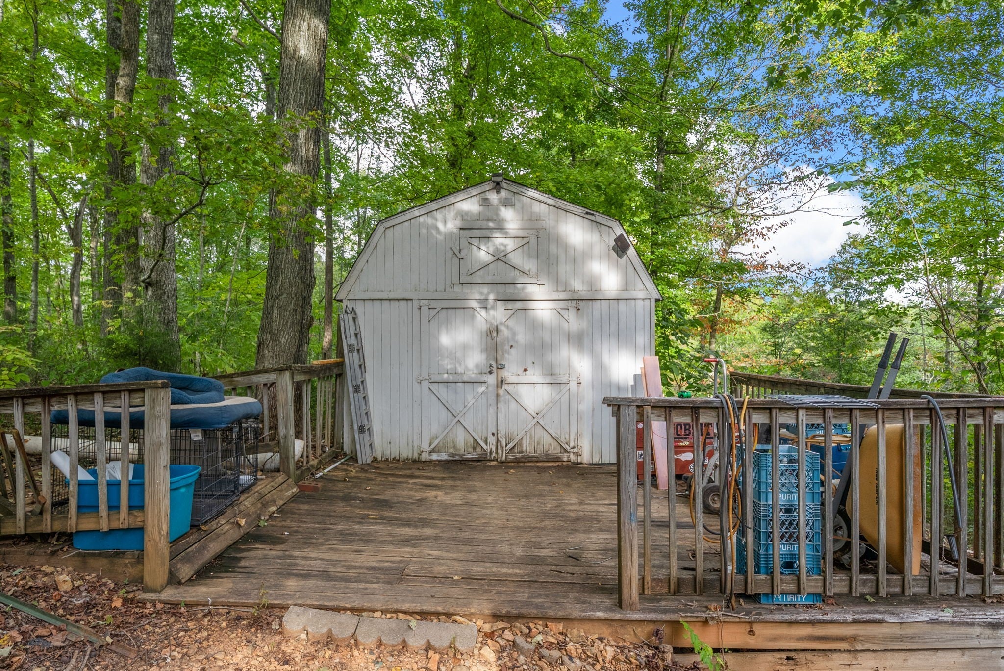 Nestled on a serene and secluded 3.4-acre wooded lot, this lovingly maintained one-story home offers the perfect blend of privacy, charm, and convenience. Built in 1997 and owned by the same family since, this property is move-in ready! Inside you will walk into tall ceilings in the open concept living and dining room, a warm and inviting kitchen featuring rich cherry wood cabinets and gorgeous butcher block countertops, and a primary bedroom with a spacious closet. Outside is a cozy patio, freshly stained back deck perfect for listening to the crickets, personal storage building, and a cleared trail through the woods! Major updates include the roof around 7 years old, HVAC/ductwork around 5 years old, and water heater/washer/dryer around 3 years old! All TV's convey as well! This home is a rare find for those seeking peace, space, and value! Motivated seller is offering buyer concessions! **This home is listed well below the current market value!** Don't miss an opportunity to purchase a home with equity!