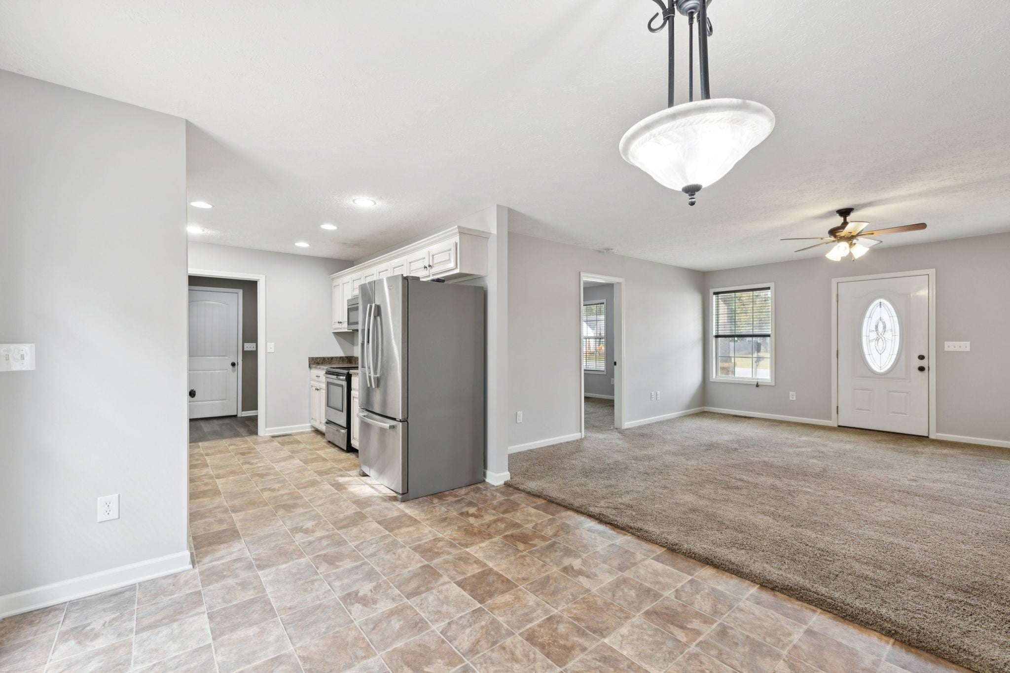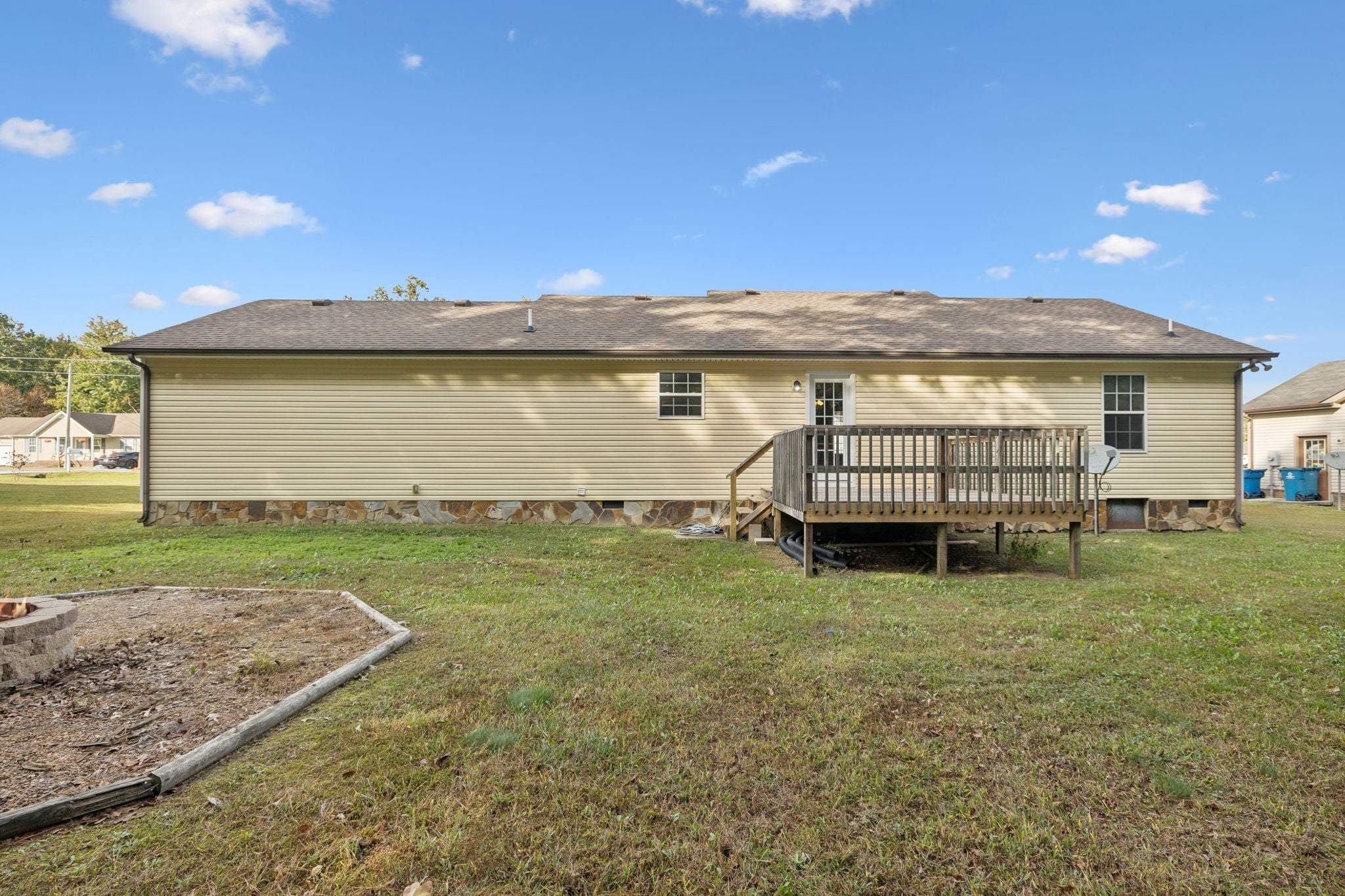 Located in the Indian Springs subdivision just west of downtown Manchester, this move-in-ready ranch offers convenient access to I-24 and sits nearly halfway between Nashville and Chattanooga. 538 Indian Springs Circle combines comfort, practicality, and freedom—with no HOA restrictions. A concrete drive leads to a two-car garage and landscaped front yard. The home’s exterior blends light yellow siding with stacked-stone accents and dark shutters. Inside, an open-concept living and dining area features fresh paint, neutral gray walls, and plush carpet. The galley-style kitchen offers off-white cabinets, a double sink overlooking the backyard, and a full suite of stainless appliances. Three bedrooms provide ample closet space and natural light, while two full baths include updated fixtures and tile accents. The laundry/mud room adds convenience with built-in cabinetry and shelving. Out back, enjoy a large yard with a deck and circular stone fire pit surrounded by mature trees. Situated on a quiet street near parks, restaurants, and shopping, this home delivers easy access to Manchester amenities and quick commutes via Exit 111 on I-24.