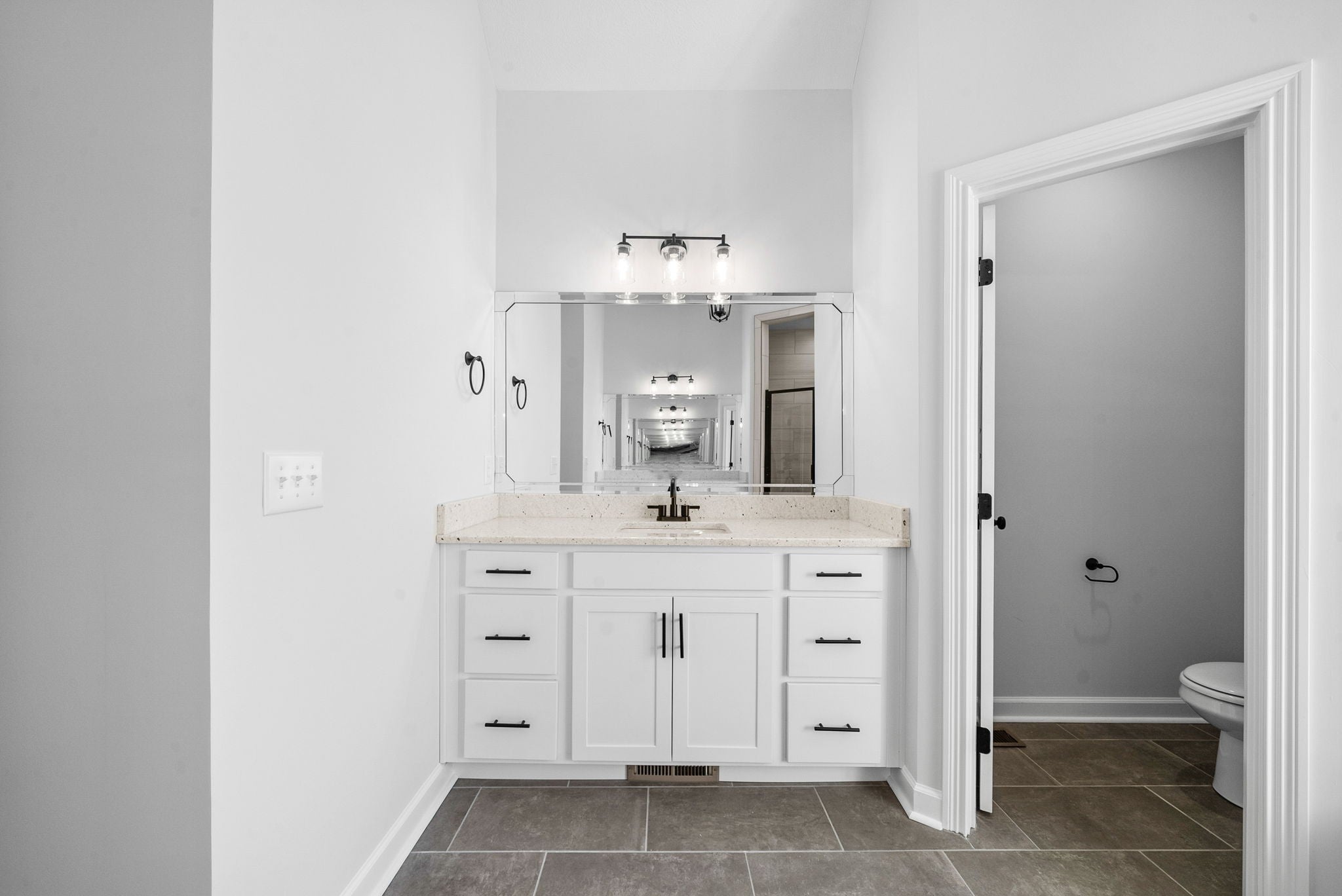 Located in the sought-after Kirkwood school district, this 4-bedroom, 3-bath home offers 2,650 sq. ft. of inviting living space with a thoughtful layout. Step inside to find soaring ceilings and an open flow designed for both comfort and style. The living room is centered around a fireplace, and the home also features a formal dining room. The kitchen is a true highlight with granite countertops, double oven, pantry, abundant cabinet storage, and a large eat-in area that overlooks the backyard. The primary suite provides a retreat with his-and-hers vanities, dual walk-in closets, and a spacious bath. A bonus room adds flexibility for a home office, media space, or playroom. Enjoy outdoor living on the covered back deck, ideal for relaxing or gatherings. With 3 full baths, ample storage, and a well-planned design, this home balances everyday function with timeless details.