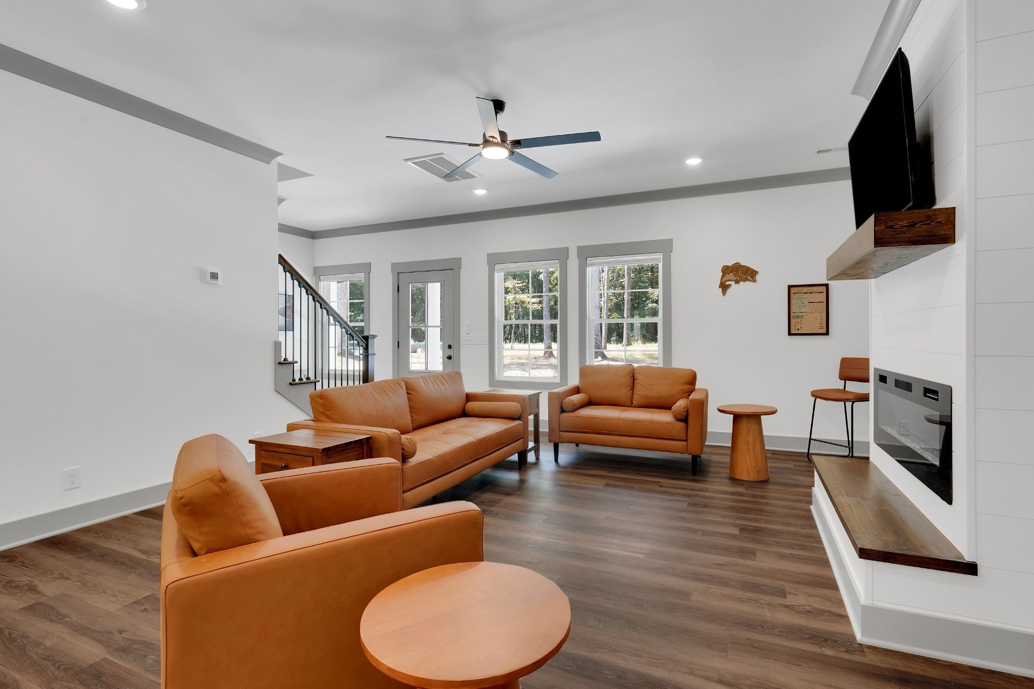 Like New Airbnb Near Tims Ford Lake. All Hardie Board/Batton and Stone. 1 mile from Pleasant Grove public access boat ramp- Beautiful Treed lot- 3 huge Bedrooms with 2 and a half baths. 750 square foot Heated and Cooled Garage-Luxury Vinyl Plank Flooring throughout. Fireplace w Ship lap- primary Suite with Walk In Tile Shower- Wonderful AirBnB Property-Garage can be used as extra entertaining space/playroom as it is also heated and cooled.Large covered rear Deck. Come see it, YOU'll Love it. Ready for immediate occupancy.