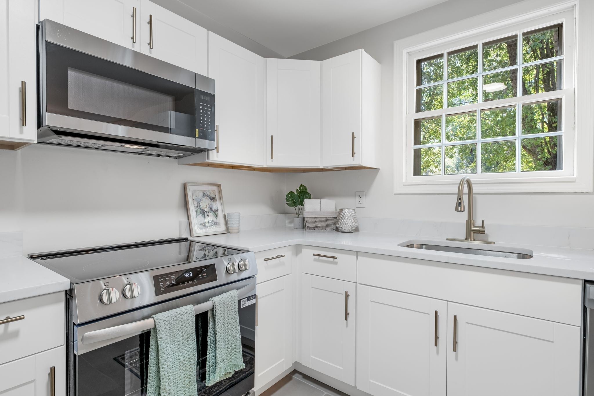 - Electric Oven, Electric Range, Dishwasher, Disposal, Dryer, Microwave, Refrigerator, Stainless Steel Appliance(s), Washer