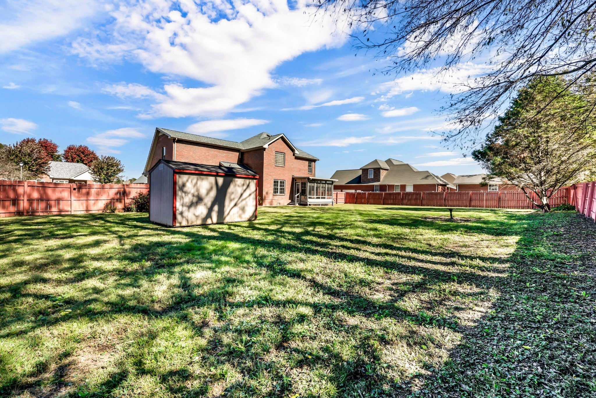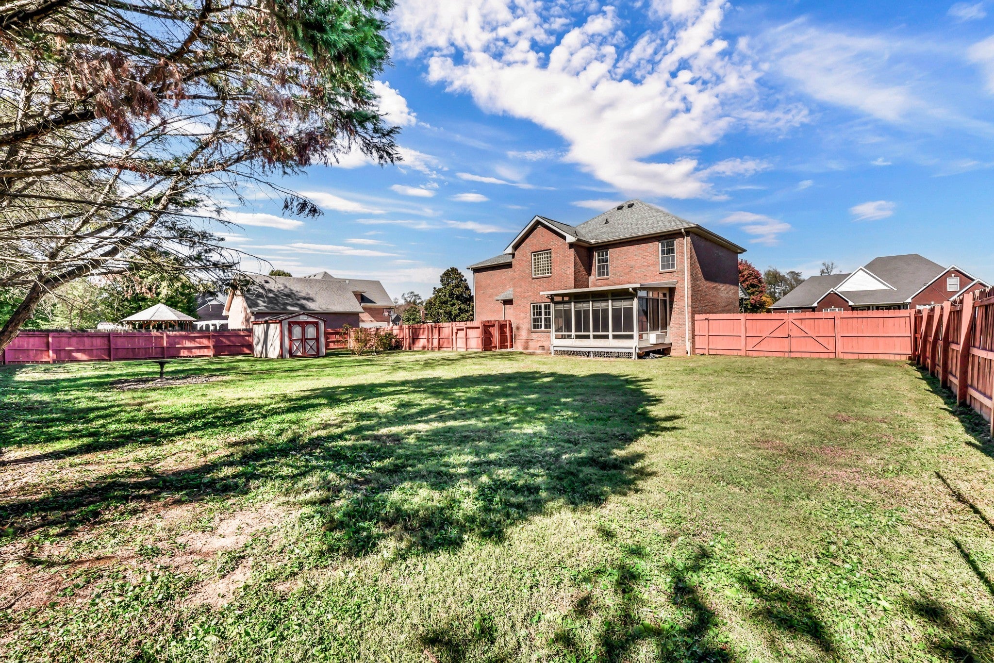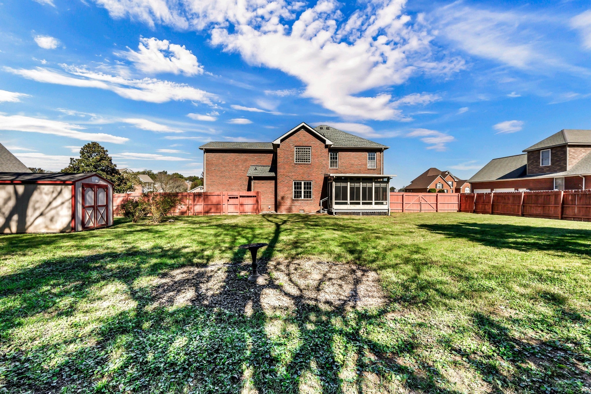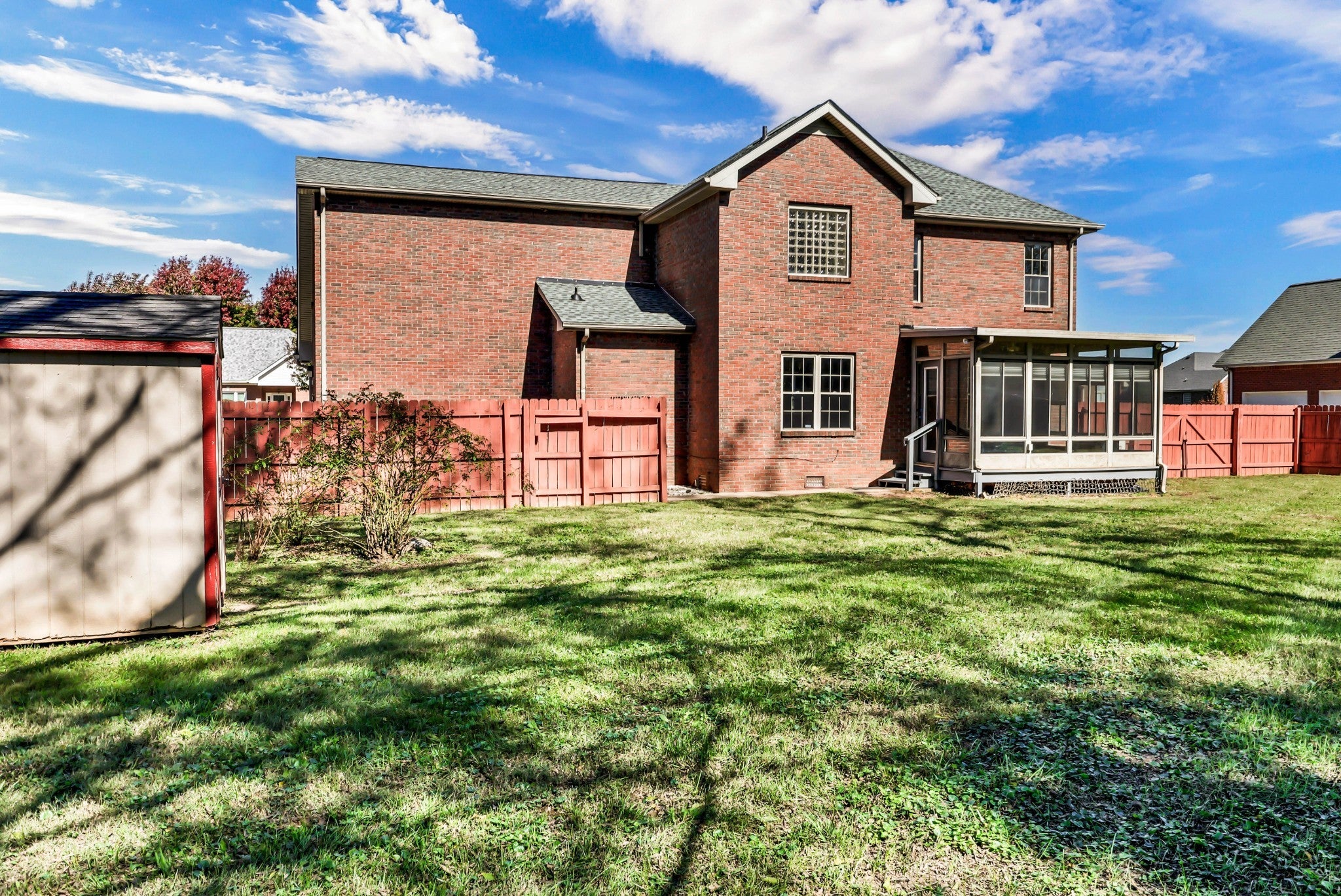 Recently renovated & move-in ready! Quiet neighborhood on cul-de-sac road with No HOA and sidewalks - perfect for kids! Brand new flooring & fresh paint throughout the entire house! New light fixtures on main floor. New, custom wood cabinets to the ceiling in kitchen & half bathroom. Beautiful white QUARTZ counter tops in the kitchen with pantry! All new appliances except for microwave. Sunroom overlooking privacy fenced backyard. No carpet on main floor!! Formal office/living room, dining room + den with fireplace! Real laundry room. All bedrooms upstairs + bonus room. Primary bedroom has double vanities in bathroom & large walk-in closet! All brick home, side load garage + storage building! #EasyNashvillecommute #NewlyRenovated #NoHOA