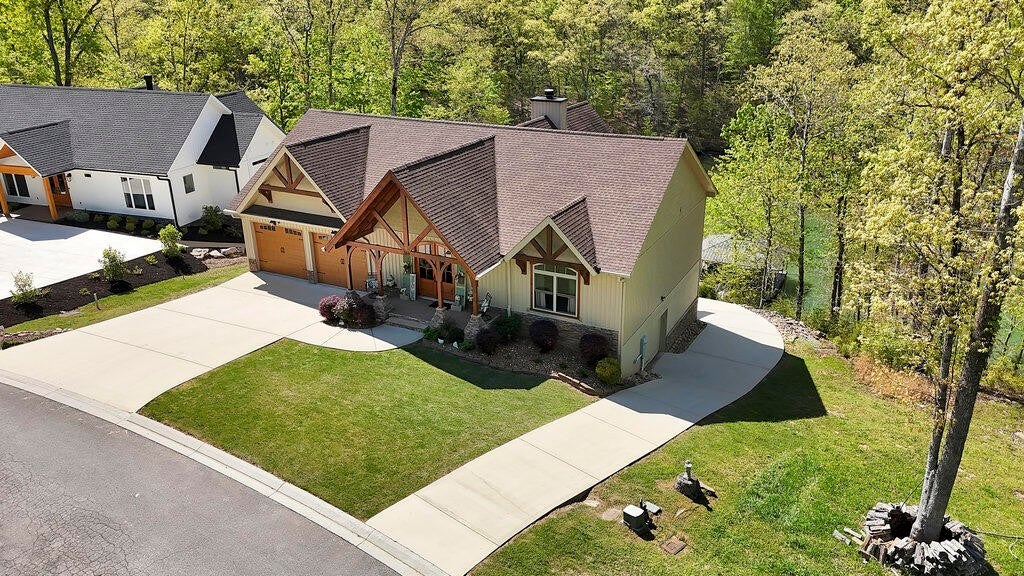 Your Dream Lakefront Home Awaits on Watts Bar Lake! Experience luxury lakefront living in this custom-built CRAFTSMAN dream home nestled on the shores of beautiful Watts Bar Lake. Enjoy year-round water access and serene LAKESIDE COVES in a private, gated community. Features That Will Captivate You: Towering cathedral ceiling with exposed beams, and specialty primary tongue and groove Stunning Craftsman Woodwork throughout the home, showcasing impeccable attention to detail. Custom, ornate, Cherry Cabinets with soft closing and pull outs. Cozy Wood-Burning Fireplace to warm up your evenings. Expansive Covered porch is the prime spot to wind down your day. Two-Slip Private Dock for effortless boating and water activities. Spacious Workshop—perfect for hobbies or extra storage. Main level garage will fit full size F250 with room left! Community Amenities: Exclusive Clubhouse for gatherings and events. Secure and serene gated community for peace of mind. Whether you're sipping coffee on the porch overlooking the water or exploring the lake, this home offers an unmatched blend of comfort and elegance. Make this your lakeside sanctuary today! Contact us now for a private showing!