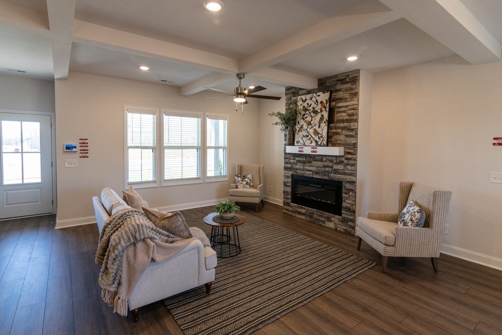 Welcome to the MILER FARM showcase home by Hawkins Homes! Boasting a thoughtful design, the master suite is conveniently located on the main level, complemented by a tiled oversized luxury shower and a vast walk-in closet. Upstairs, discover three additional bedrooms for family or guests. The kitchen is a culinary haven with a tile backsplash, an oversized island, and a seamless flow into the great room adorned with a cozy fireplace. Step outside onto the covered deck, an ideal extension of the eat-in kitchen. This Hawkins homes copyrighted floor plan ensures a unique layout. Your dream home awaits! The home comes with blinds and refrigerator! Homes come with Smart appliances, Smart Electric Fireplaces, Smart Thermostat, Security Systems including a Door Bell and Glass Break Sensor, and Upgraded Primary Closet Shelving. Upgraded Pre-finished Hardie will be utilized on the fronts. Seller is paying up to $25,000 towards buyer closing costs and other buyer needs (rate buy down, blinds, fence, frig etc)