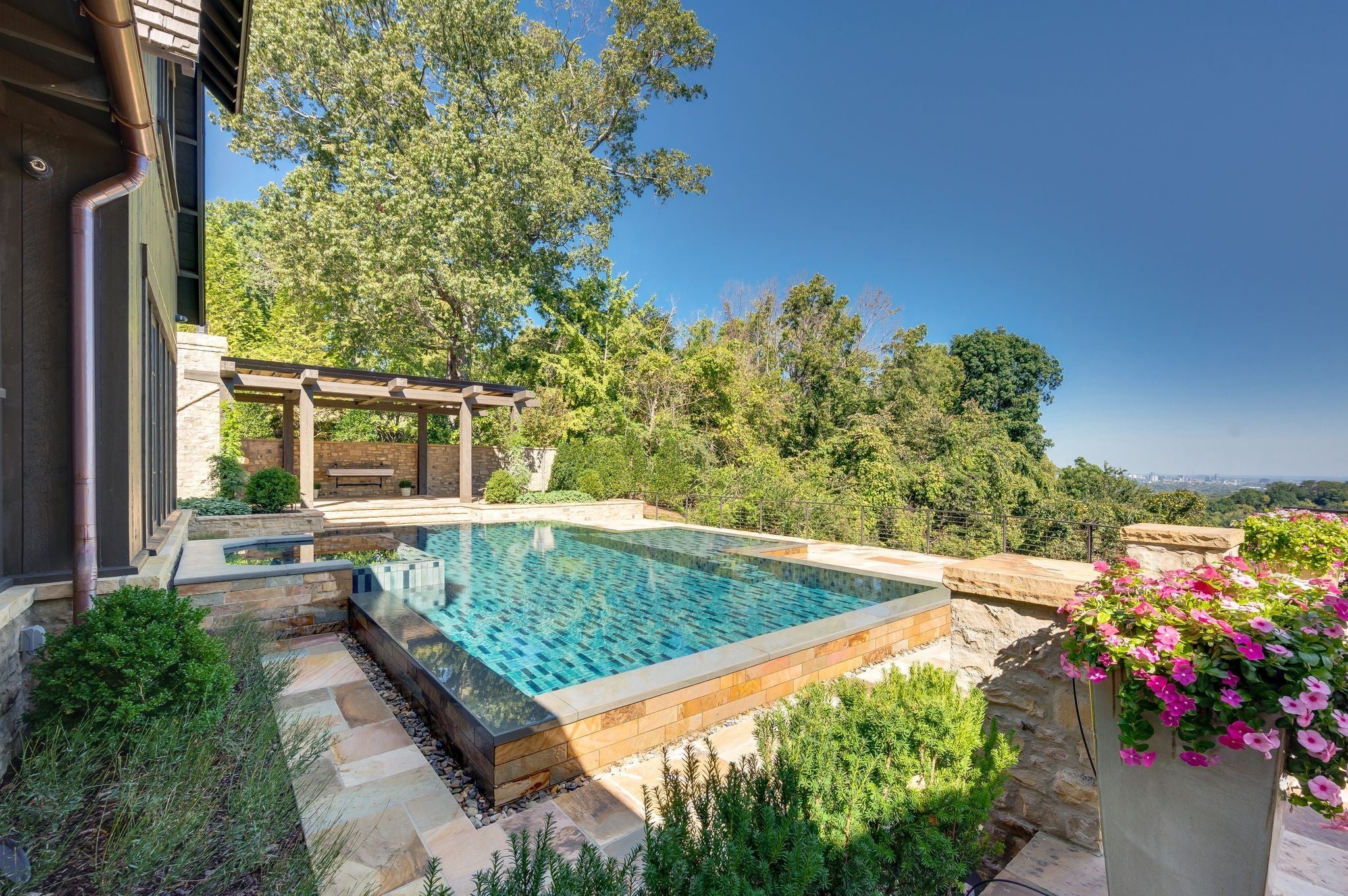 1801 Laurel Ridge Drive is a residence of rare distinction. Perched above the city with a panorama of the Nashville skyline, this estate blends architectural artistry with livable sophistication. Walls of glass invite natural light throughout, framing sweeping horizons and creating an atmosphere that is both powerful and serene. Every finish has been selected with intention, every space designed for both function and beauty. Carefully reimagined by Mark Poe Builders, the home embodies a standard of excellence seldom seen in Tennessee. The interiors are anchored by the first and only complete Officine Gullo kitchen in the state, a showcase of Italian precision and artistry. The primary suite includes custom closets designed by LA Closet Design, bringing celebrity-level refinement to daily living. A secondary kitchen, private fitness studio with sauna and steam, a 500+ bottle European dine-in wine cellar, walk-in humidor, acoustically enhanced theater or recording studio, and secure safe room extend the home’s offerings without compromise. There is no need to worry about your car collection with three oversized garage bays accommodating six vehicles, with infrastructure to expand capacity to twelve with lift systems. Finally, this home is equipped with a hydraulic elevator servicing all three levels. Each feature is not a separate amenity but an expression of a unified vision. The exterior is equally purposeful. With every step, you'll find a small piece of beauty brought to life by renowned Landscape Architect, Stephen Hackney. A pergola with a ShadeFX retractable, all-weather roof defines the pool terrace, offering year-round enjoyment. A wood-fired pizza oven, infinity-edge pool and spa, and uninterrupted skyline views create the ease and elegance of a private resort. 1801 Laurel Ridge Drive is more than a home. It is permanence, privacy, and presence in the heart of Nashville.