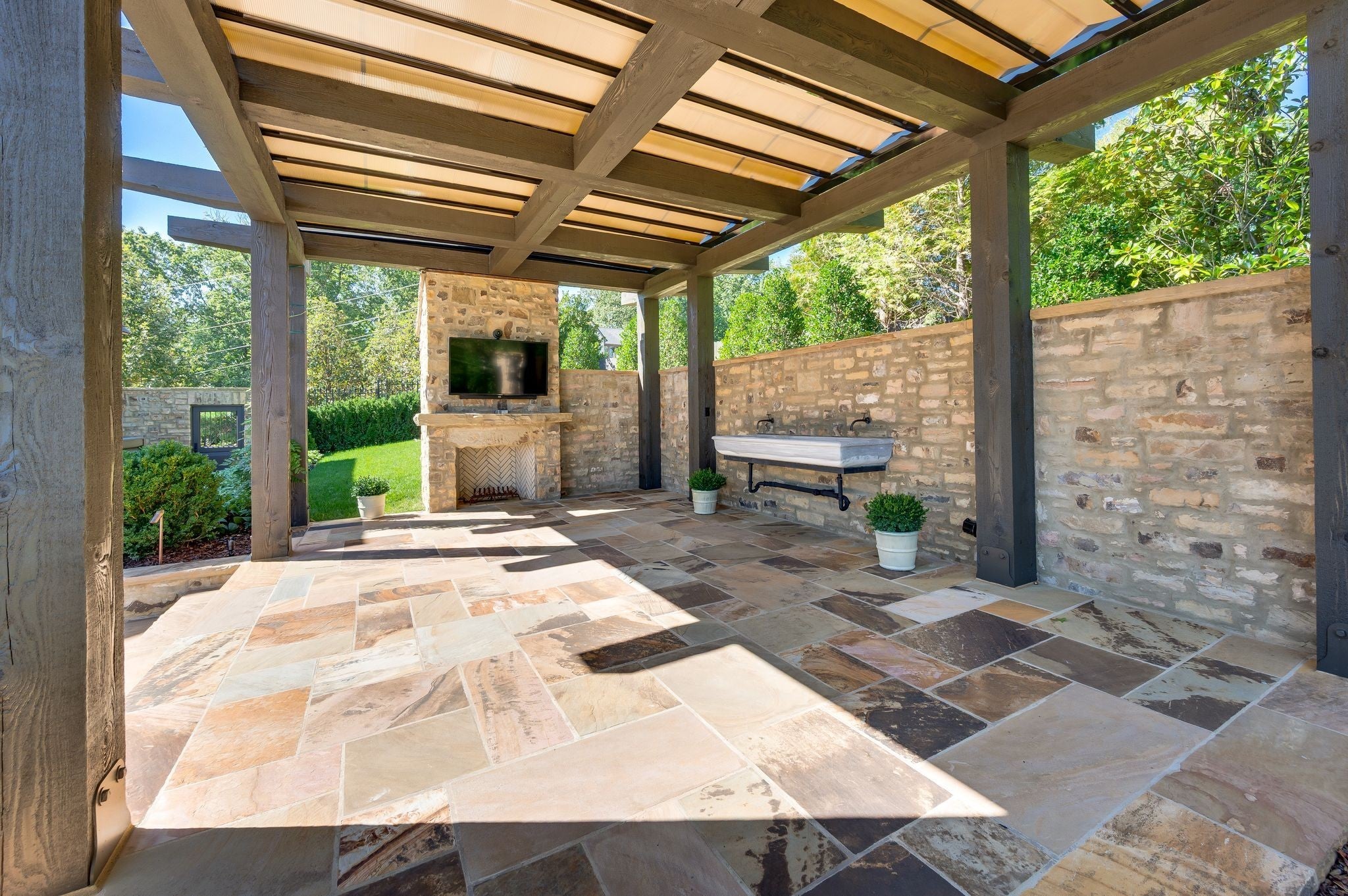 - Stone, Wood Siding