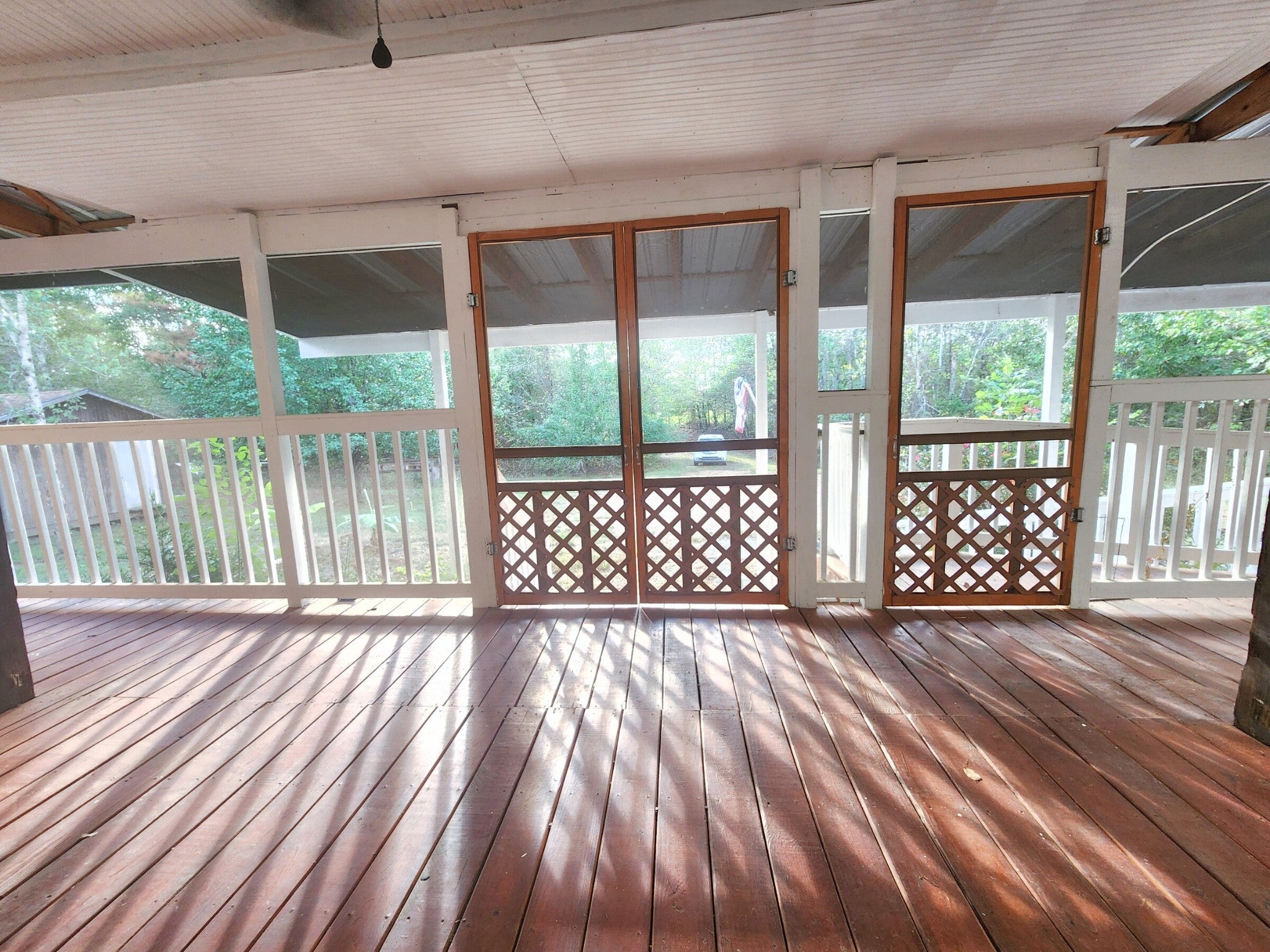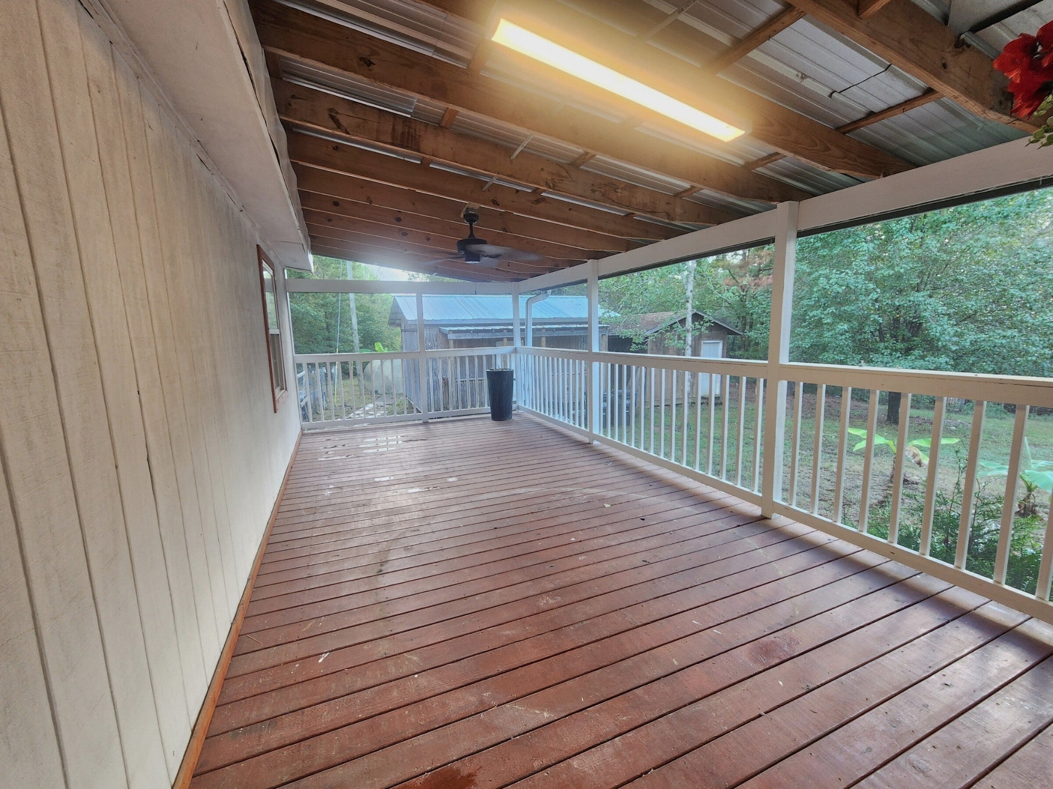 8-Acre Private Paradise Blend of modern comfort and country living in this recently remodeled 3-bedroom, 2-bath home, Wood stove in addition to central heat and air. Tucked away at the end of a long, private driveway, this property offers the seclusion and serenity you've been searching for with no other homes in sight. Inside you will find a move-in-ready interior, and outside your natural oasis. The huge 672 SqFt screened porch is the perfect spot for bird watching and a hot drink in the morning and friendly gatherings in the evening. This is more than a home—it's a lifestyle. With two versatile outbuildings, a fenced garden site with raised beds, a greenhouse, and a fenced pasture surrounded by hardwood forest