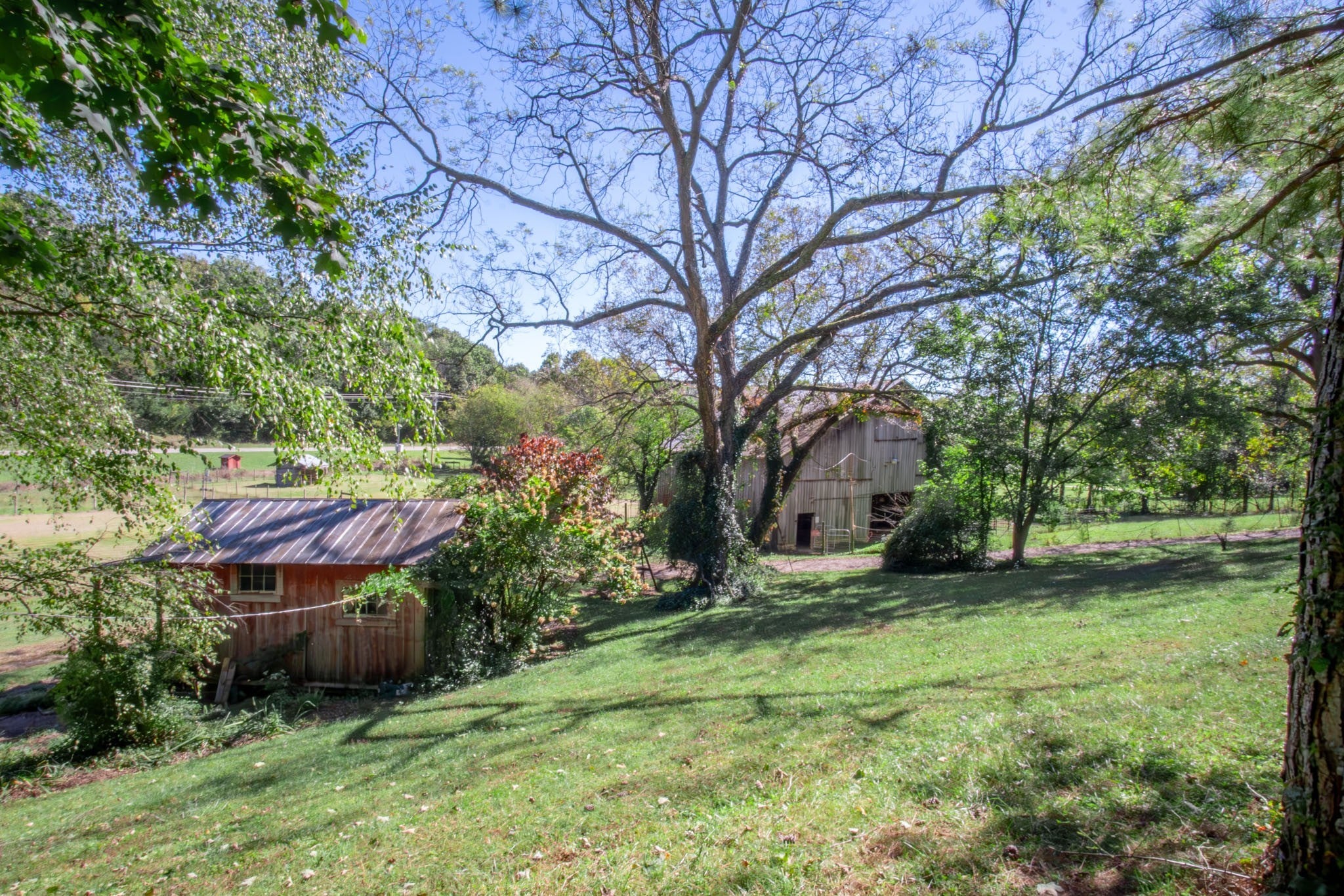 If you’ve been searching for acreage in Williamson County with space for animals, hobbies, or a small farm, this 5-acre College Grove property offers the best of peaceful country living while still being convenient to Franklin, Nolensville, and Nashville. This 3-bedroom, 2-bath ranch home with an office and over 2,200 square feet blends rustic charm with modern updates. Originally built in 1959, the home was expanded in 2000 to include a spacious primary suite, a new roof, and distinctive wide-board siding with hand-finished chinking that gives the home its warm cabin-style character while maintaining traditional construction. (*It is not a log cabin) Inside, the family room centers around a gas fireplace and opens to the kitchen and dining area. French doors lead to a large screened porch and deck overlooking the backyard, creating a great space to relax and enjoy the views of the property. The kitchen was remodeled in 2019 with custom cherry cabinets built by the homeowner, quartz countertops, and subway tile backsplash. The primary suite features a vaulted ceiling sitting area, gas log fireplace, and a spacious bathroom with a clawfoot tub and separate shower. Two additional bedrooms are located on the opposite side of the home and share a hall bath. The land and outbuildings make this property ideal for a homestead, hobby farm, horses, or livestock. Outbuildings include a late-1800s Chestnut-planked tobacco barn with stalls and tack area, a 30×60 detached garage/workshop with 120V and 220V power, a 47×16 equipment shed, and a carport with attached storage. Two wells serve the property — one spring-fed well for the barn and another near the home for gardening. A rare opportunity to own a functional farm property with history, character, and usable acreage in one of Middle Tennessee’s most desirable areas.
