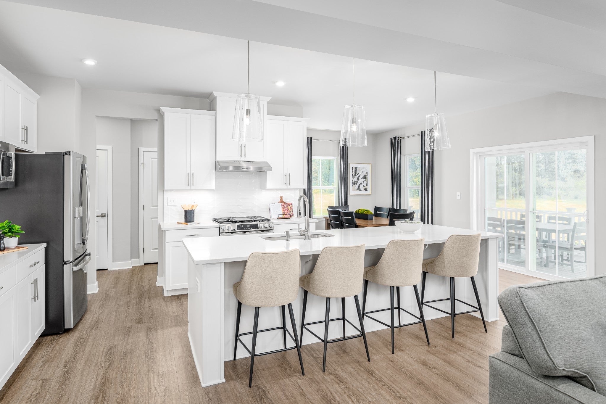 QUICK MOVE IN!! IN THE BEAUTIFUL MUIRWOOD COMMUNITY! Located on a stunning, treelined homesite! The COLUMBIA FLOORPLAN offers the perfect balance of comfort and functionality, with 4 bedrooms featuring an oversized primary closet and 2.5 baths! Step inside a welcoming foyer with a private study, perfect for a home office or creative space. LVP flooring extends throughout the main level, leading you into a bright, open great room that flows seamlessly into a designer kitchen. You'll love the large 10' island, with quartz countertops, and 42" upper cabinets! Upstairs, relax in the luxurious primary suite with it's expansive walk-in closet and private bath retreat. Secondary bedrooms offer plenty of space for family, guests, or a hobby room. Don't wait - this is the last treelined homesite left, now's the time to visit Muirwood and see why so many families are choosing to call this community home!