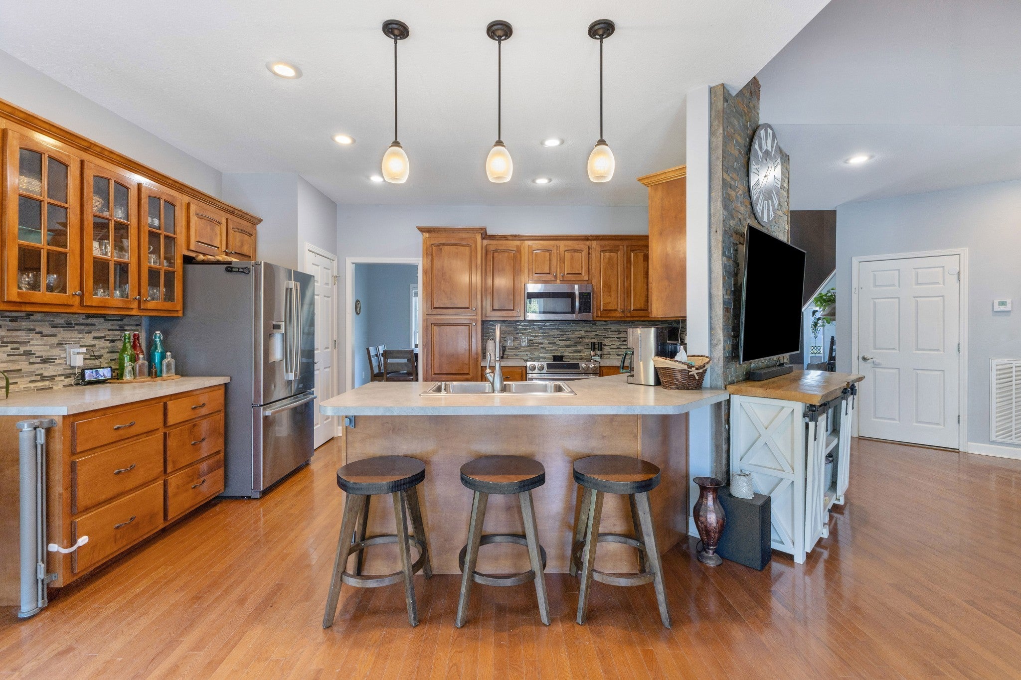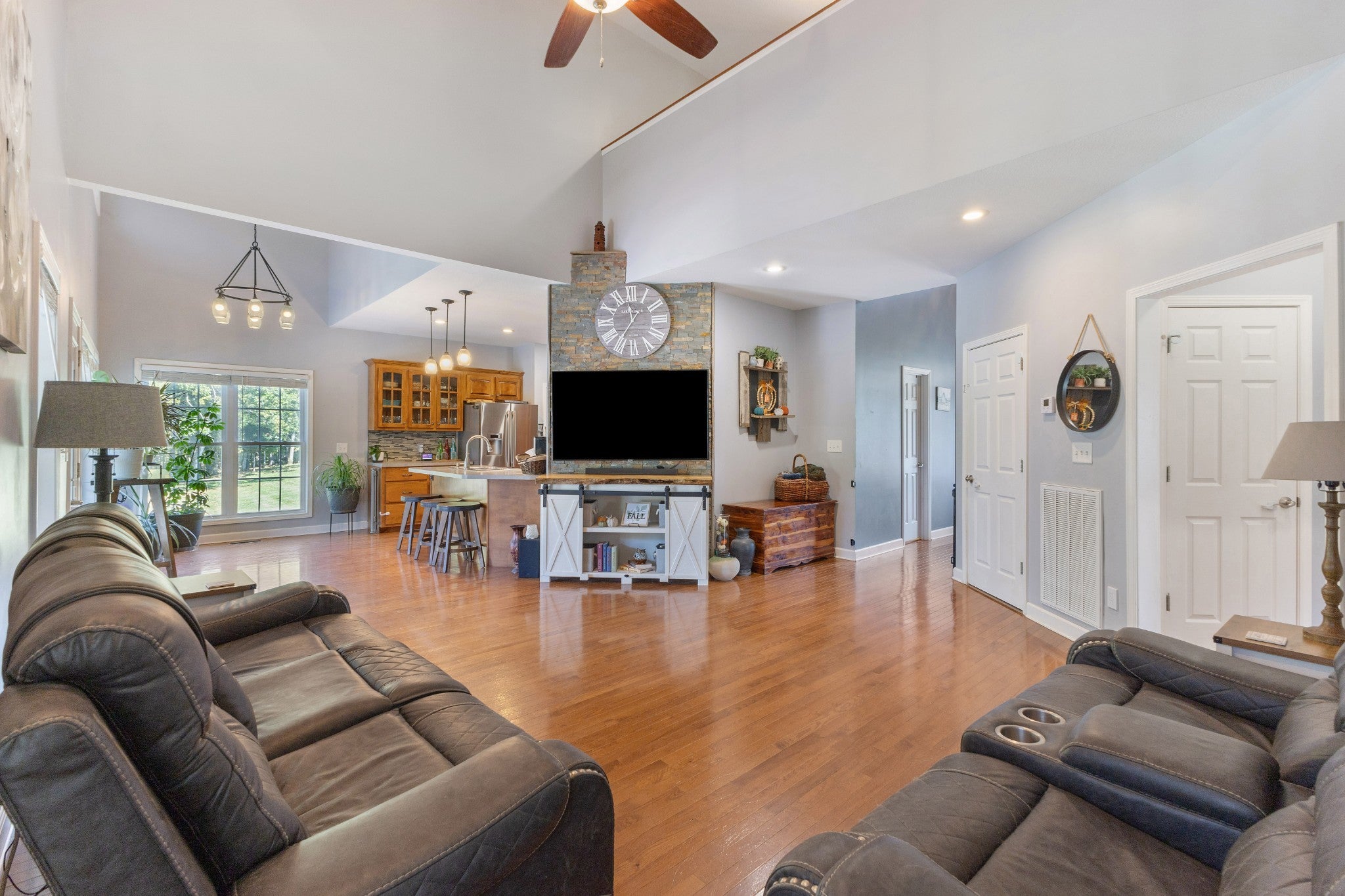 A new life was given to this home over the last few years and you will love the welcoming and refreshing feeling you get when you walk thorugh the door~the exterior is complimented by the stacked stone the draws you in to the covered porch~step inside to gaze at the hardwood floors and cathedral ceiling in the entry~followed by the vaulted ceiling in the living room~2 hvac~laundry shoot from 2nd floor to the laundry room~recessed lighting~covered back deck with a portion uncovered along with a covered patio~all kitchen appliances remain~wood shed remains but the other shed does not remain~trails in place for the ATV or dirt bike enthusiasts~whole house generator~high efficiency water heater~carport and 30x40 detatched Garage with electric and HVAC~attached garage in basement and daylight basement~fiber internet from Cumberland Connect~currently on well with filtration system but City water coming~2 wooden sheds that are staying, the red one and the small brown wood shed