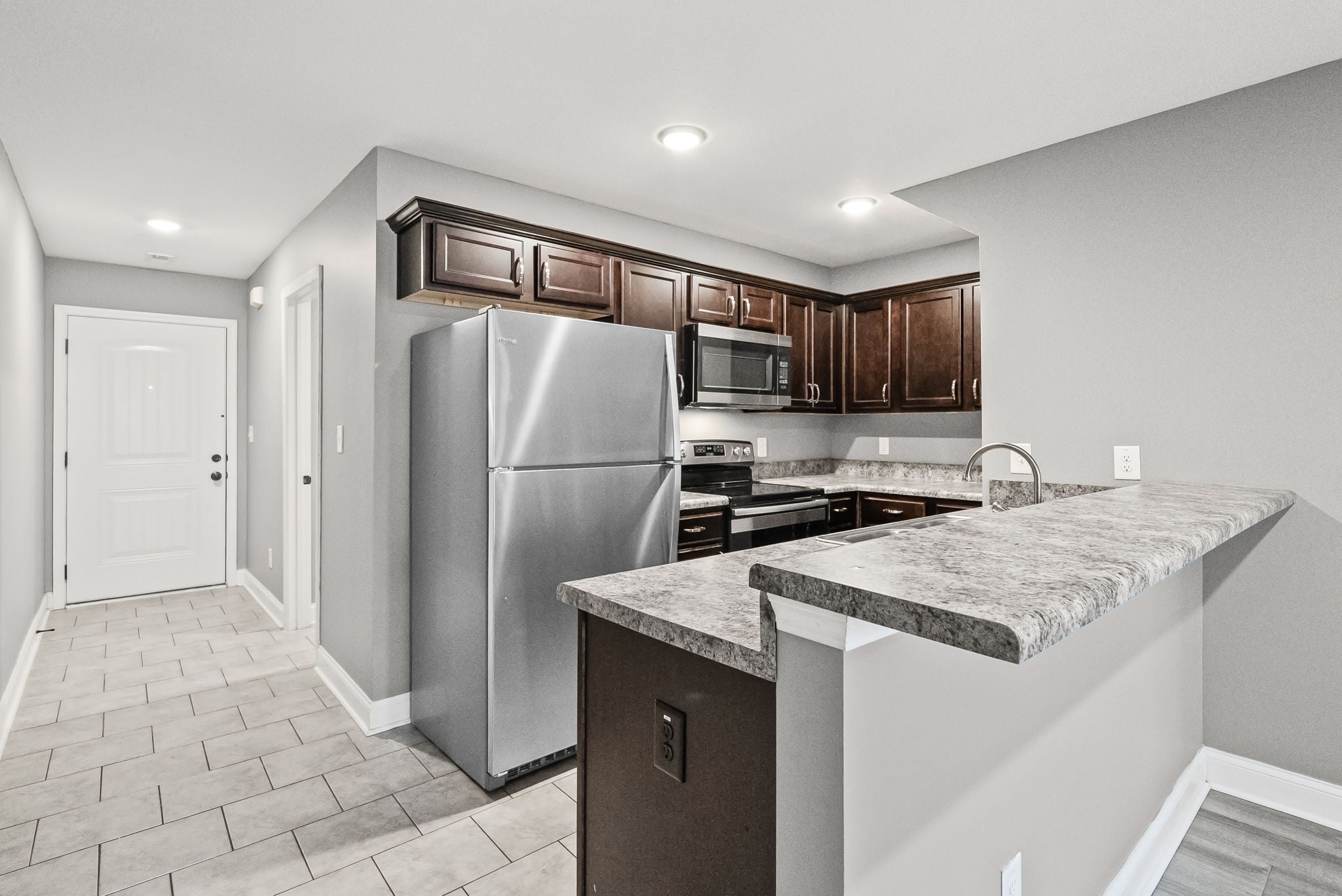 - Refrigerator, Microwave, Dishwasher, Oven, Range
