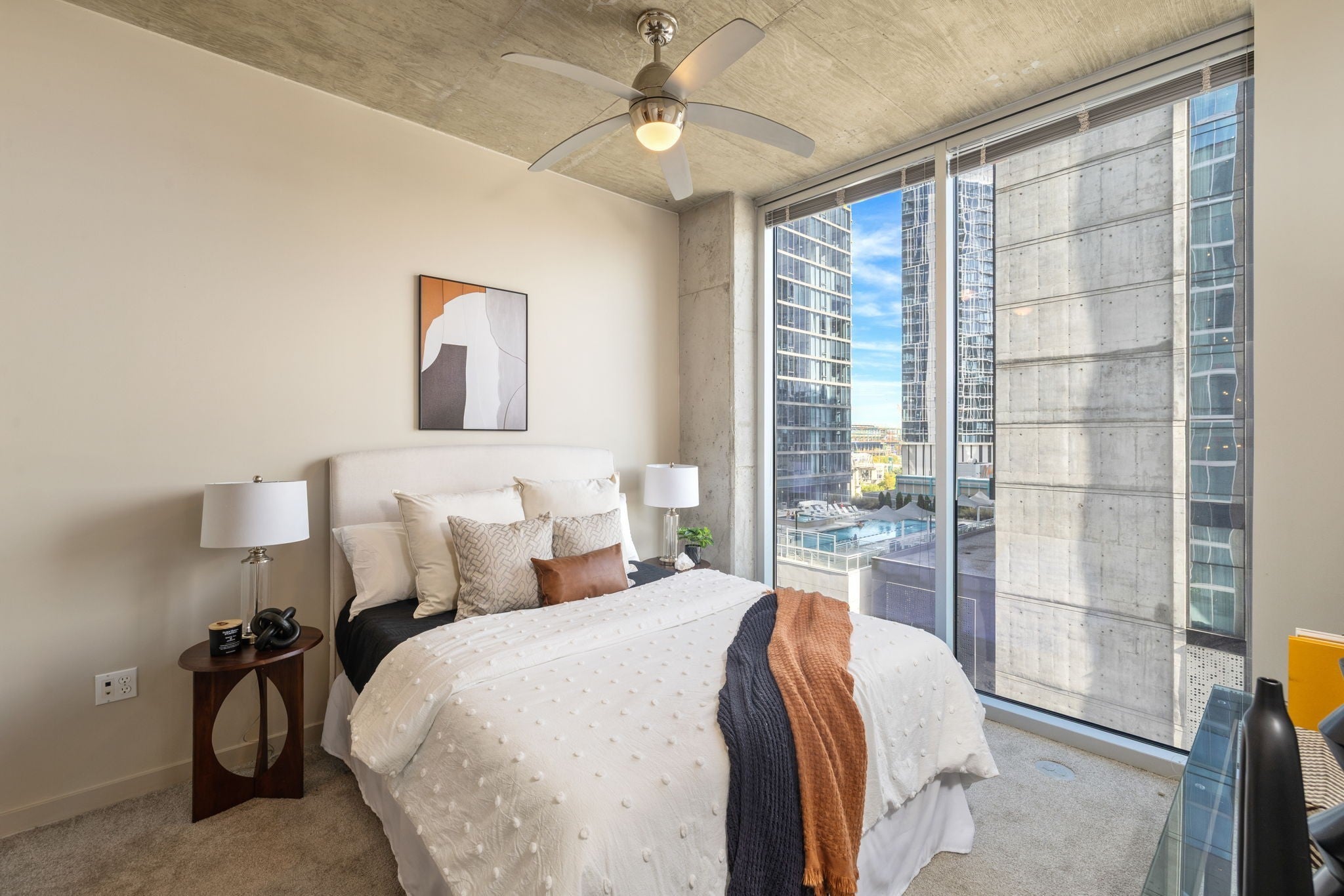 Unbeatable, Prime Location close to everything downtown. Just steps from Bridgestone Arena, the Symphony Center, Pancake Pantry, & Broadway’s electric vibe. This corner-unit features 2 spacious bedrooms, 2 luxurious bathrooms, and 2 deeded parking spaces in the private, residents-only, Encore Garage. For those familiar with Nashville, Encore stands out as arguably the prime downtown location. While Nashville boasts numerous new condo buildings, Encore's timeless appeal and prime location remain unmatched at this price point, offering life-changing downtown conveniences. The primary suite offers a private balcony with stunning views of 2nd & 3rd Avenues, Ascend Amphitheatre and downtown Nashville —ideal for sunrise or city lights. Its spa-like en-suite bath includes a separate shower and soaking tub for ultimate relaxation. The second bedroom boasts floor-to-ceiling windows with vibrant east-facing views, private access to the second bathroom, and a wall of closets for ample storage. The modern kitchen shines with sleek appliances, granite countertops, and exceptional cabinet storage. A convenient laundry room makes life effortless. Enjoy premium amenities: 24-hour concierge, resort-style pool, and state-of-the-art fitness center. Pet-friendly for your furry friend! Just a 2-minute walk to Broadway’s iconic venues, Bridgestone Arena, and the new Titans stadium, with top restaurants and rooftop lounges nearby. Pancake Pantry across the street! Think about the legendary memories waiting for you at Encore! Ask about $3,500 toward closing costs with our preferred lender!