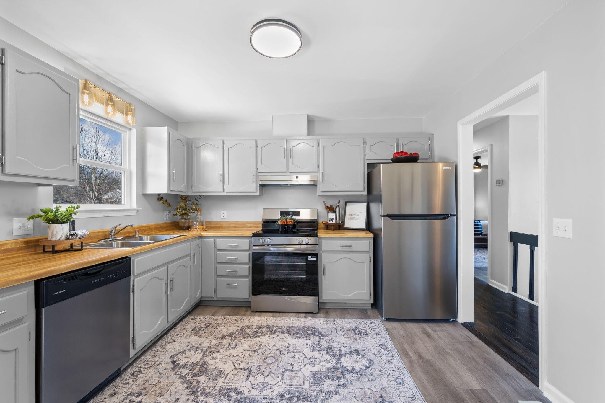 - Refrigerator, Electric Range, Dishwasher
