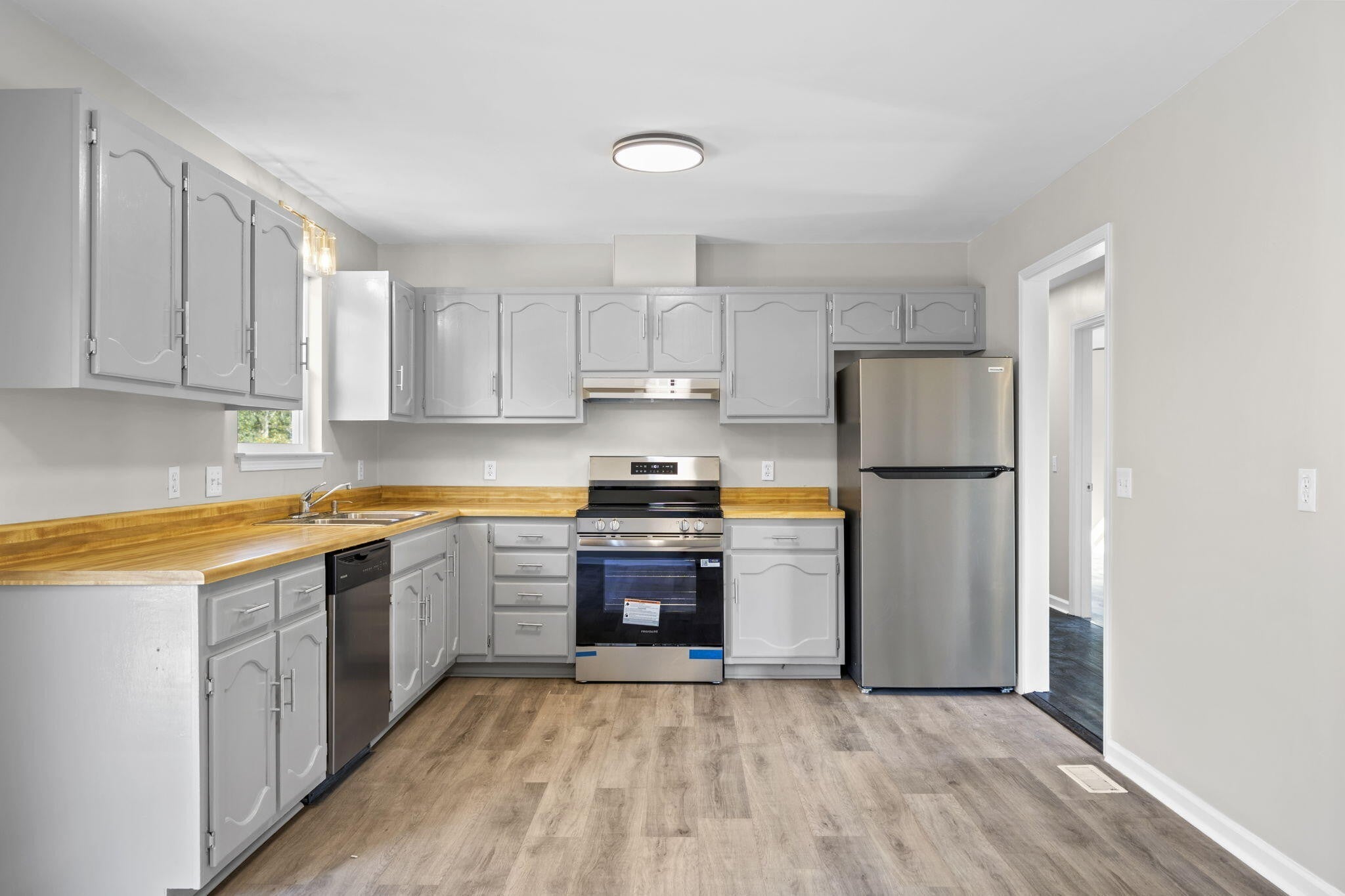 Completely renovated from top to bottom, this 3-bedroom, 2-bath home is move-in ready and full of updates. Enjoy a brand new roof, new windows, freshly painted interior and exterior, and new large front and back porches. Inside, the kitchen has been beautifully updated with butcher block countertops and brand new appliances. Both bathrooms feature new vanities and fixtures, and the refinished floors bring warmth and charm throughout. Located in the established Ashbrook neighborhood, minutes from the lake, this home blends modern updates with comfortable living.