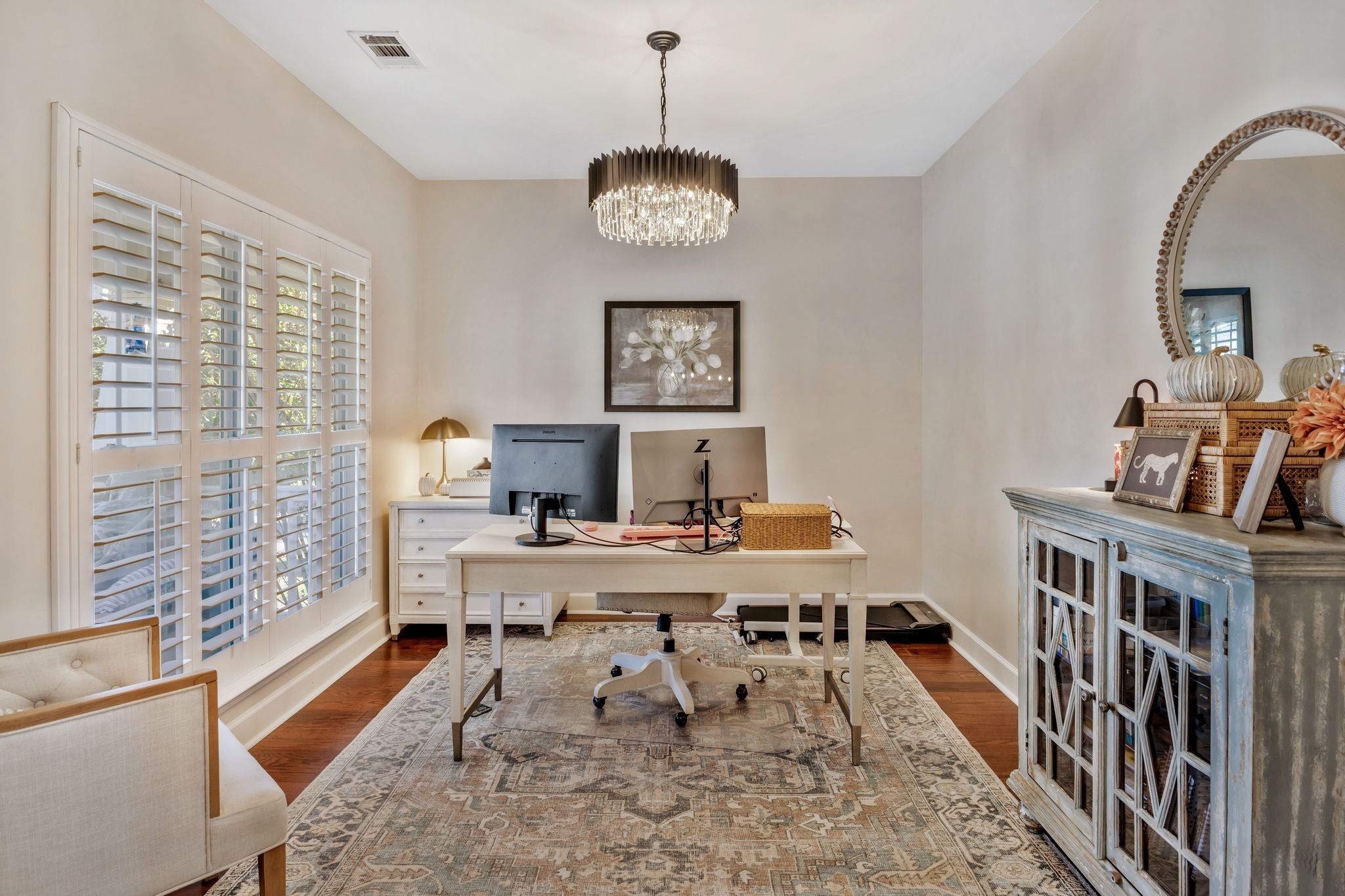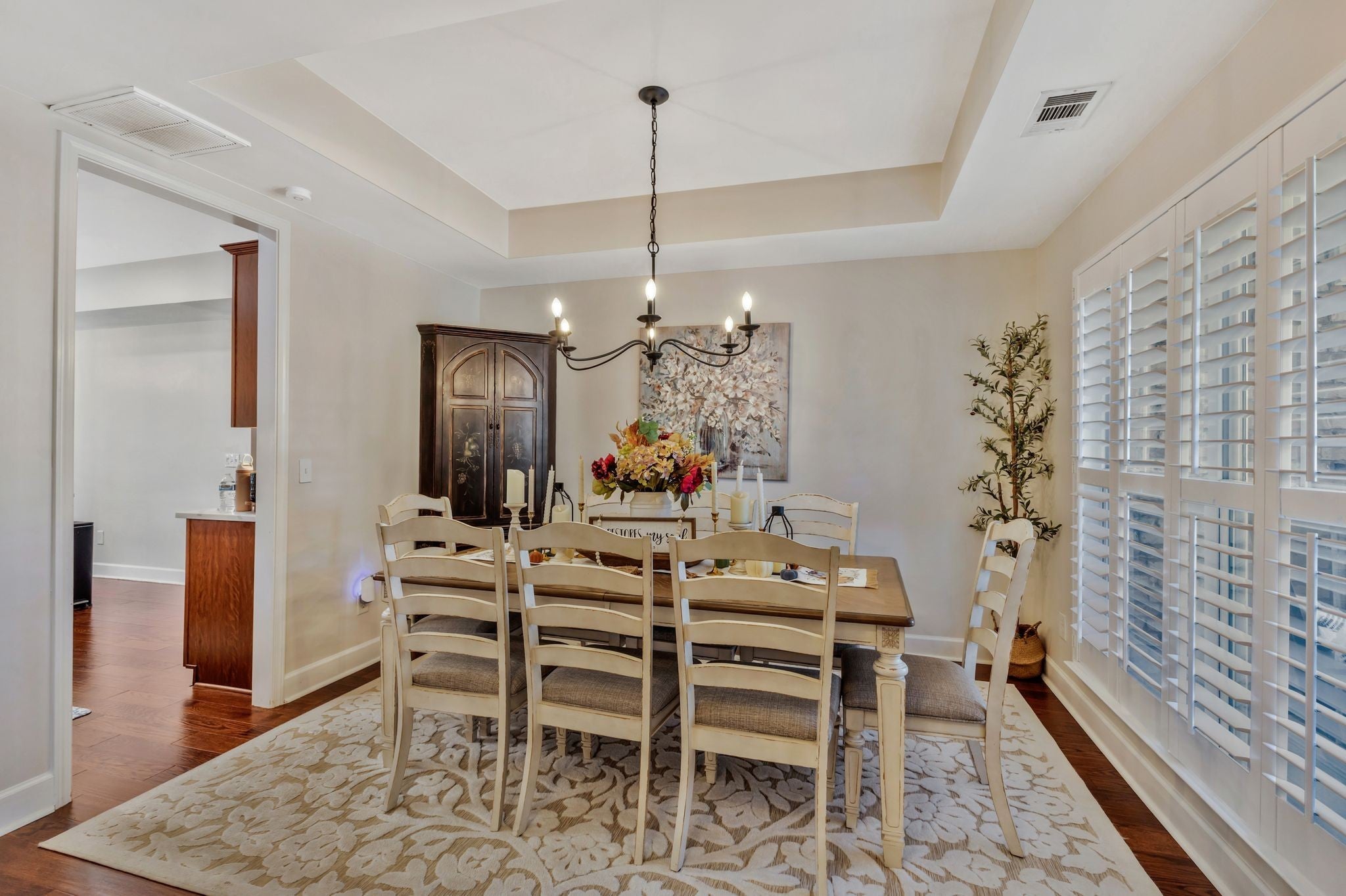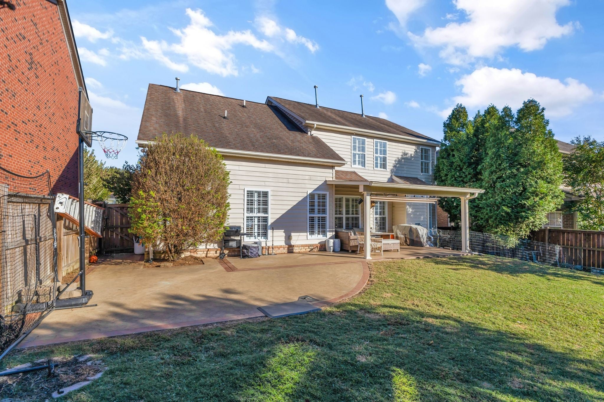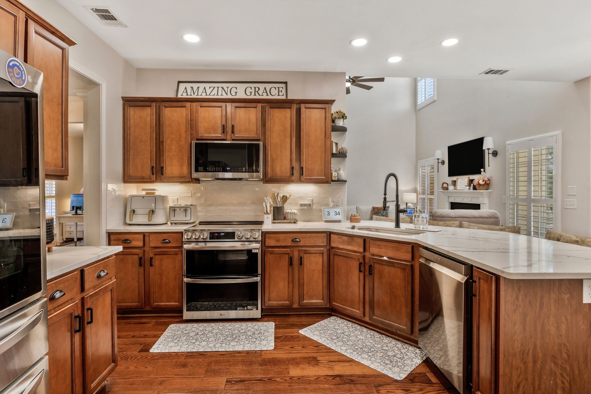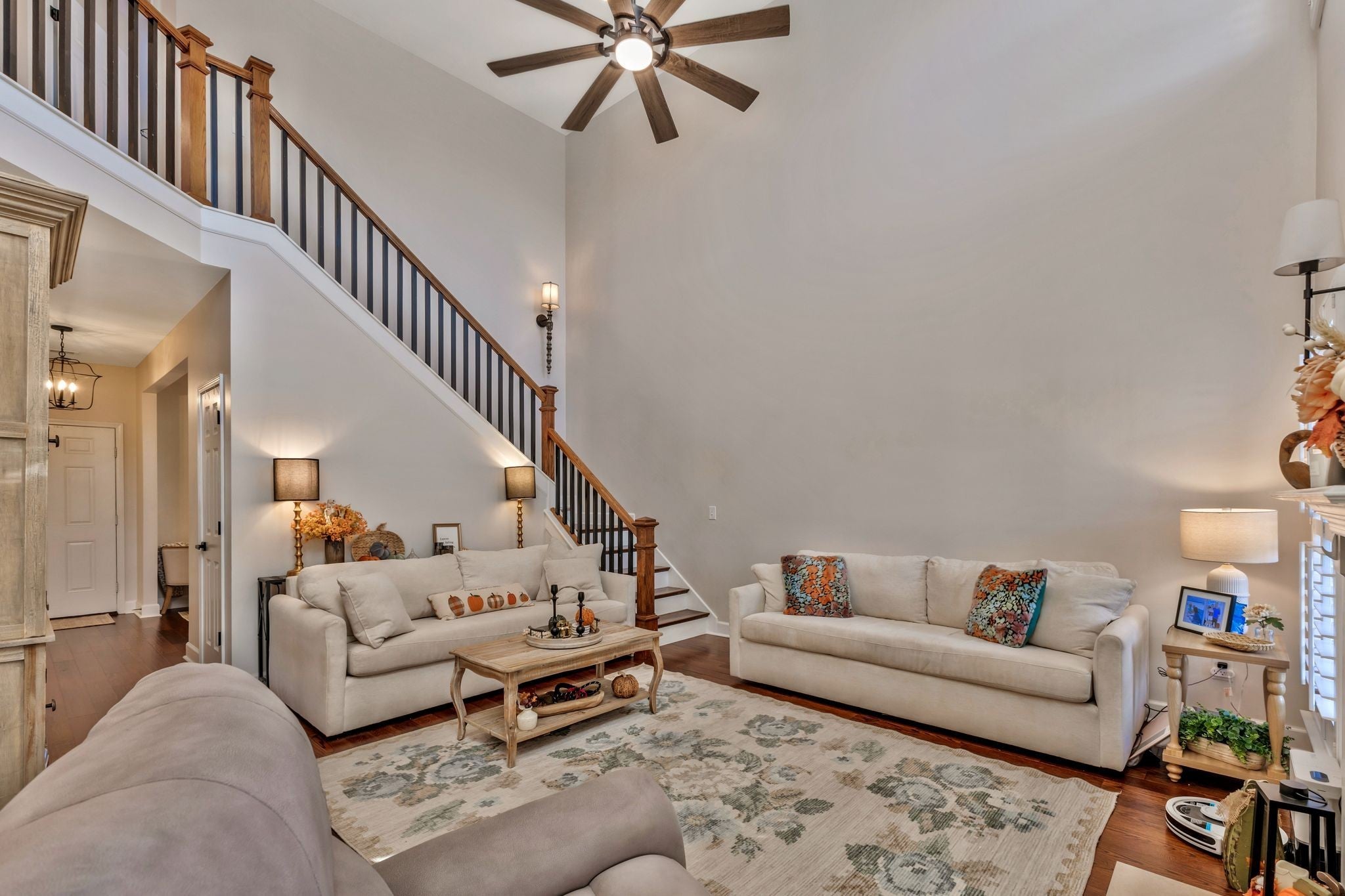 Welcome to this beautifully updated, truly move-in ready home featuring brand-new quartz countertops in the kitchen, new stainless steel appliances, and stunning real wood floors throughout the main level!! Freshly painted and filled with natural light, this home shines with timeless plantation shutters that offer the perfect balance of brightness and privacy in every room. The spacious primary suite is conveniently located on the main level, while the secondary bedrooms and a large bonus room with a wet bar are upstairs—ideal for entertaining or relaxing. The laundry room is located upstairs and is connected to walk-out storage. There is also an attic for additional storage! Step outside to enjoy a private, level fenced backyard complete with a covered patio—perfect for quiet mornings or gatherings with family and friends. Brand new garage door motor installed - smart phone enabled and Amazon can deliver directly into the garage if you want! The neighborhood is picturesque with sidewalks and a community pool! Conveniently located to shopping and restaurants! Use preferred lender and receive a $3,000 credit towards closing costs.