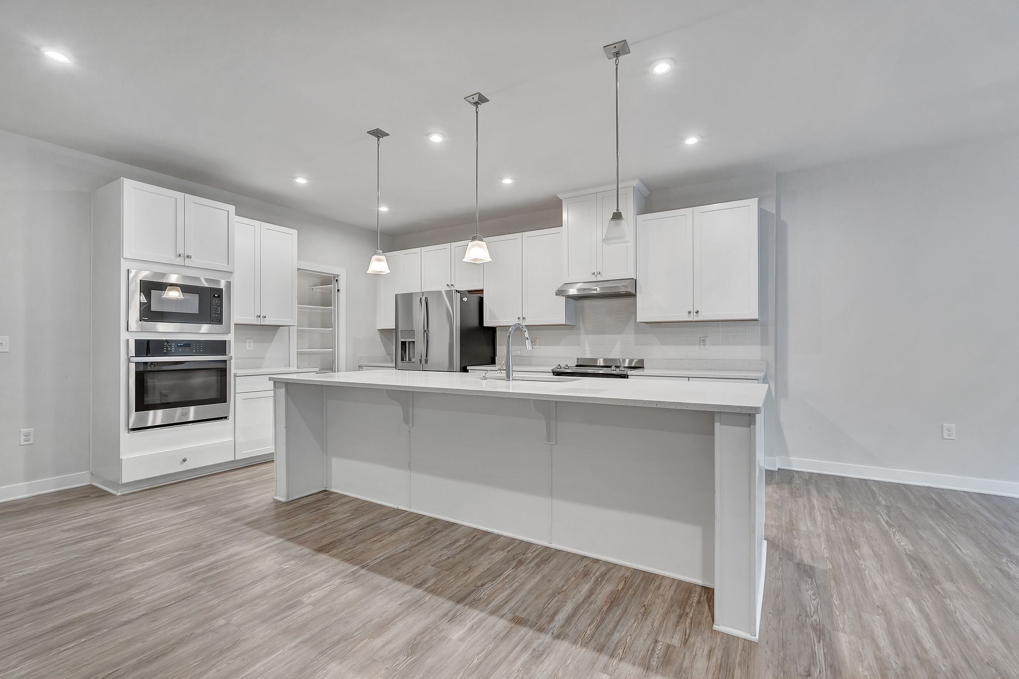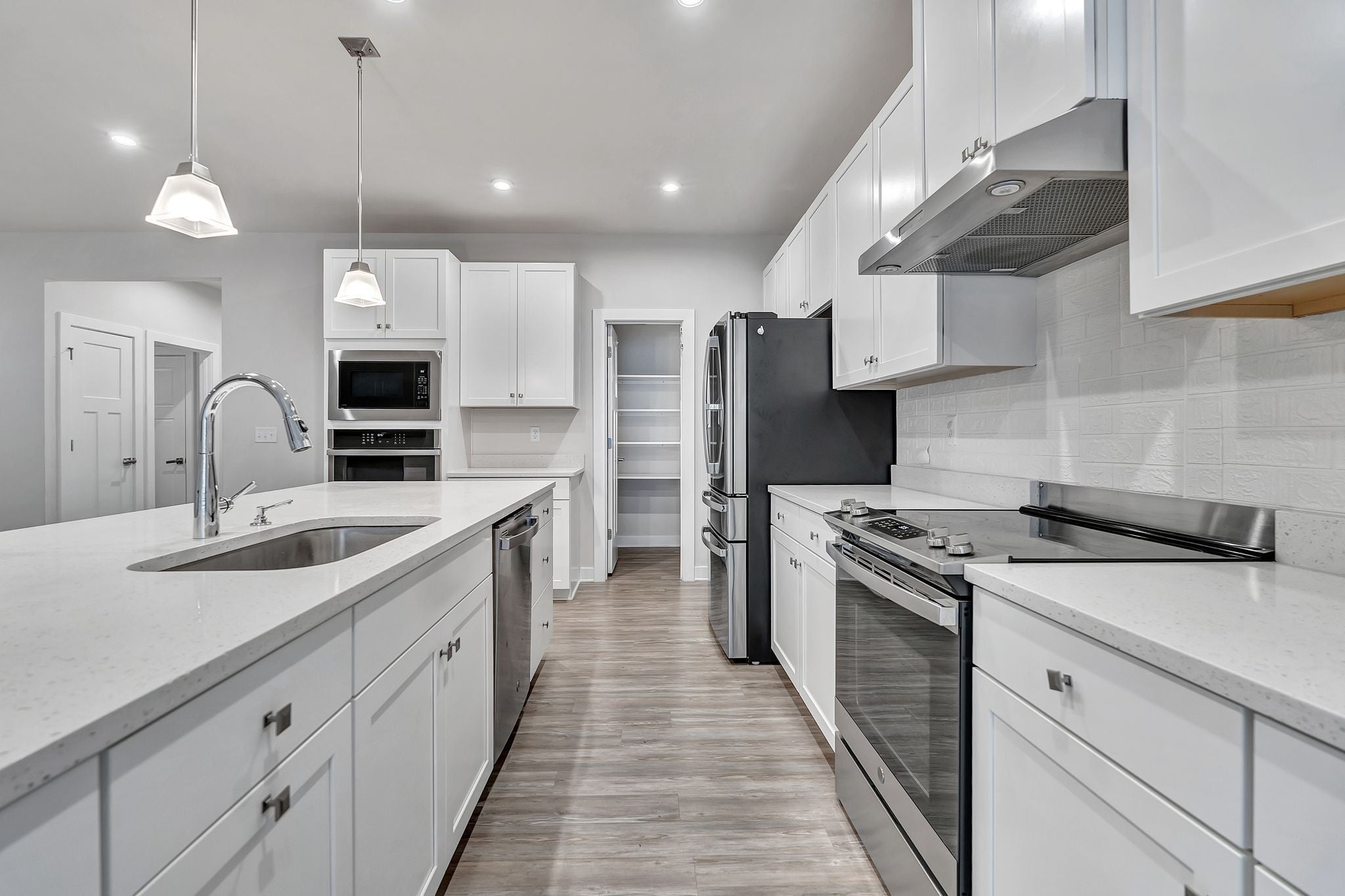 - Built-In Electric Oven, Cooktop, Dishwasher, Disposal, Microwave, Refrigerator, Stainless Steel Appliance(s)